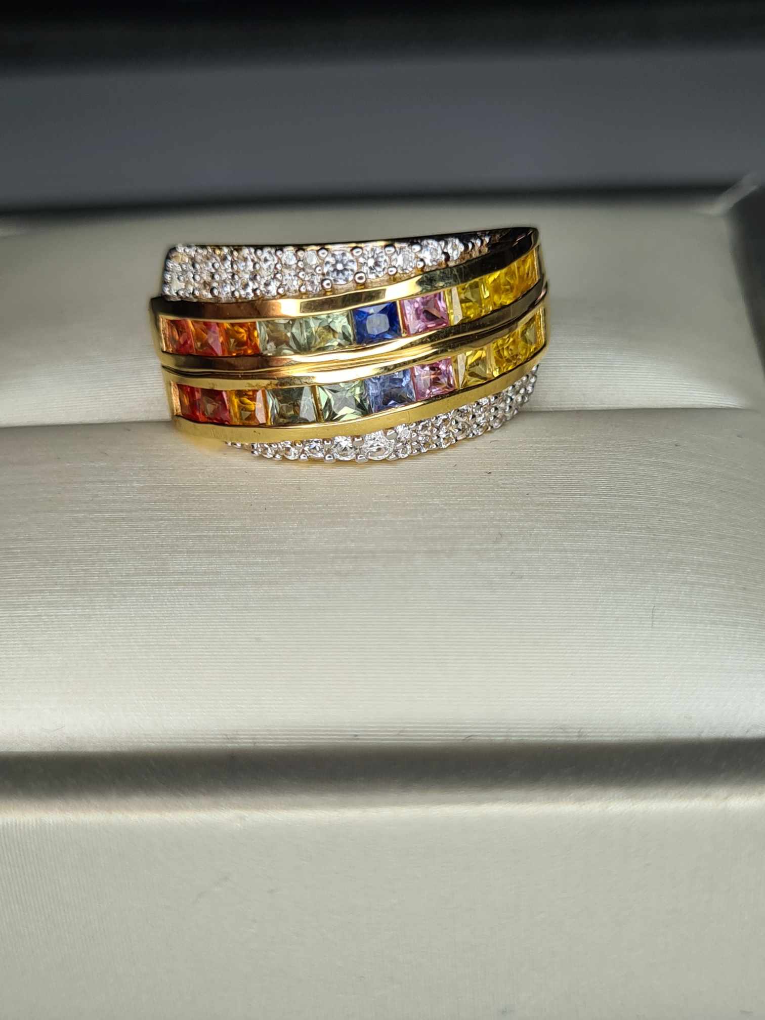 2ct Rainbow Sapphire & Natural Zircon Cluster Band Ring in 18K Gold Overlay 925 Sterling Silver