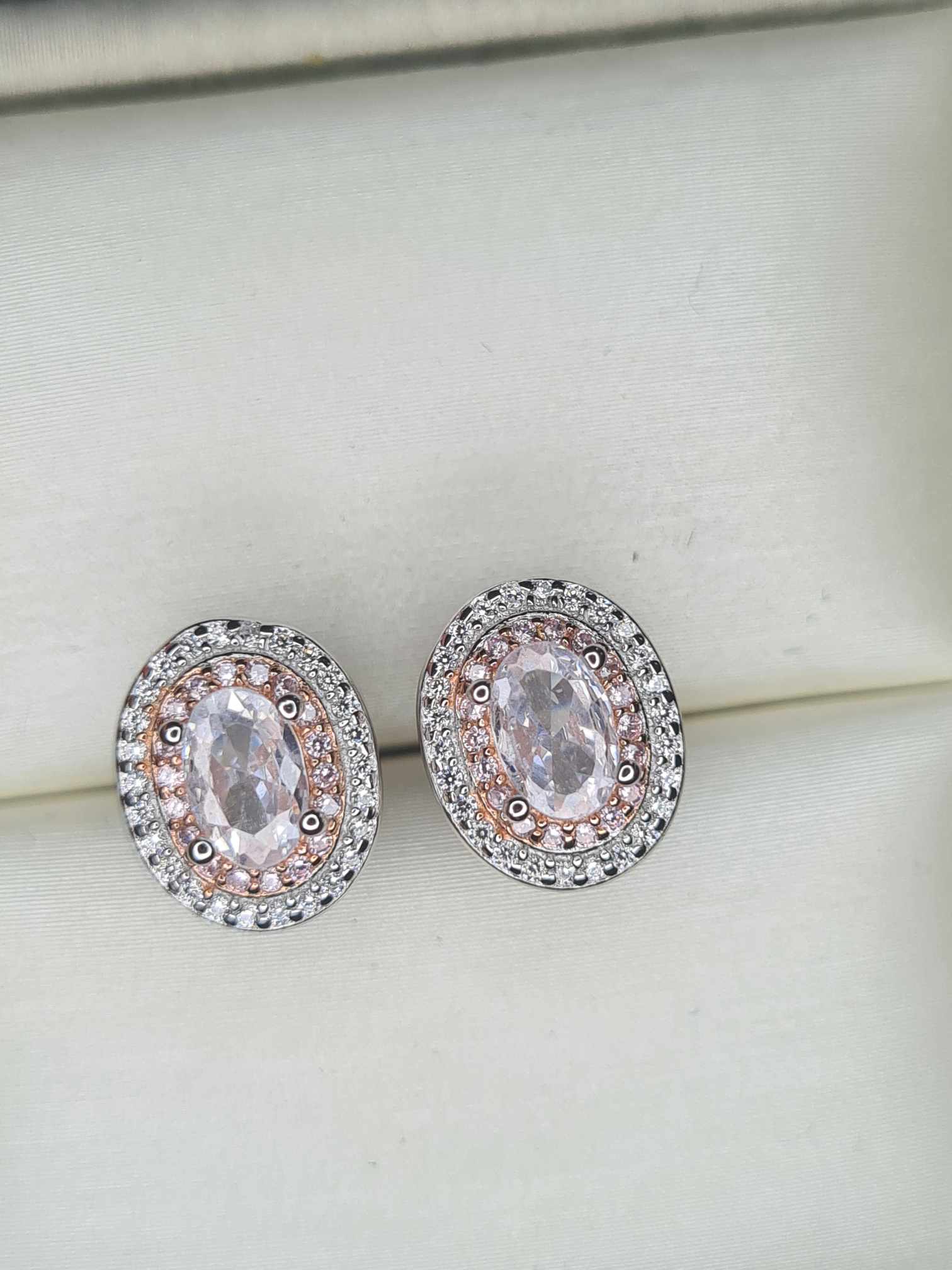 These beautiful light pink and white zirconia stud earrings are perfect for everyday or occasional wear