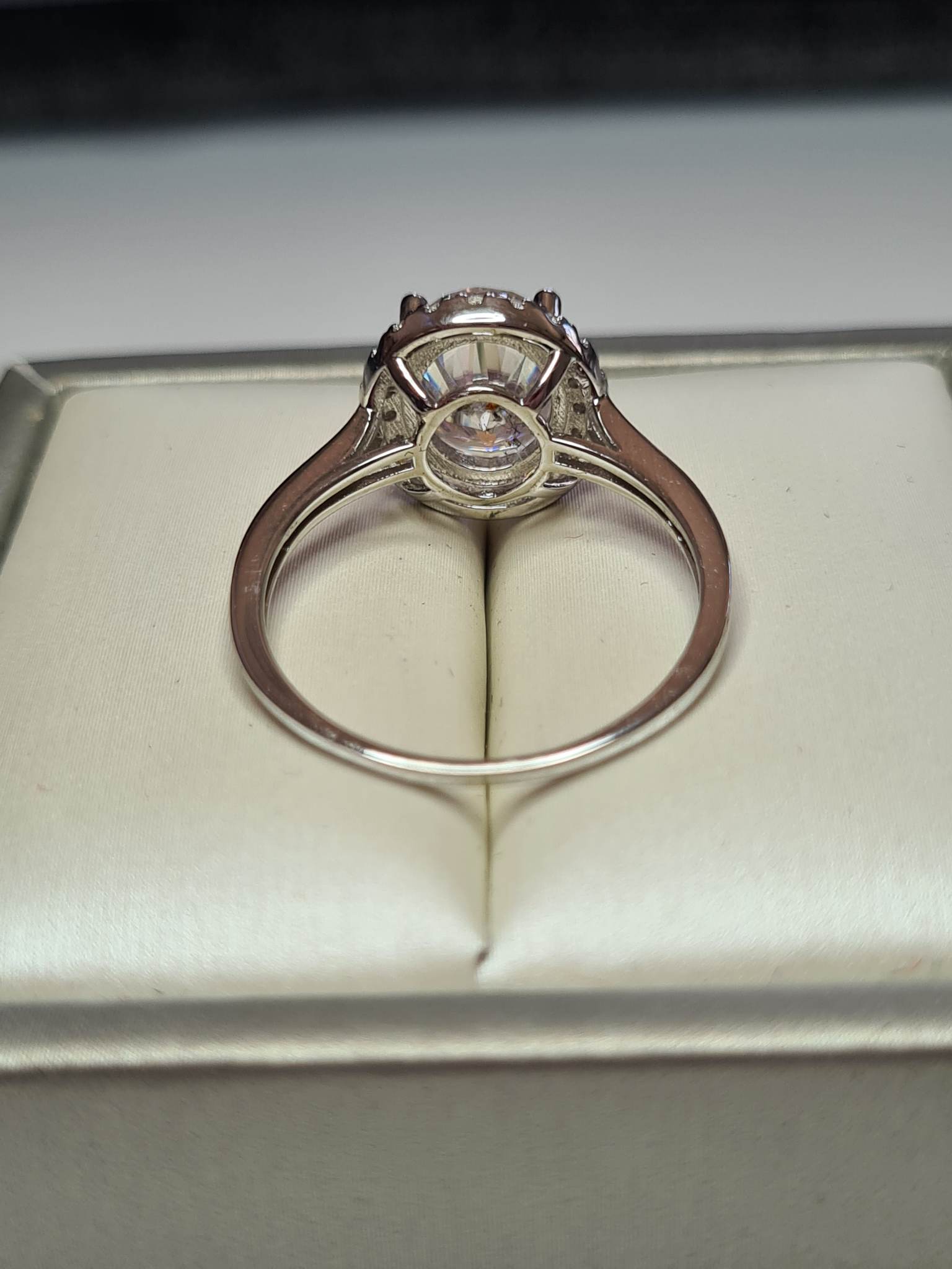 3.05ct Moissanite Halo Ring 925 Sterling Silver SIZES R , S