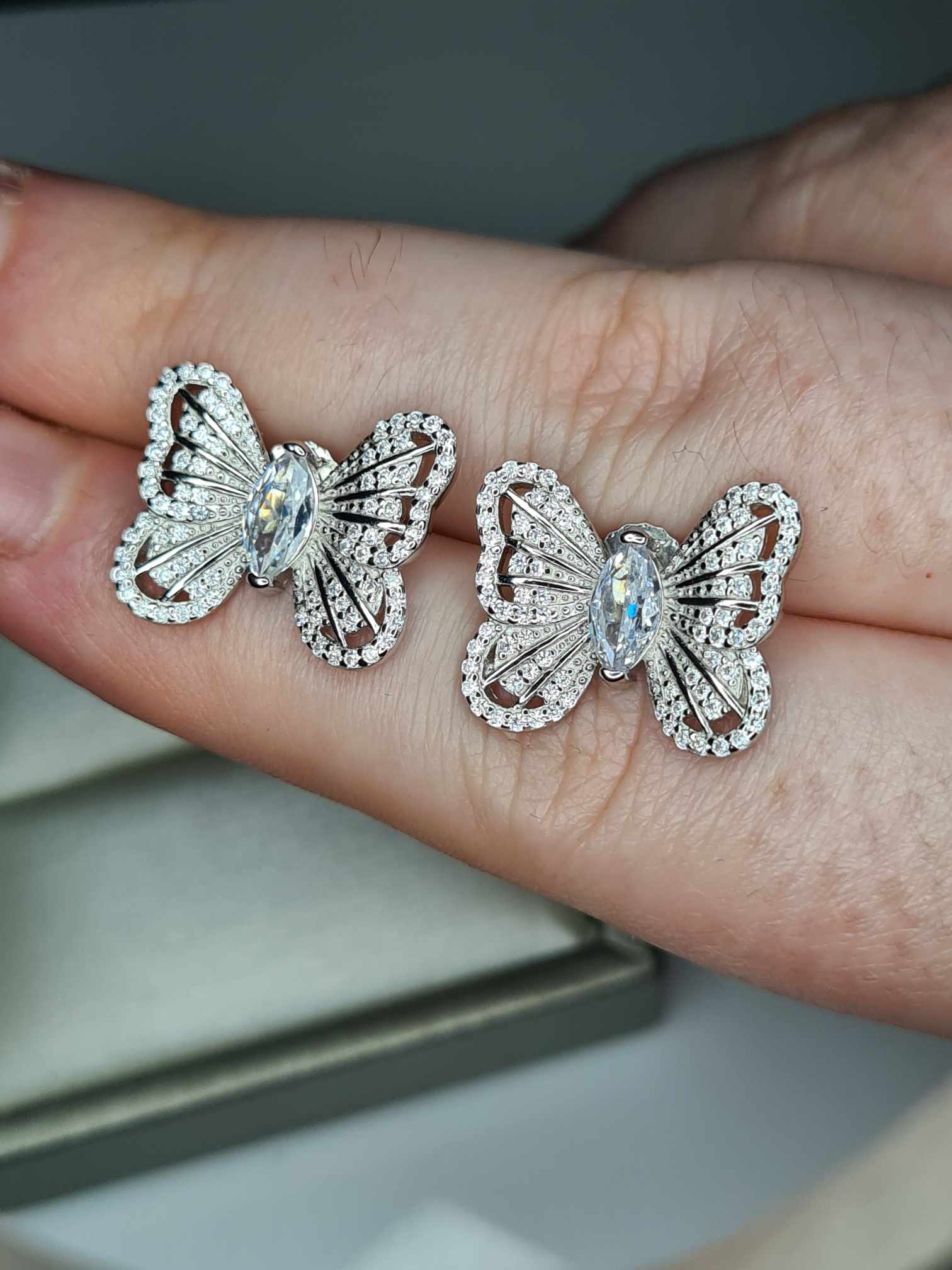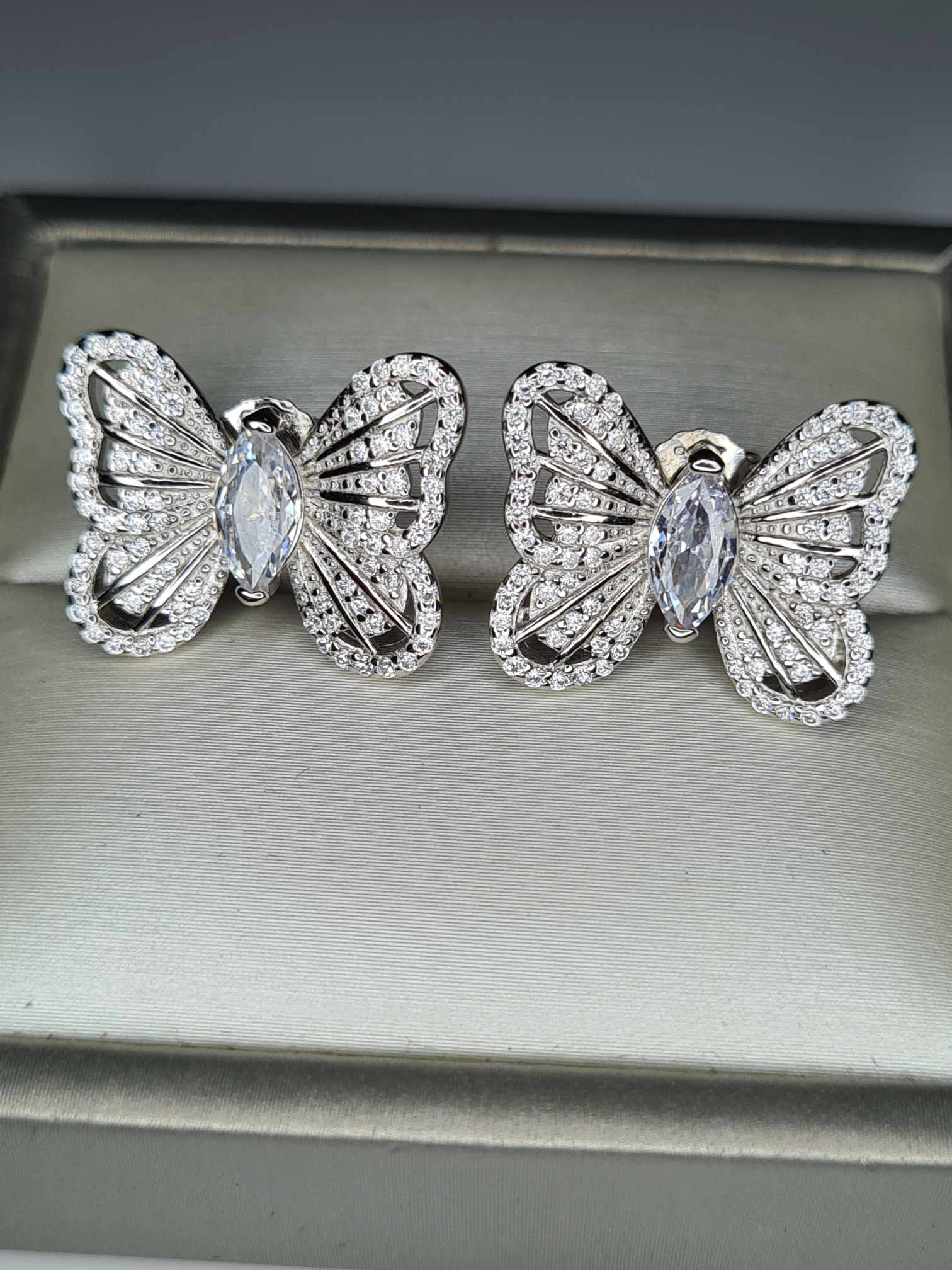 3.110ct Designer Inspired Cubic Zirconia Butterfly Stud Earrings in 925 Sterling Silver Rhodium Overlay