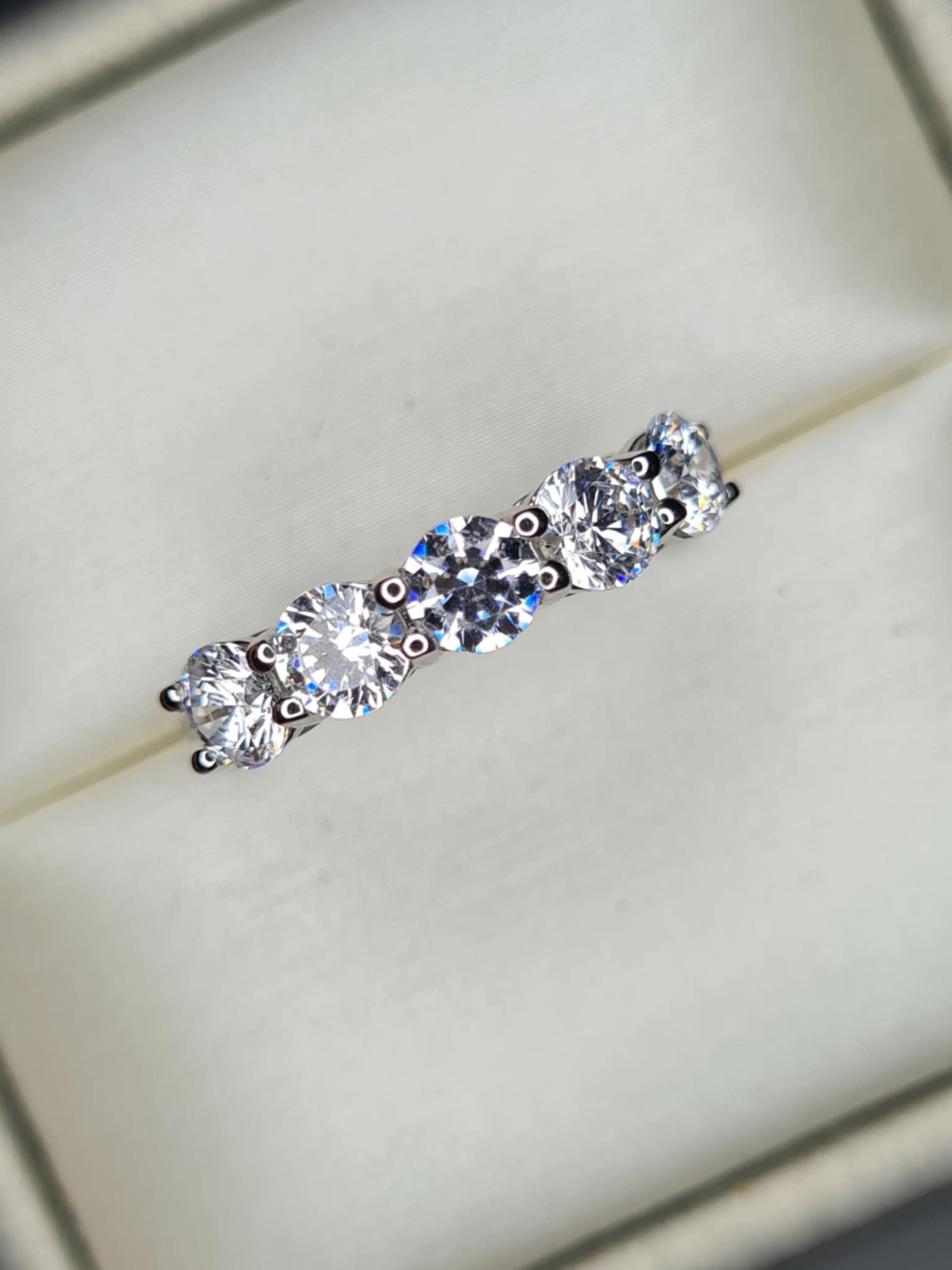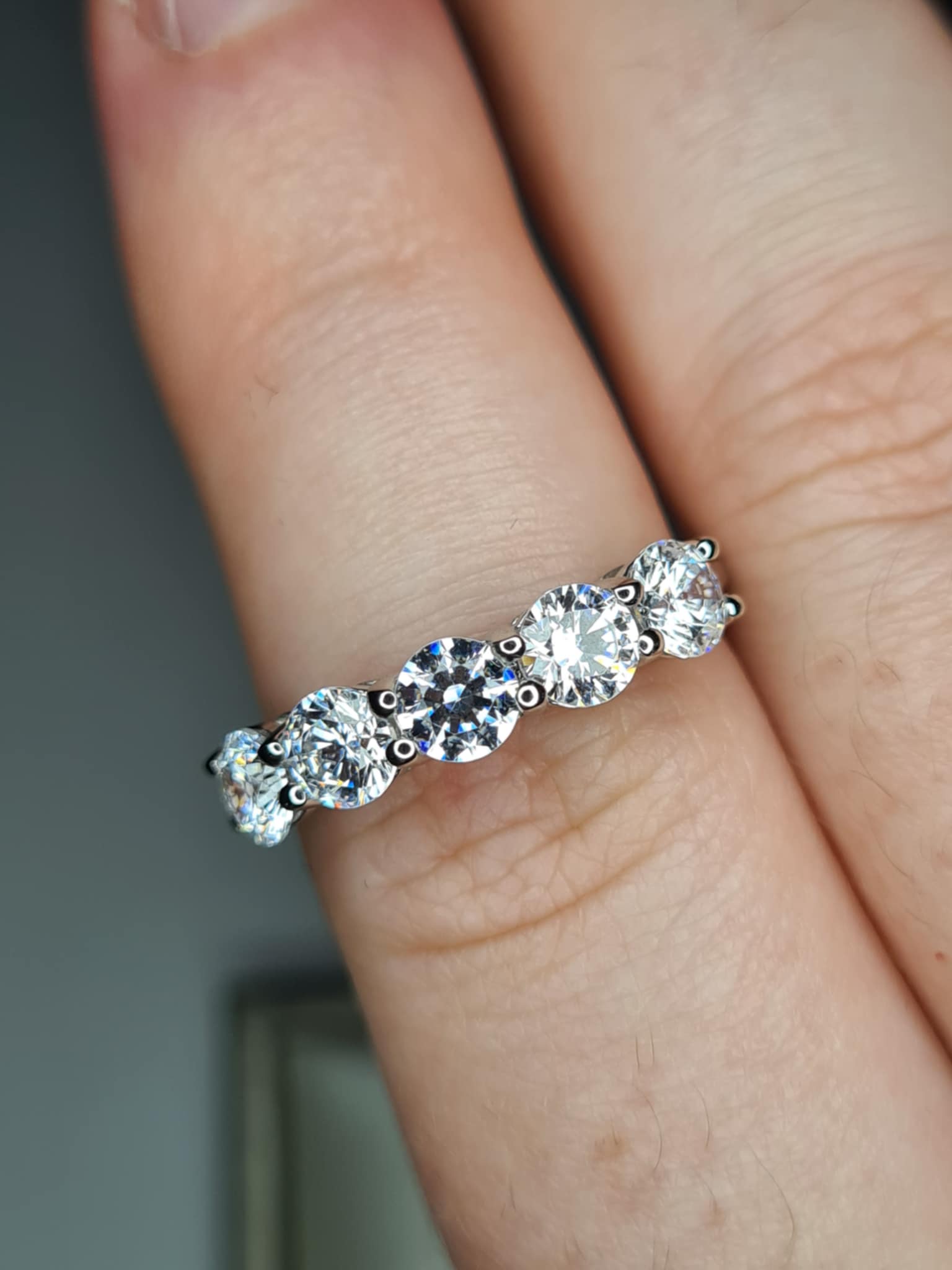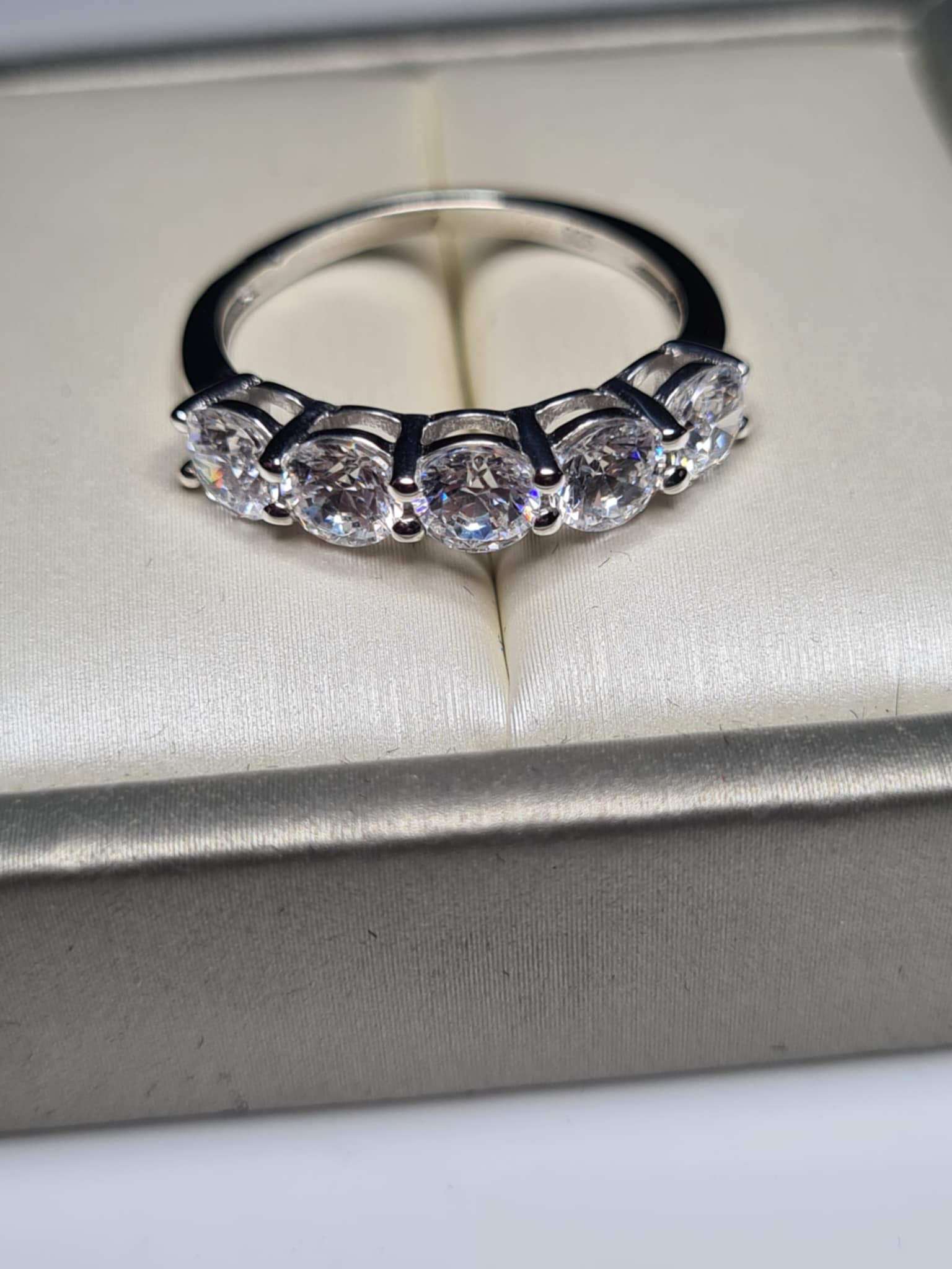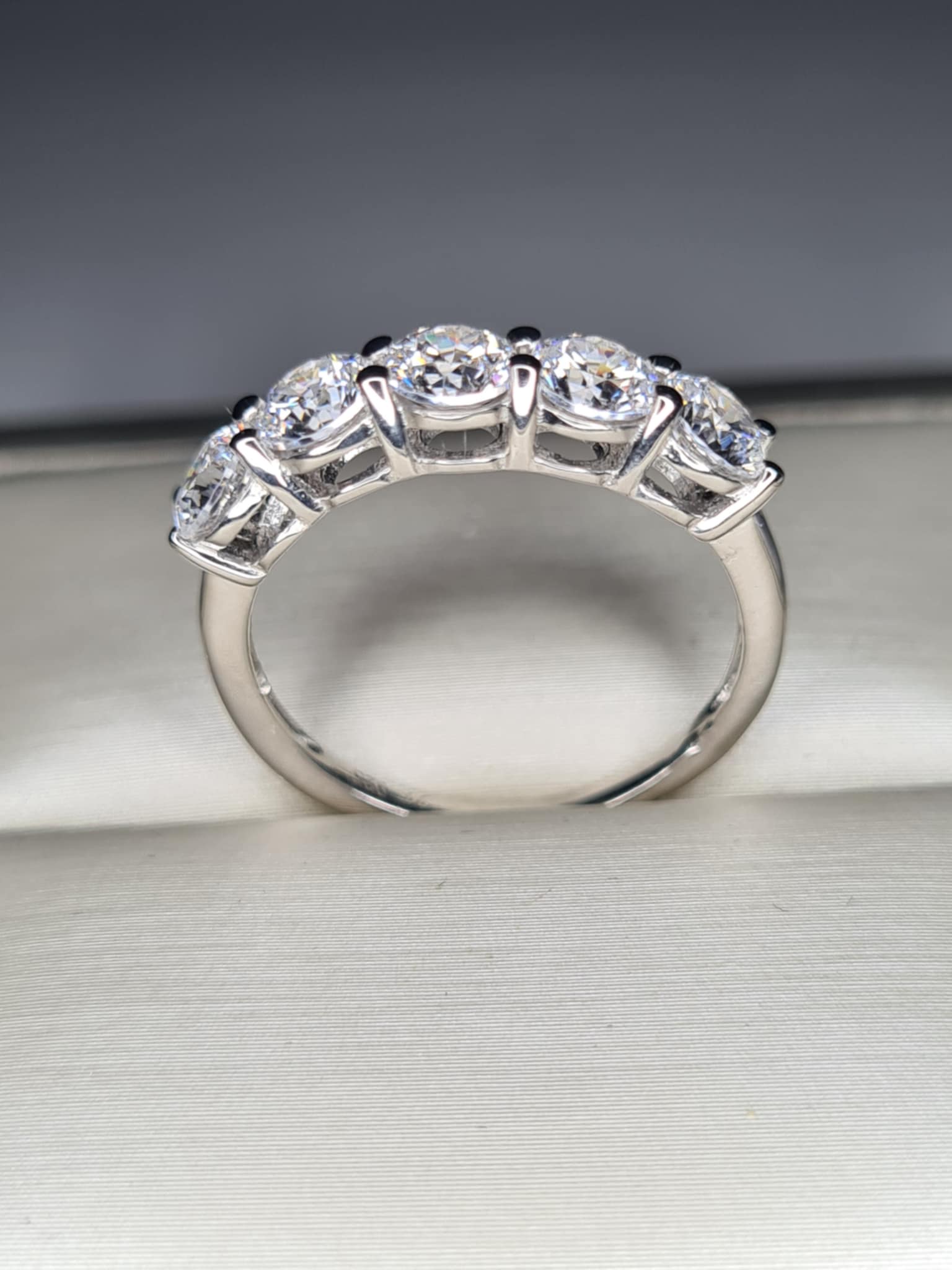 3.25ct Swarovski Zirconia 5 Stone Ring in Rhodium Overlay 925 Sterling Silver