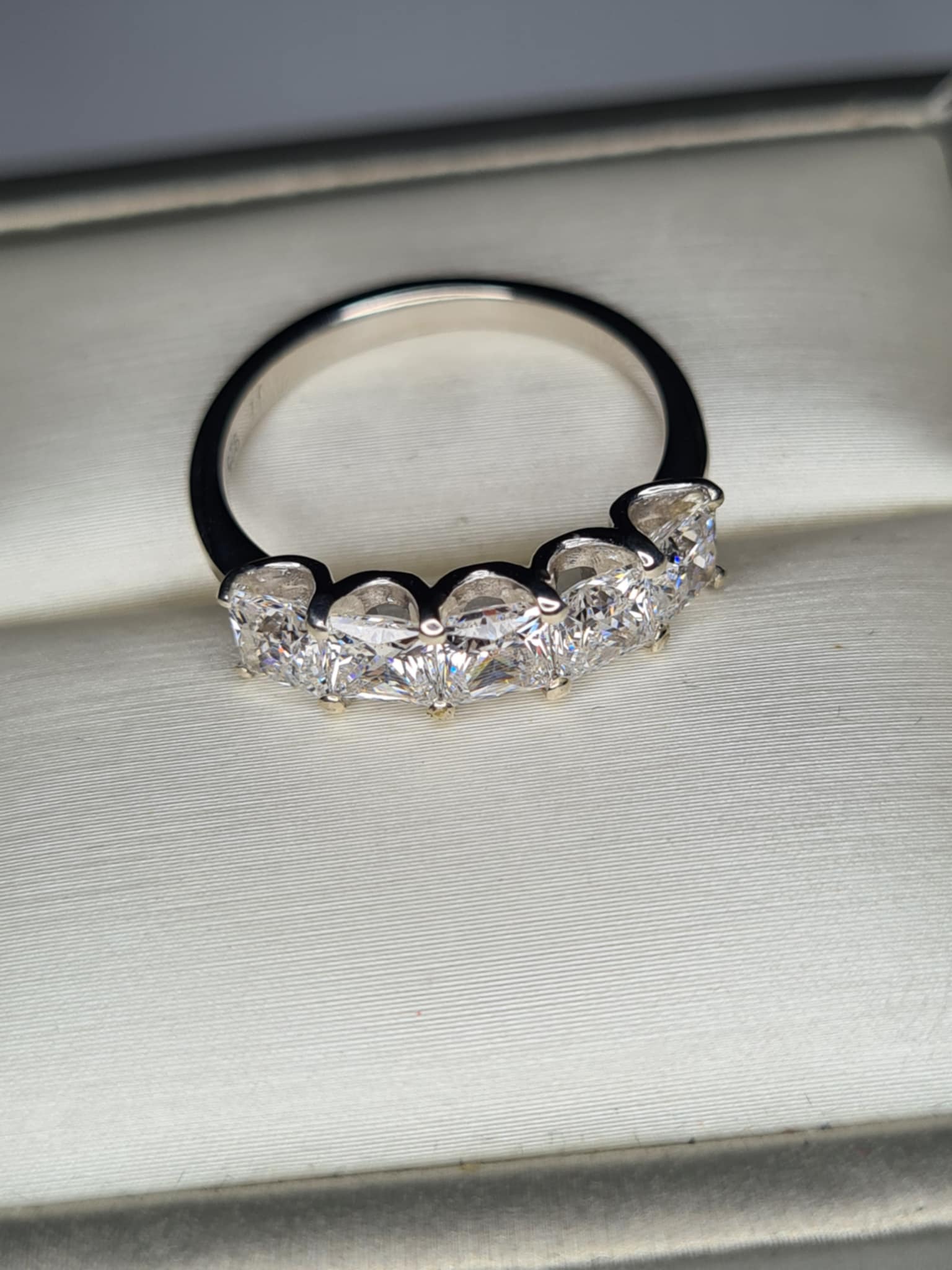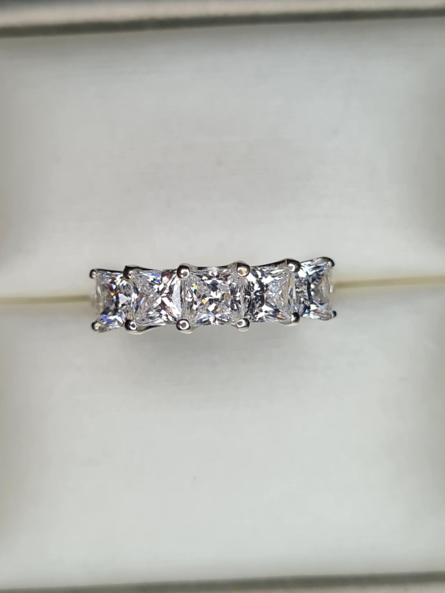 3.26ct Swarovski Zirconia 5 Stone Square cut Ring in Rhodium Overlay 925 Sterling Silver