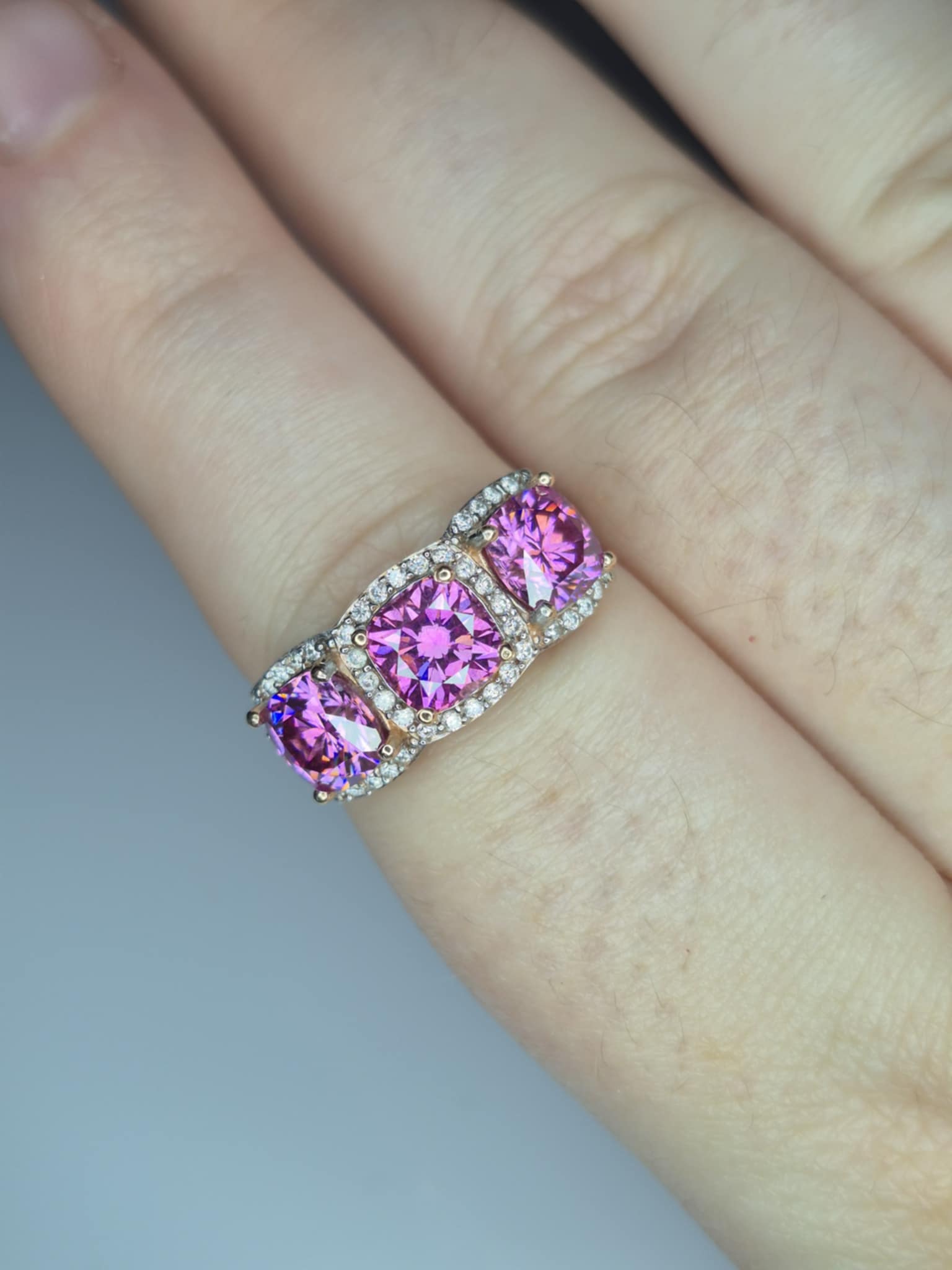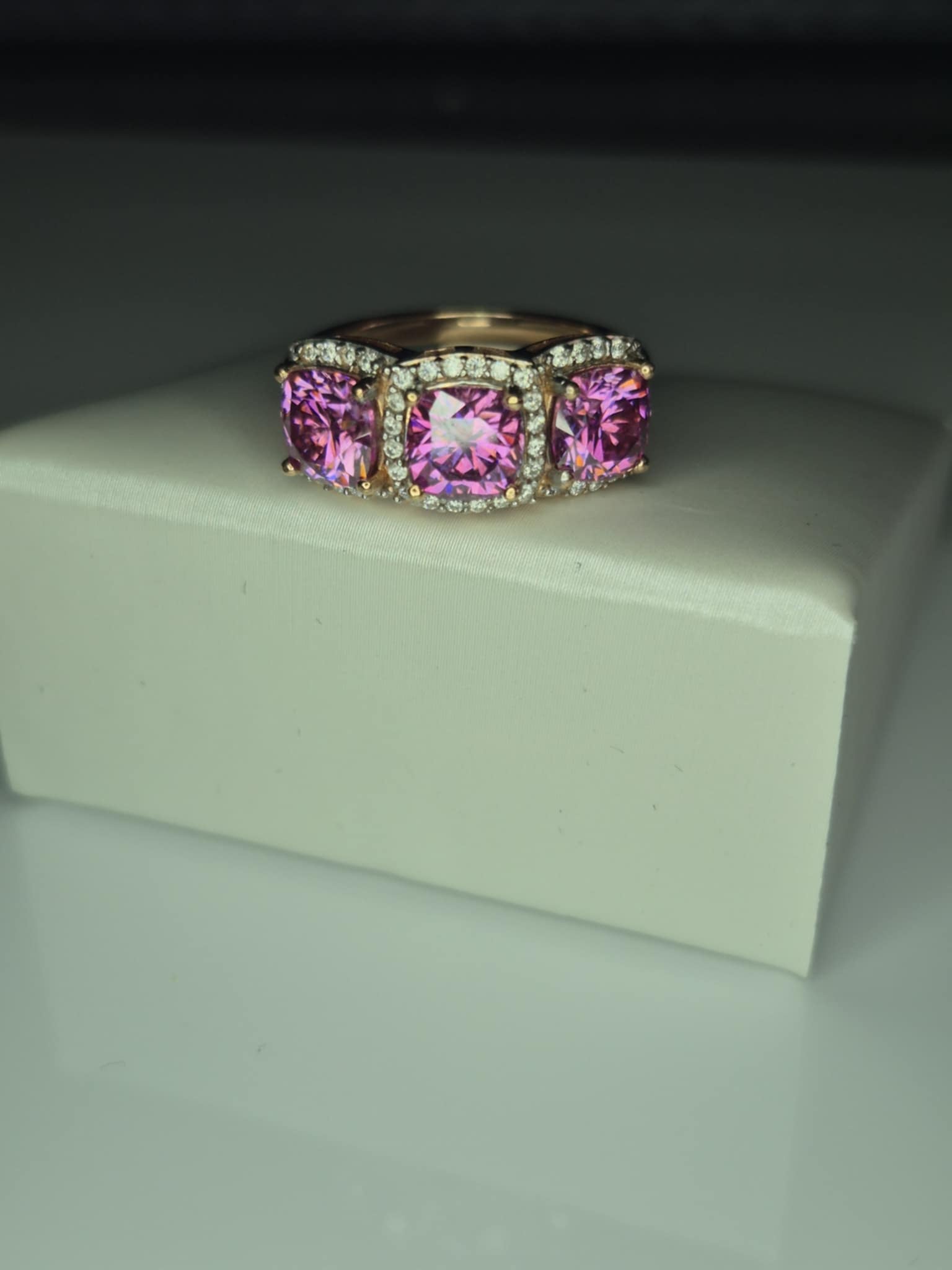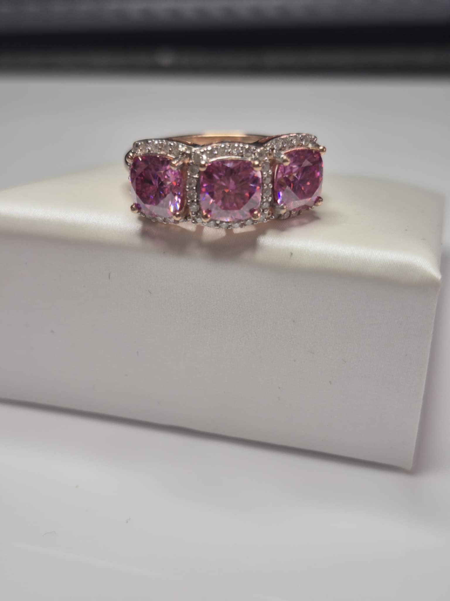 3.45ct Pink & White Moissanite Ring in 18K Rose Gold 925 Sterling Silver SIZE O