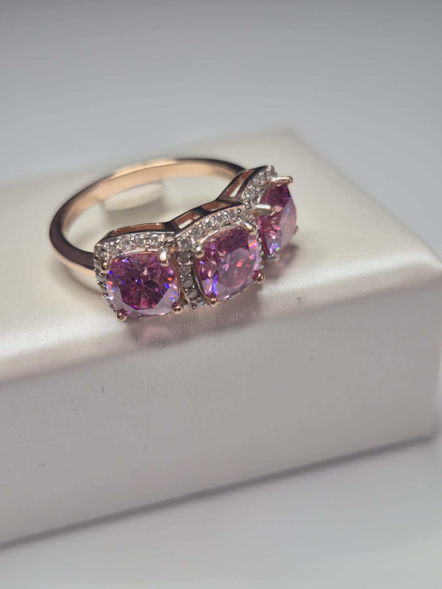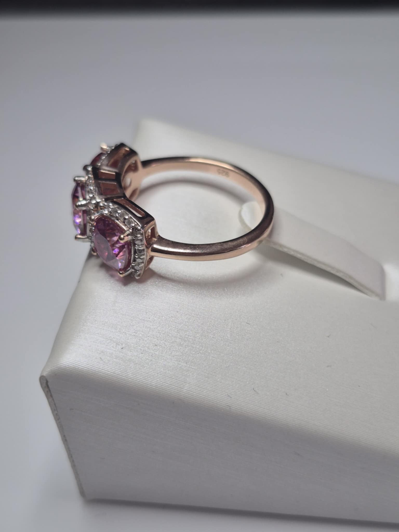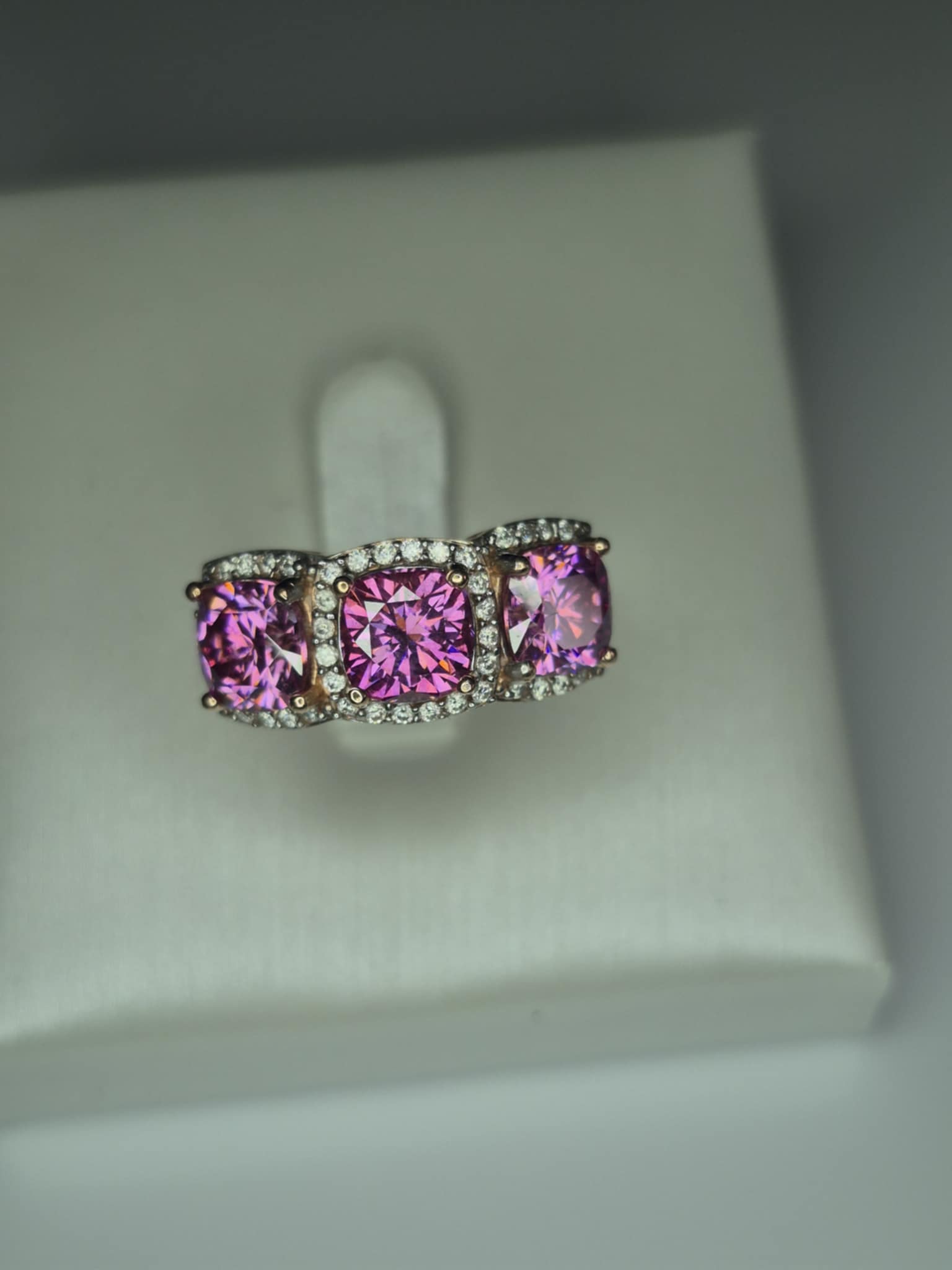 3.45ct Pink & White Moissanite Ring in 18K Rose Gold 925 Sterling Silver SIZE O