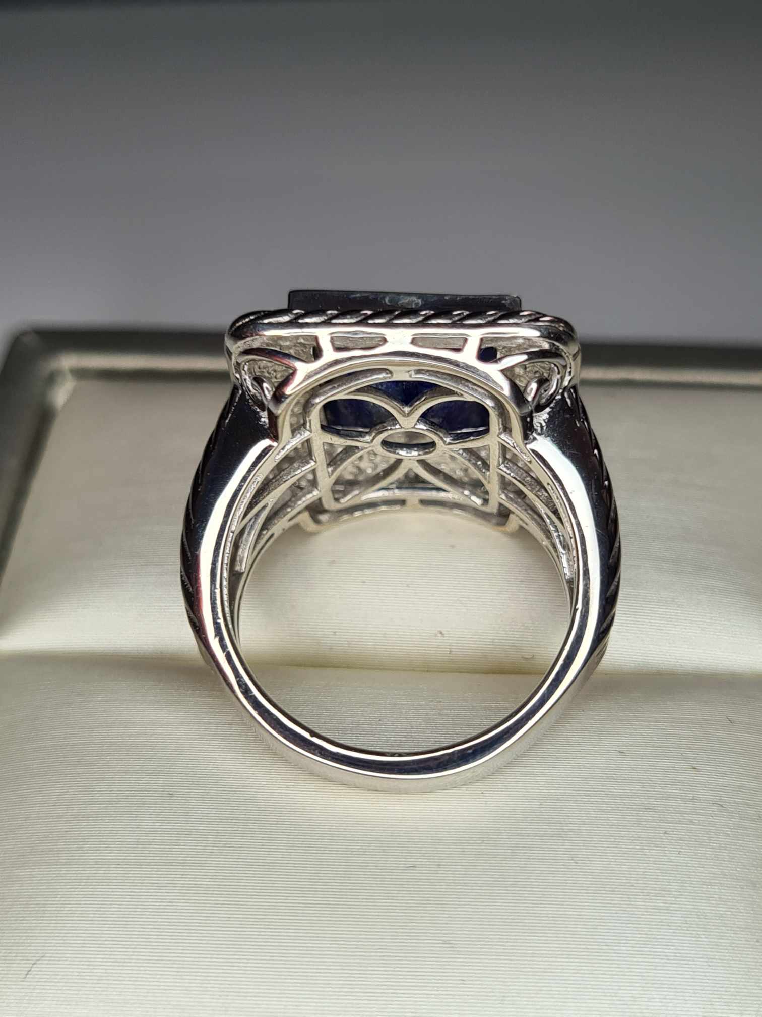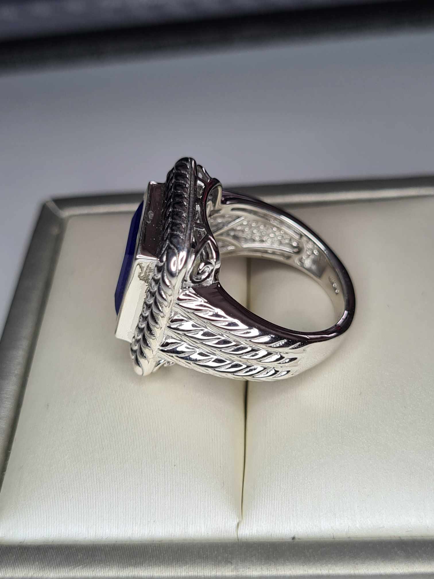 5.04ct Lapis Lazuli Solitaire Halo Ring in Platinum Overlay 925 Sterling Silver