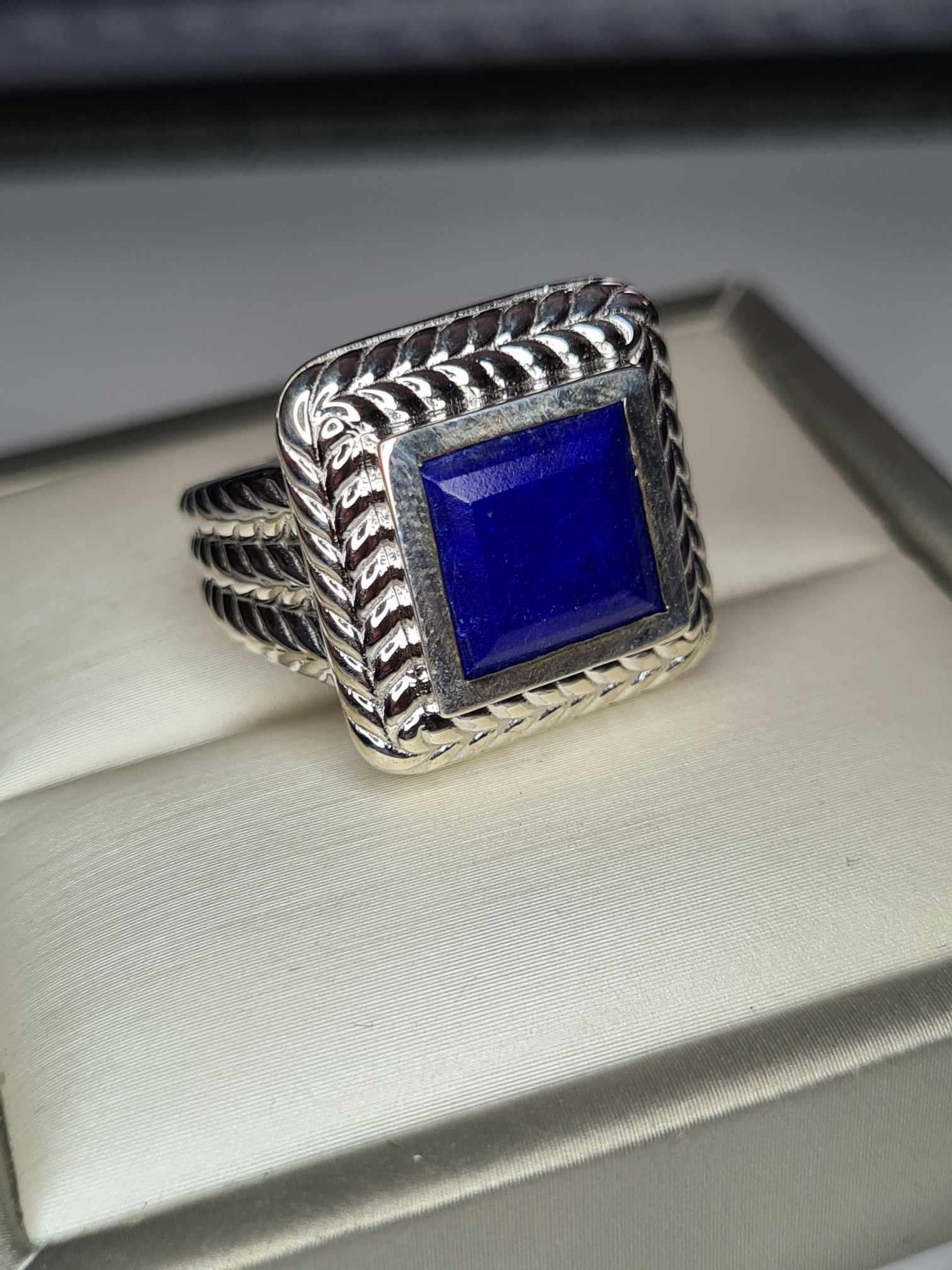 5.04ct Lapis Lazuli Solitaire Halo Ring in Platinum Overlay 925 Sterling Silver SIZE N