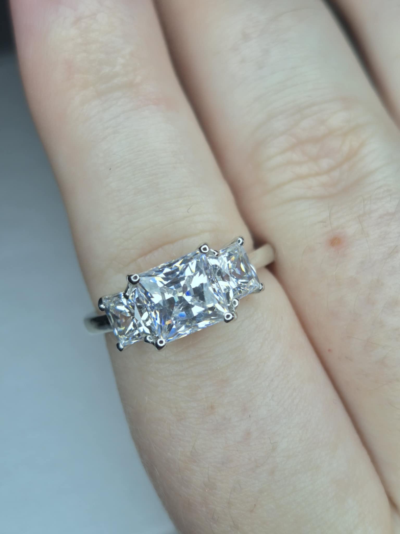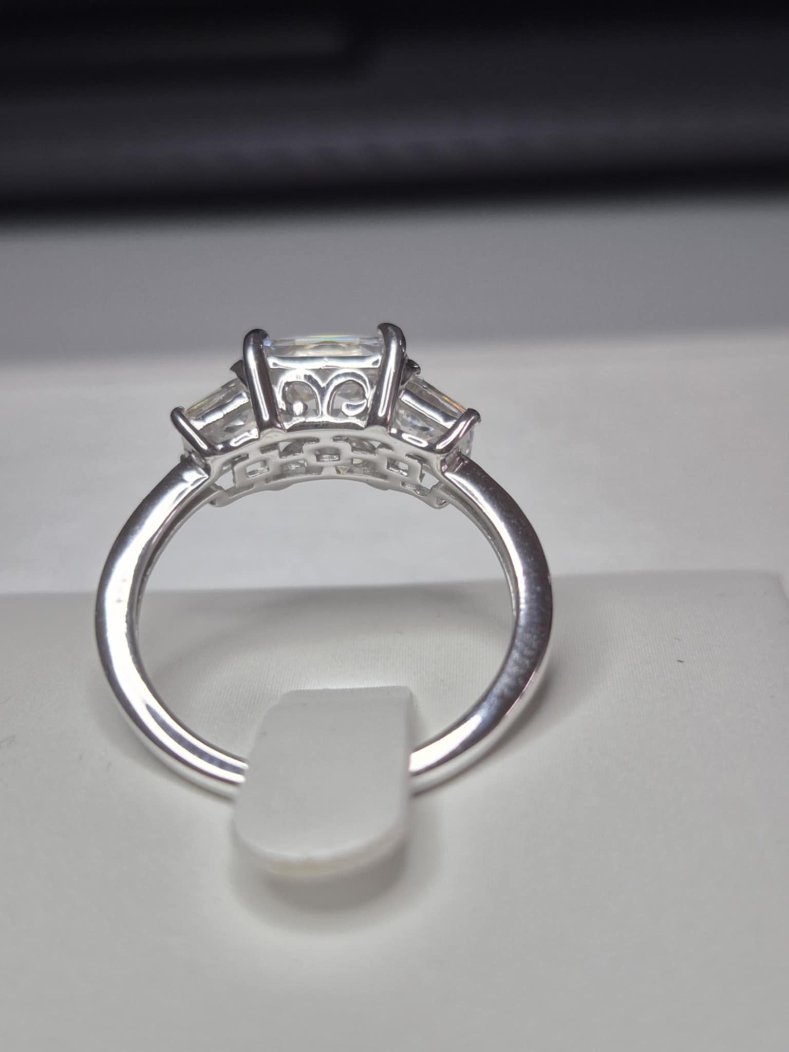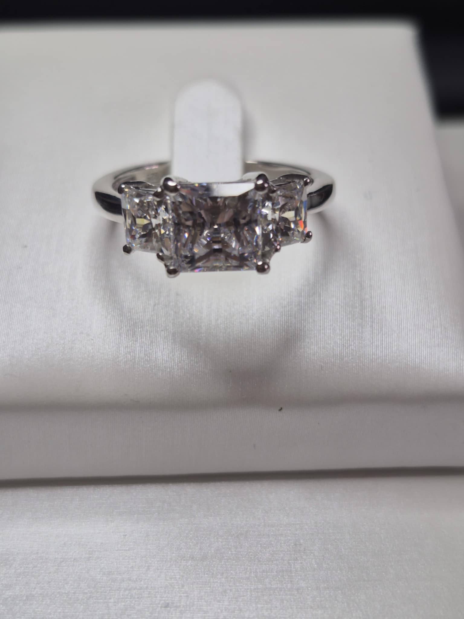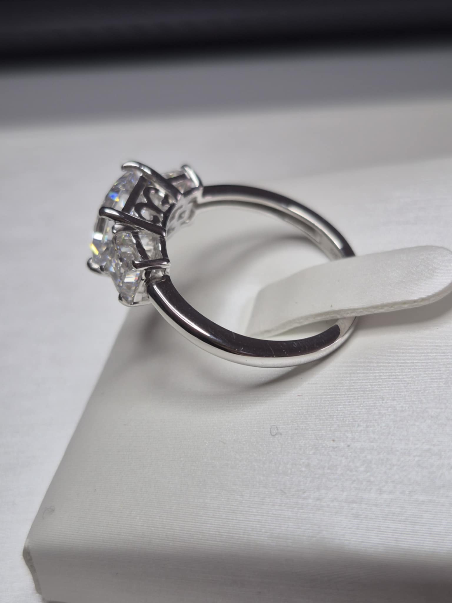 5.56ct Swarovski Zirconia Trilogy Ring in Rhodium Overlay 925 Sterling Silver