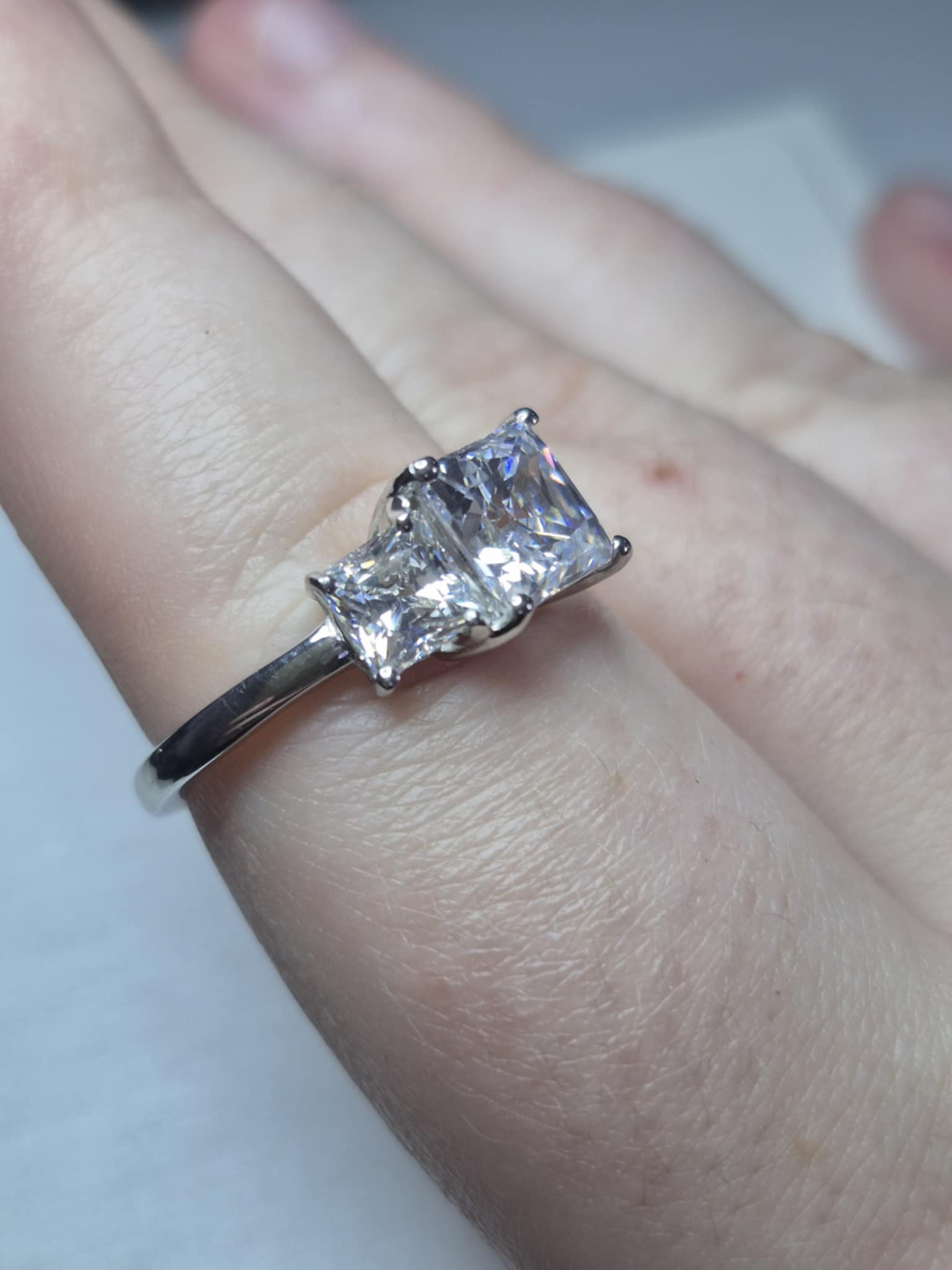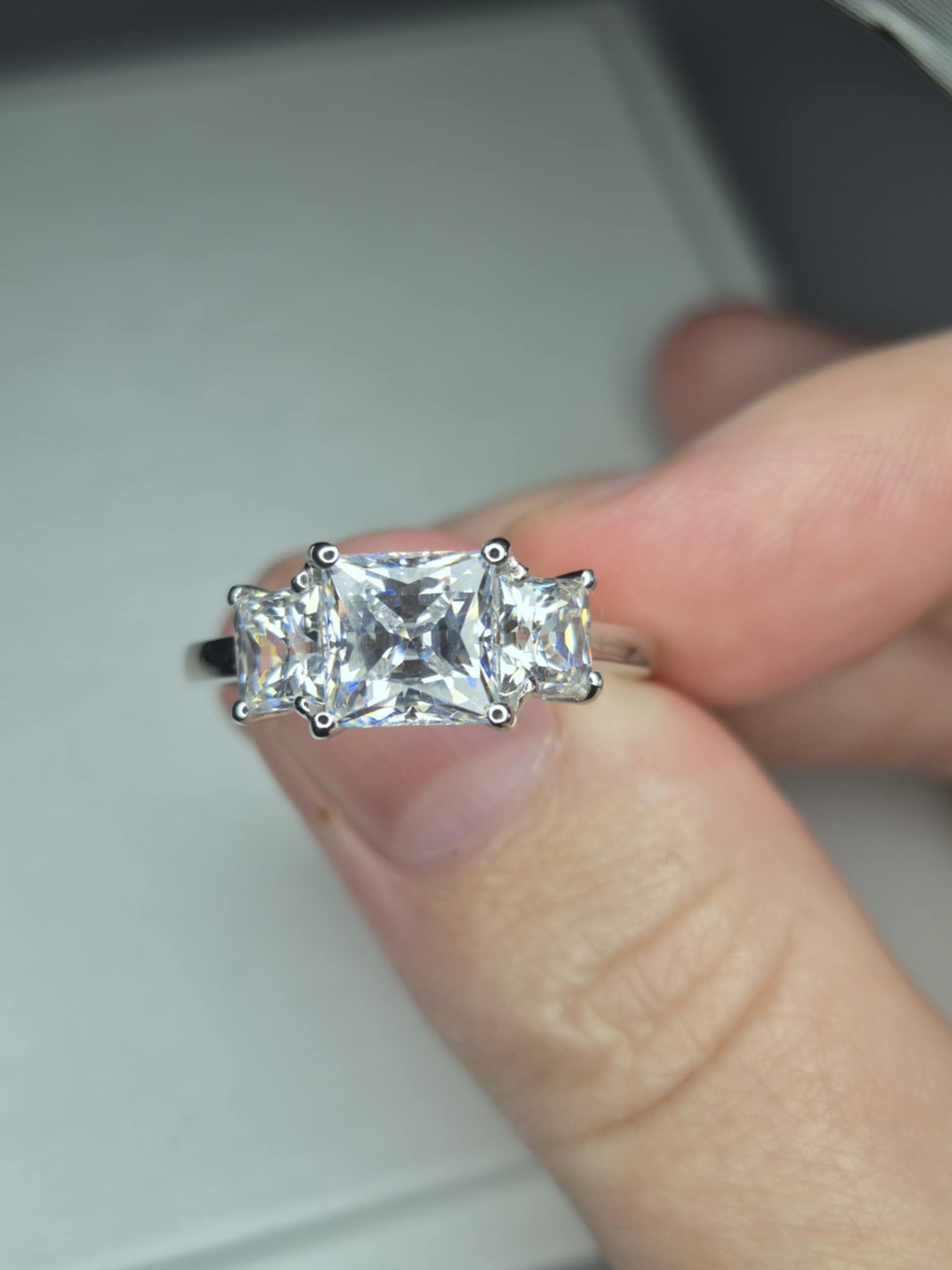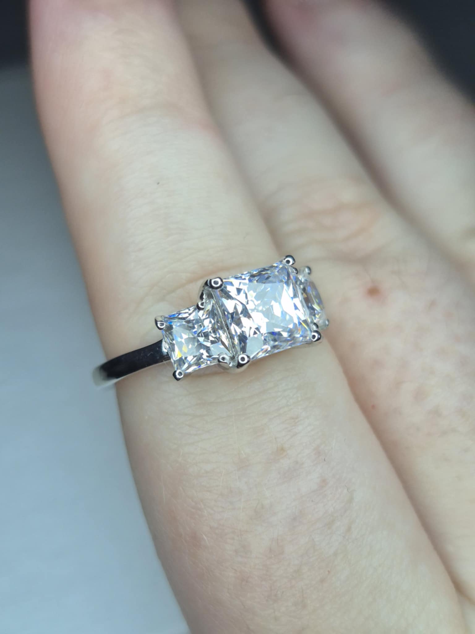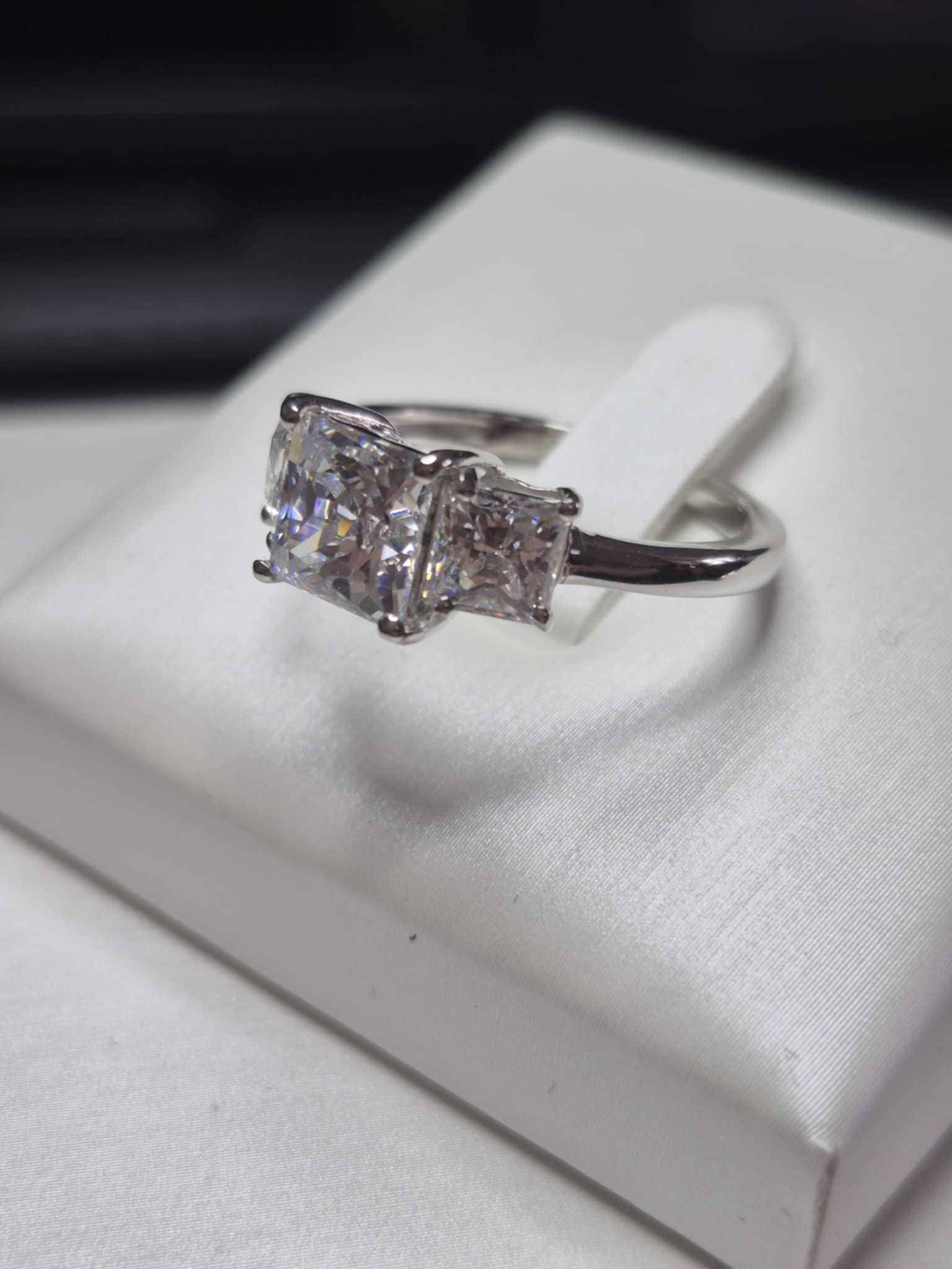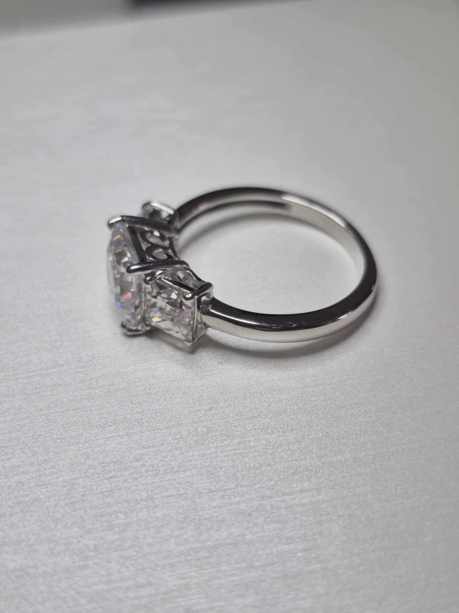5.56ct Swarovski Zirconia Trilogy Ring in Rhodium Overlay 925 Sterling Silver