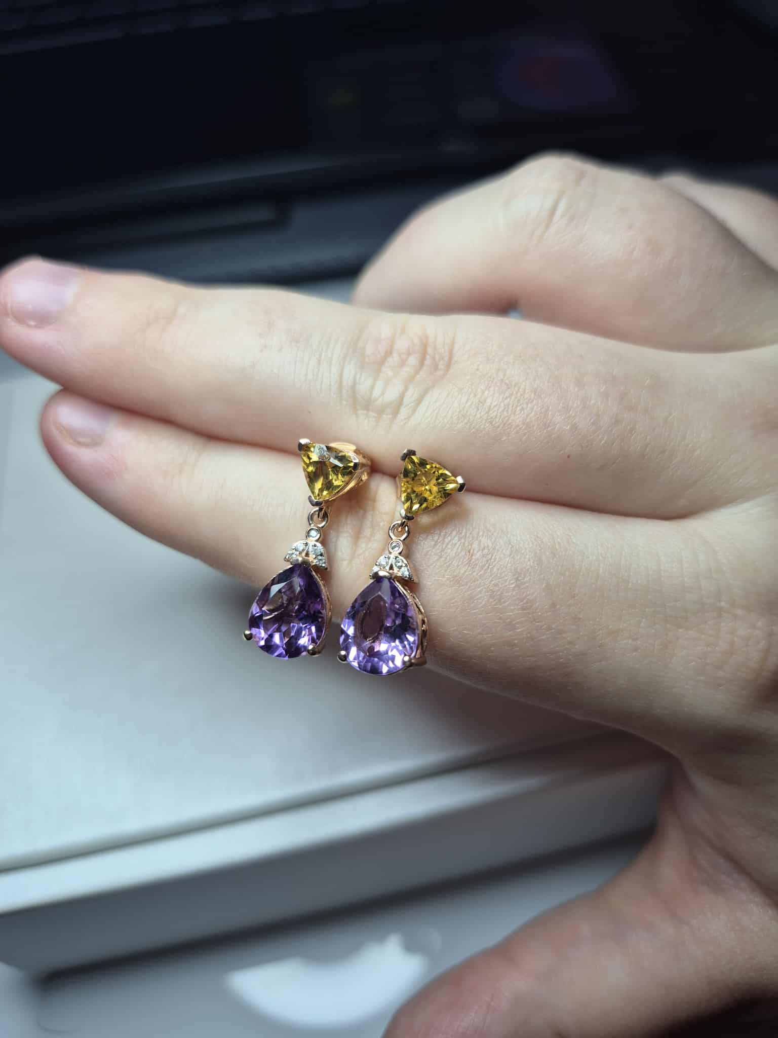5.71ct Rose De France Amethyst, Citrine And zircon Dangle Earrings 925 Sterling Silver