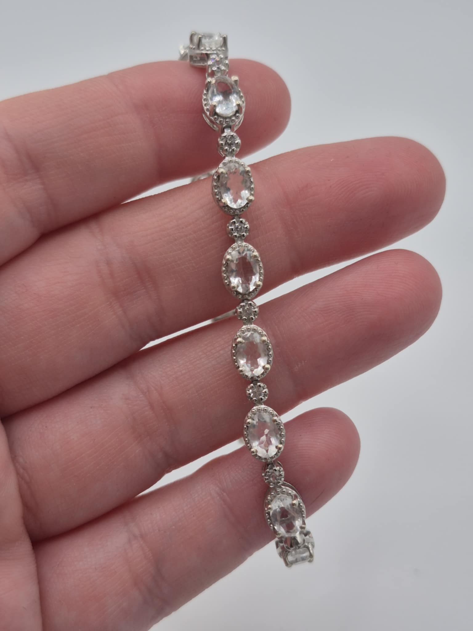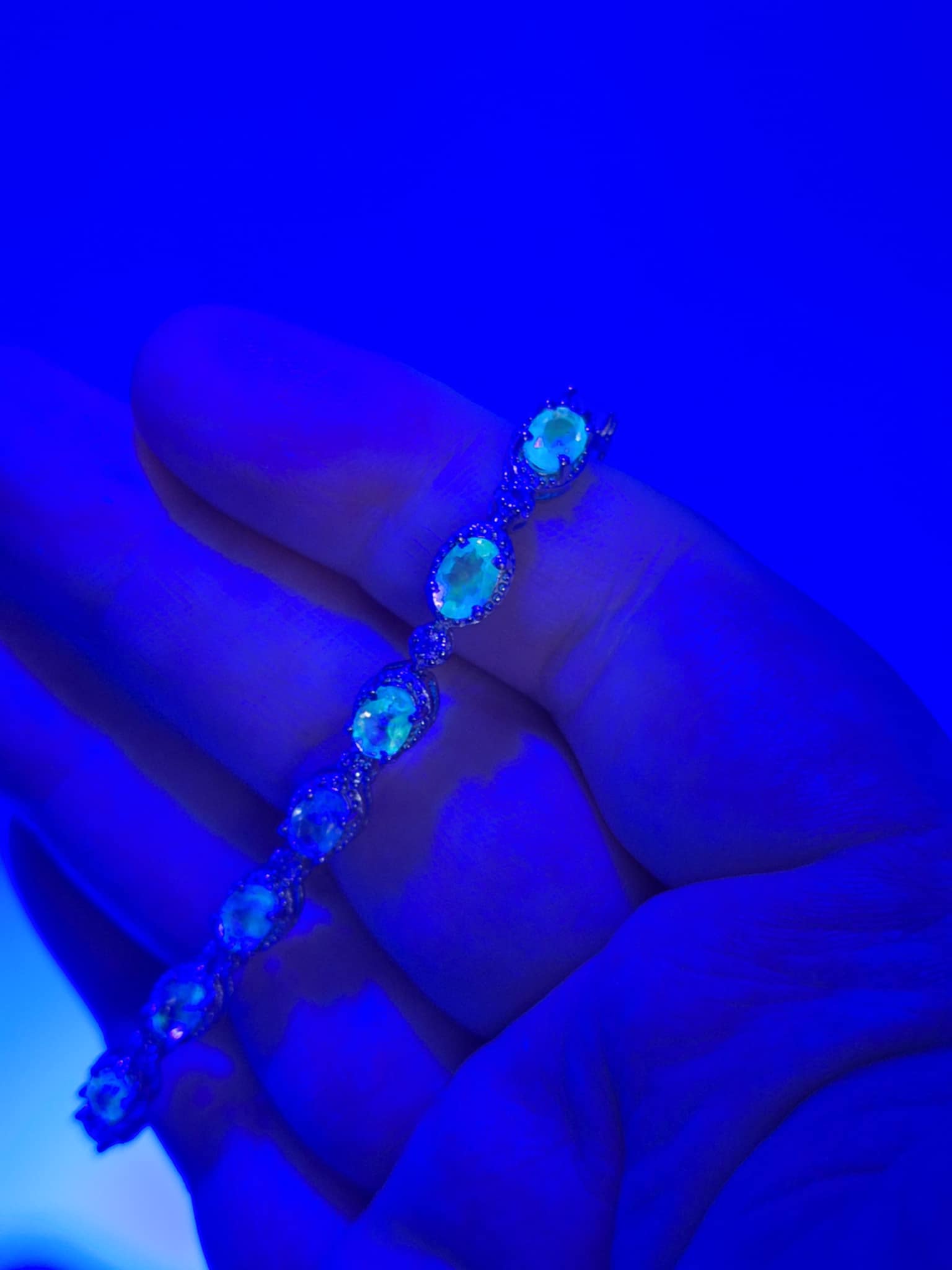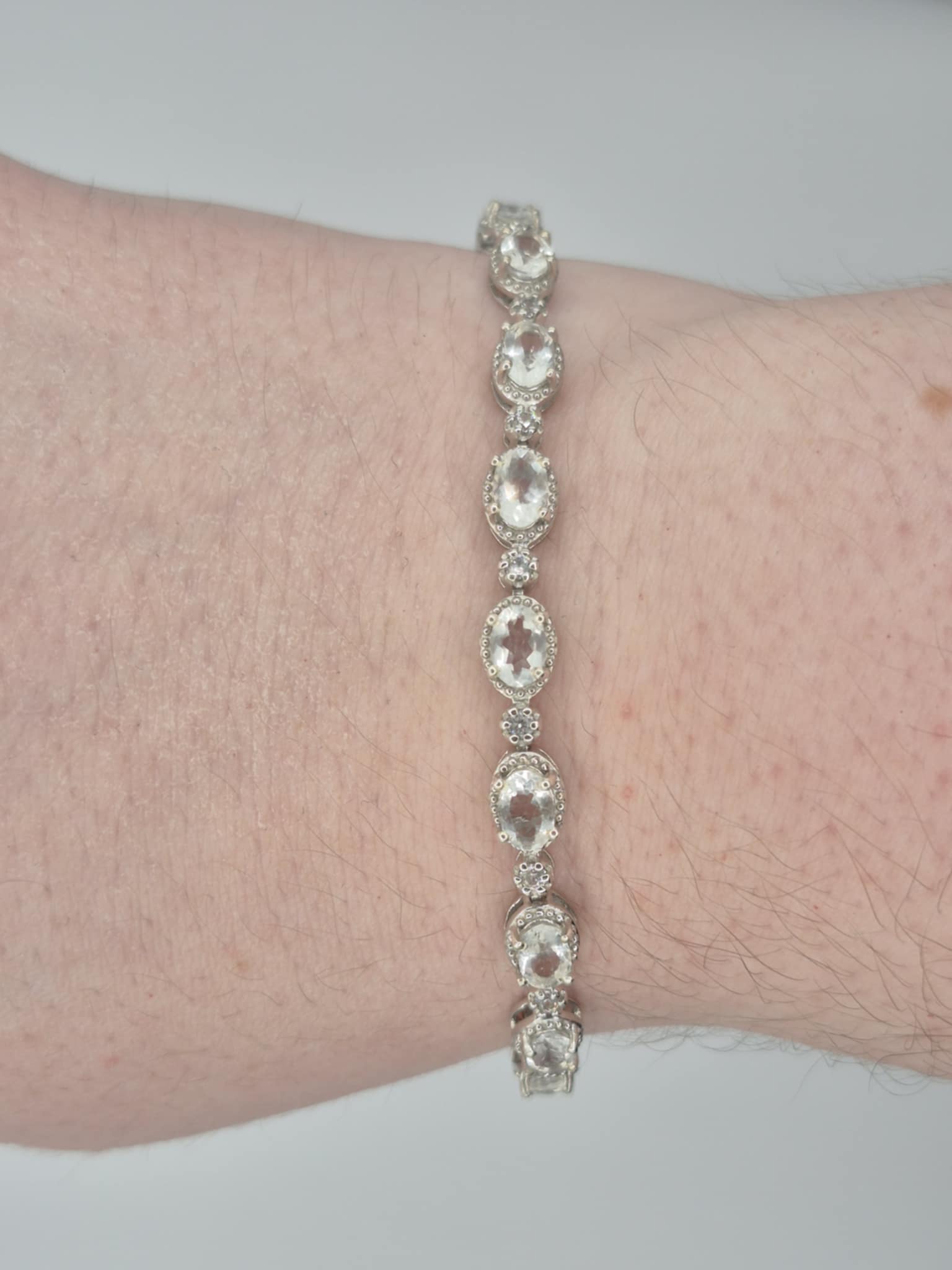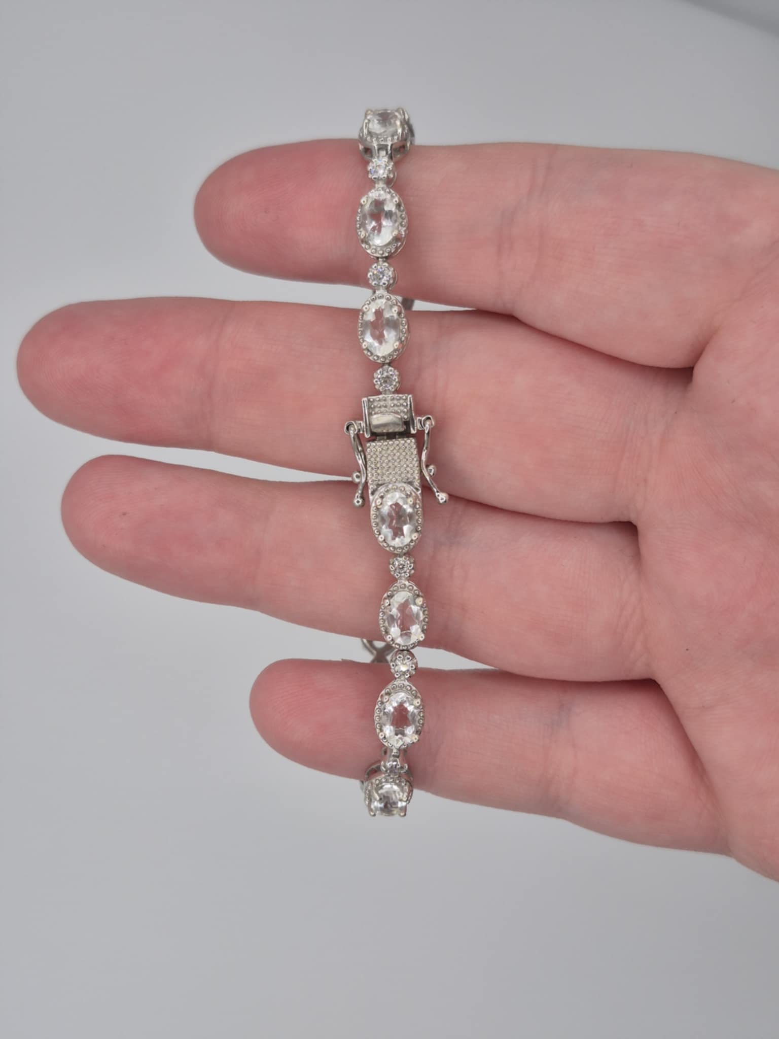 6.50ct Hyalite Opal and Natural Cambodian Zircon Bracelet in Platinum Overlay Sterling Silver