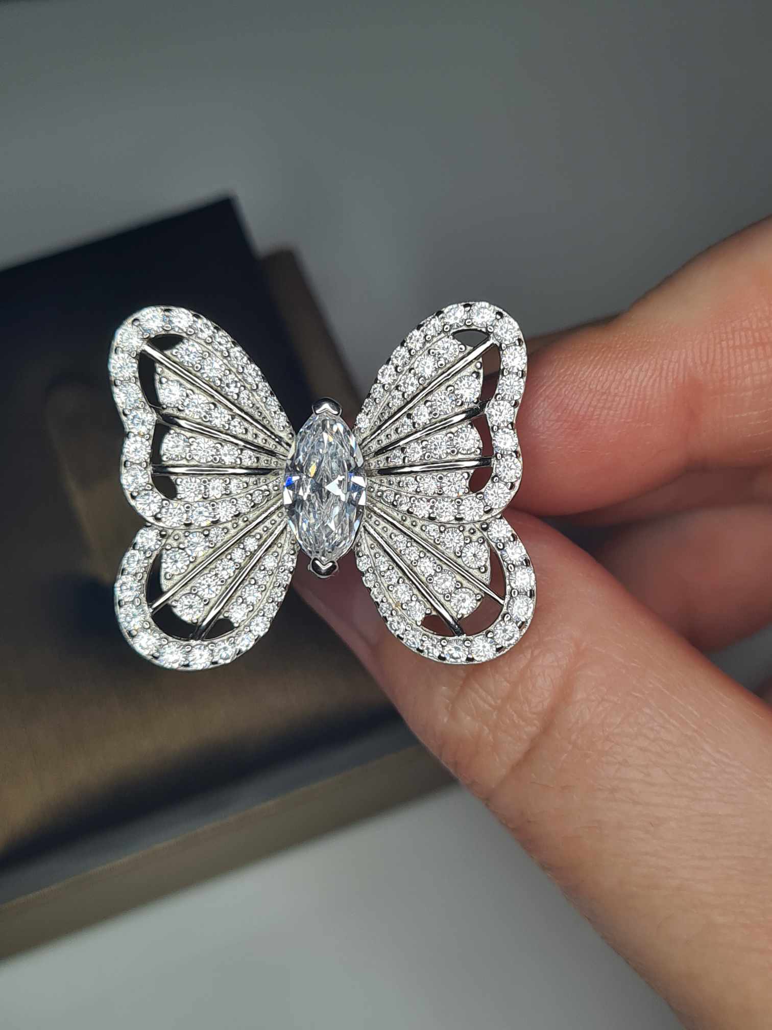 6.670ct Cubic Zirconia Butterfly Ring in Rhodium Overlay 925 Sterling Silver SIZE L