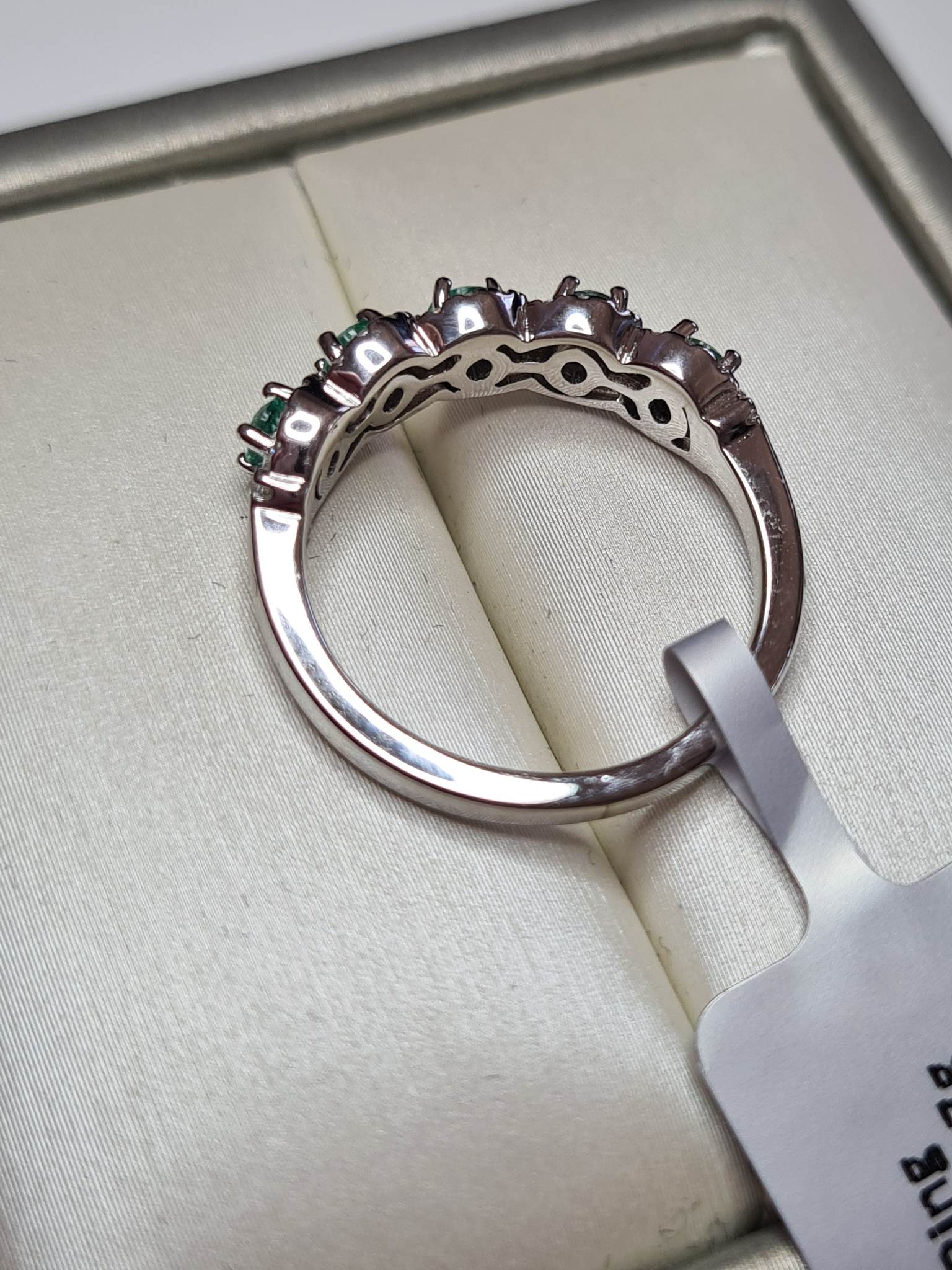 AAA Kagem Gemfields Emerald & Cambodian Zircon Ring in 925 Sterling Silver SIZE N