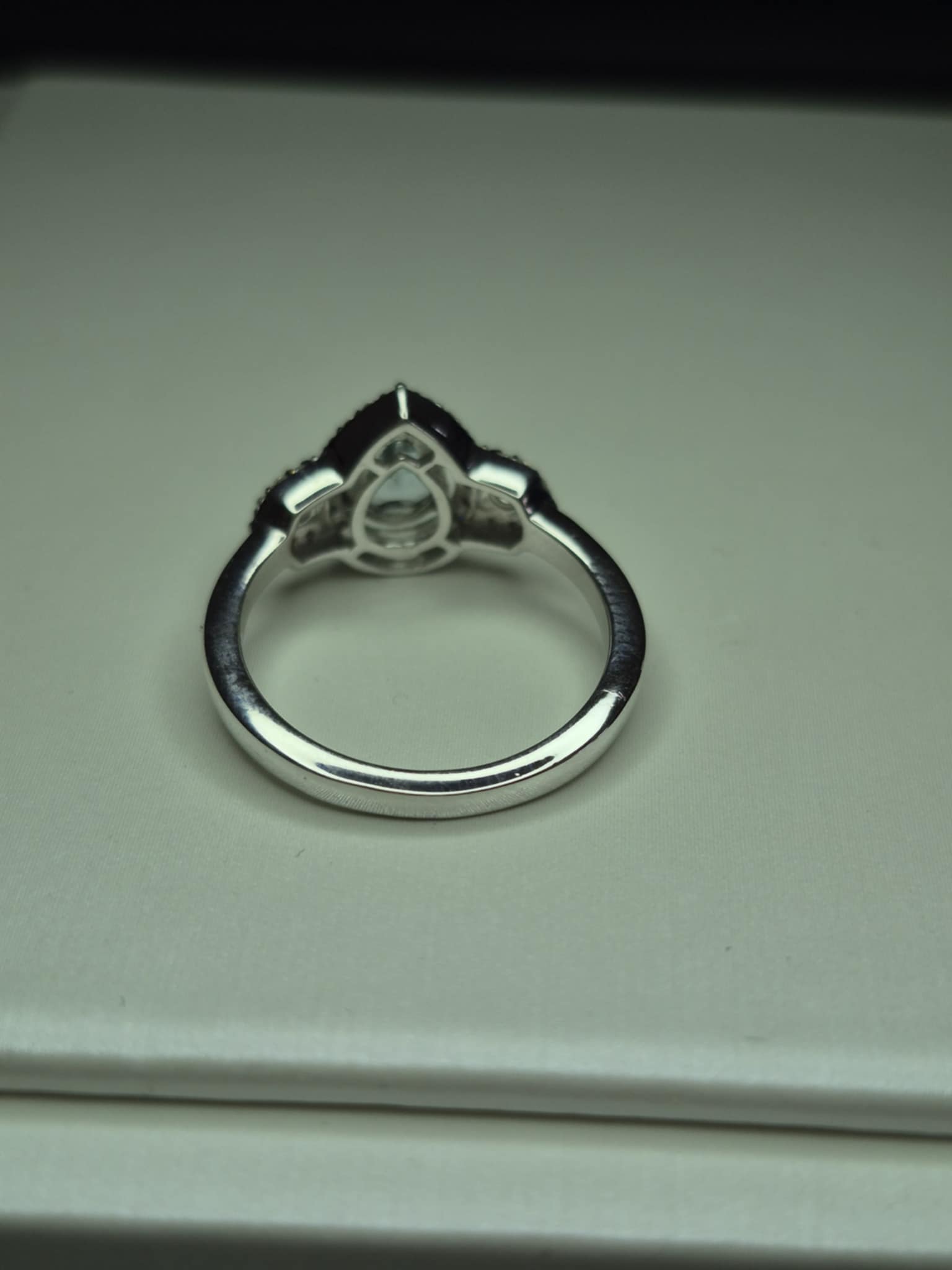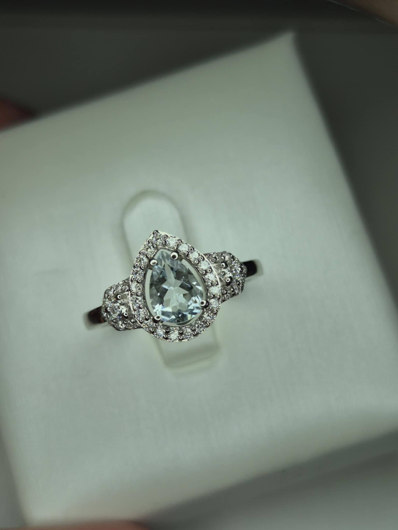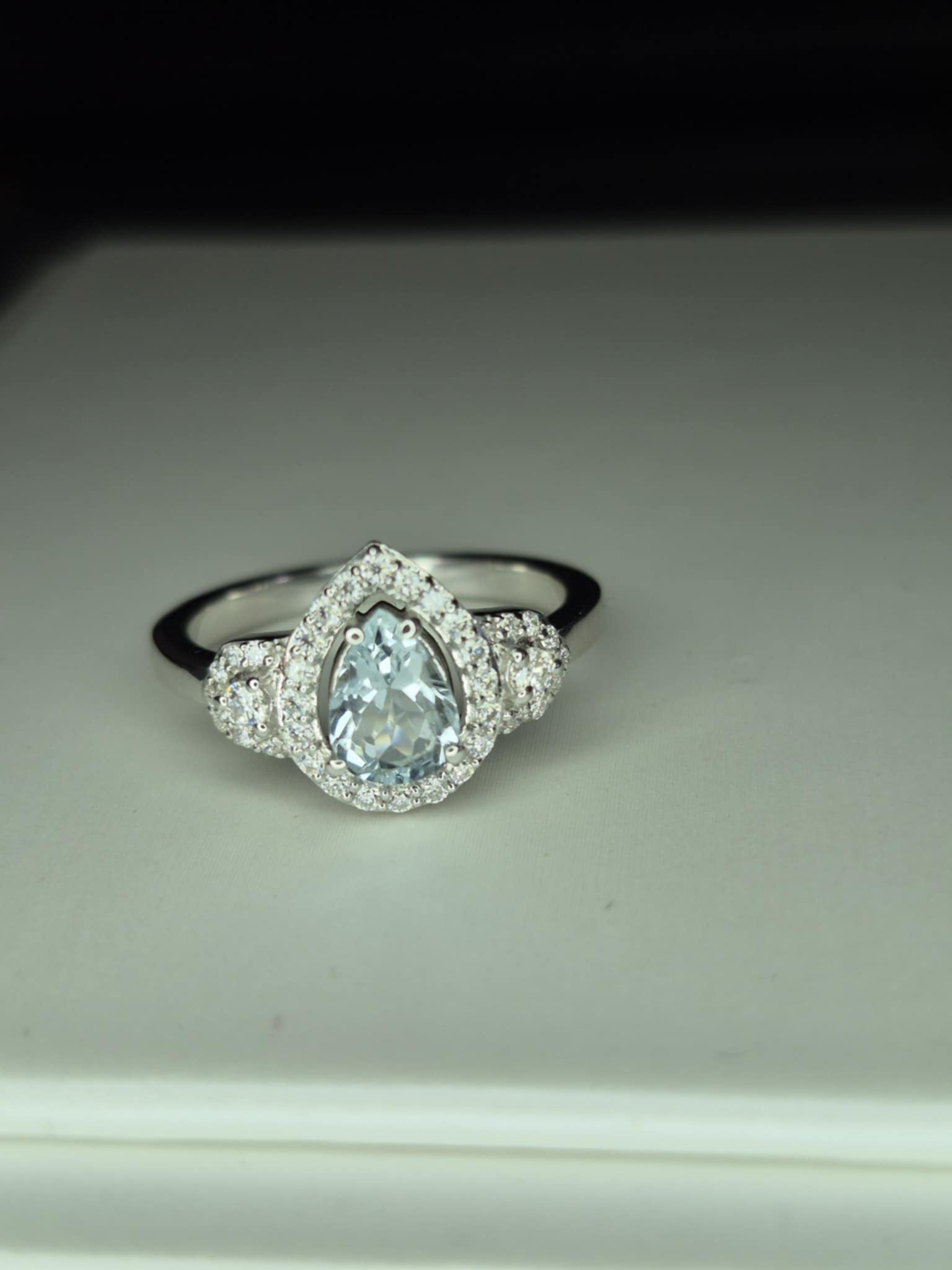 Aquamarine & Moissanite Ring in Rhodium Overlay 925 Sterling Silver SIZE M