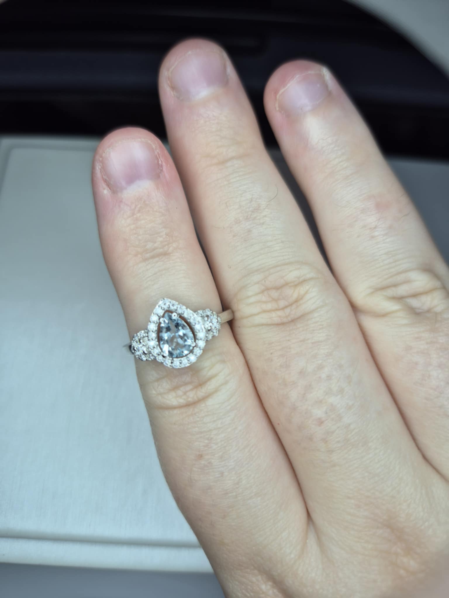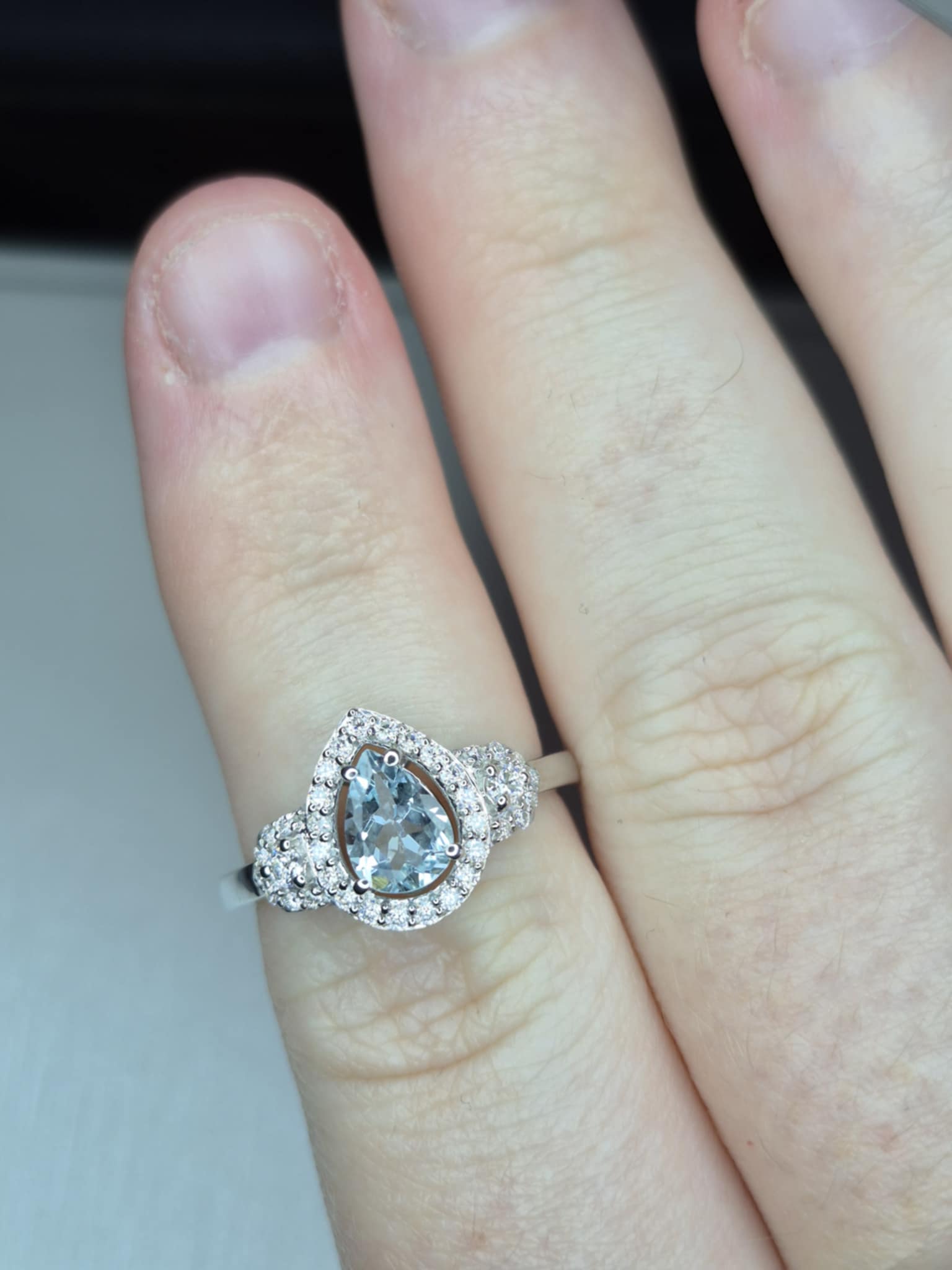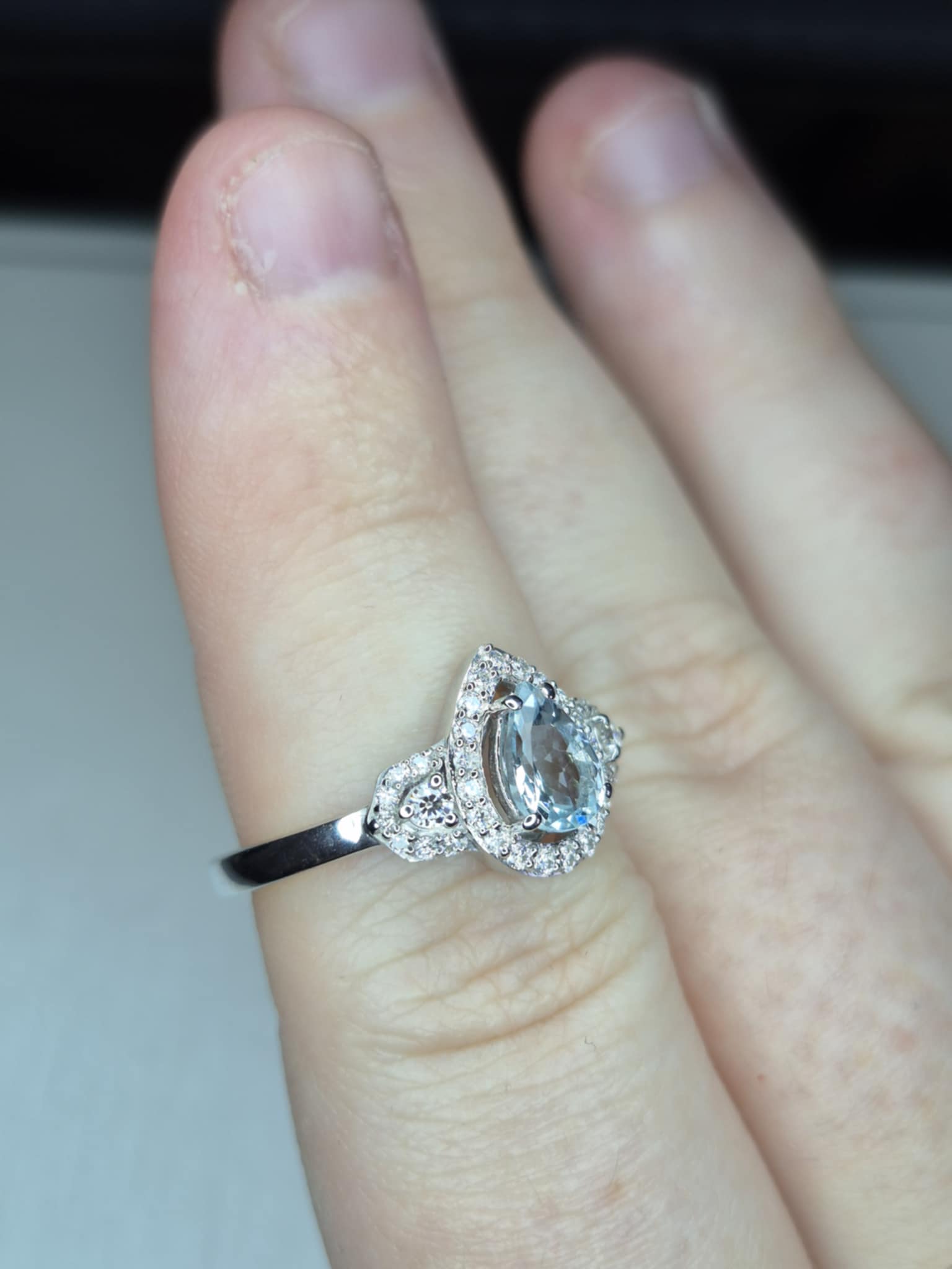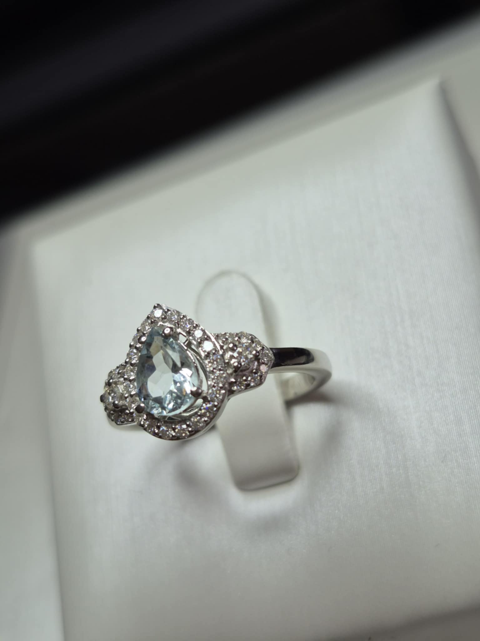Aquamarine & Moissanite Ring in Rhodium Overlay 925 Sterling Silver SIZE M