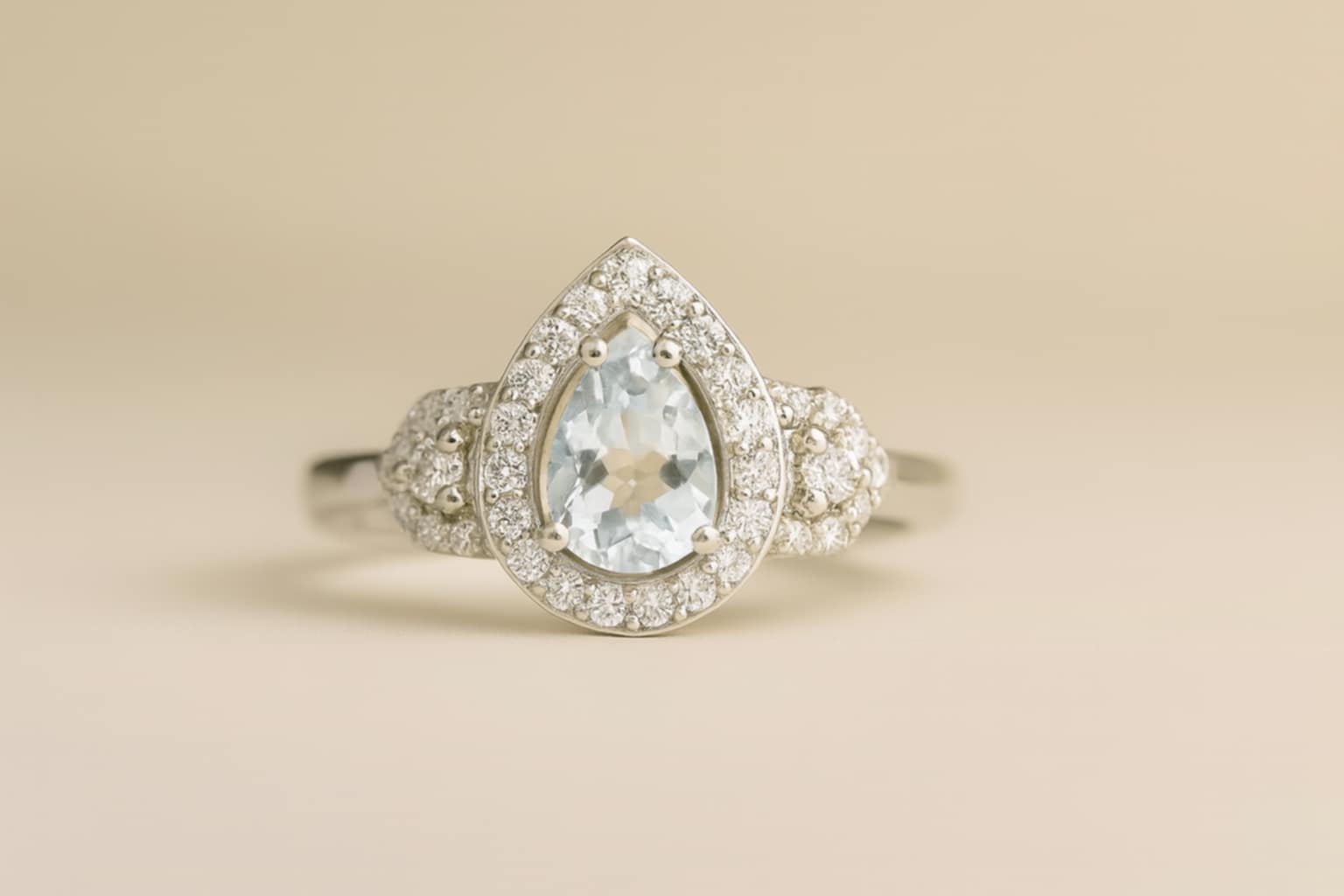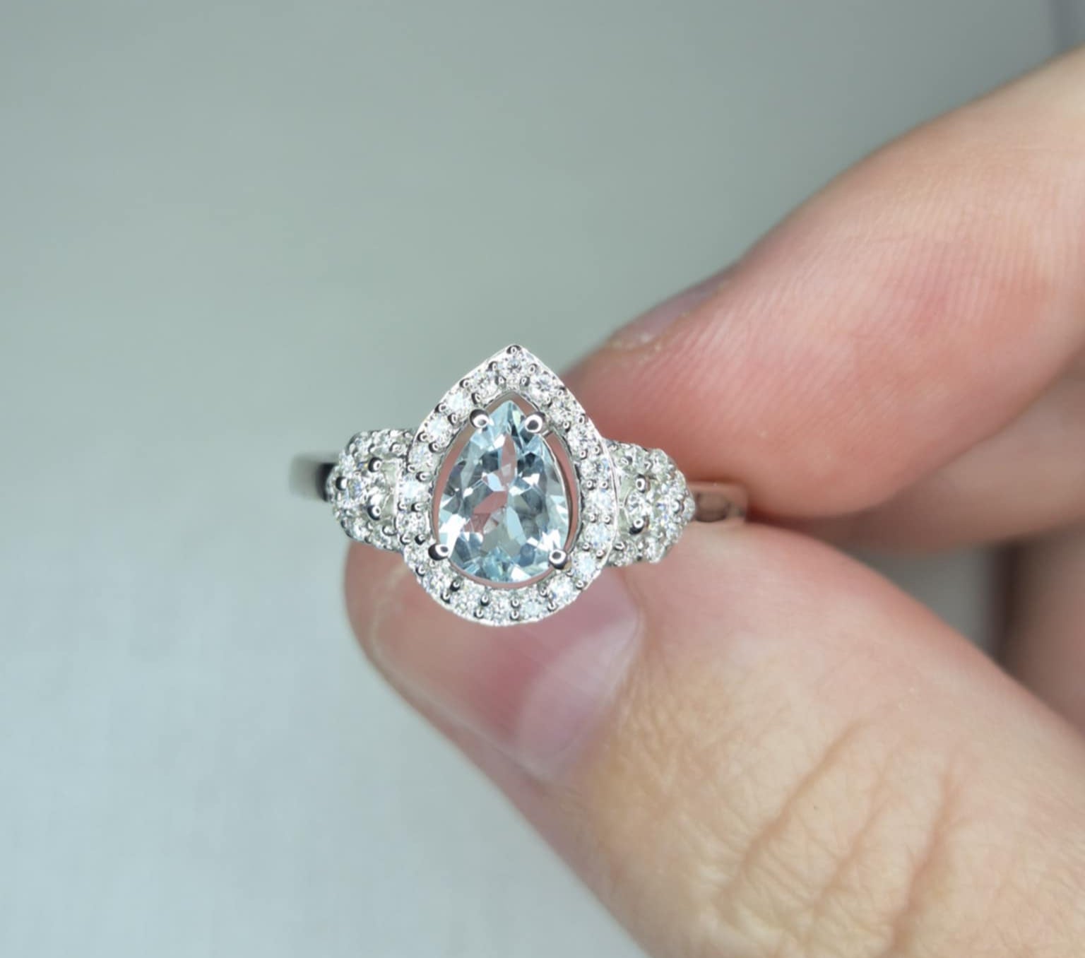 Aquamarine & Moissanite Ring in Rhodium Overlay 925 Sterling Silver