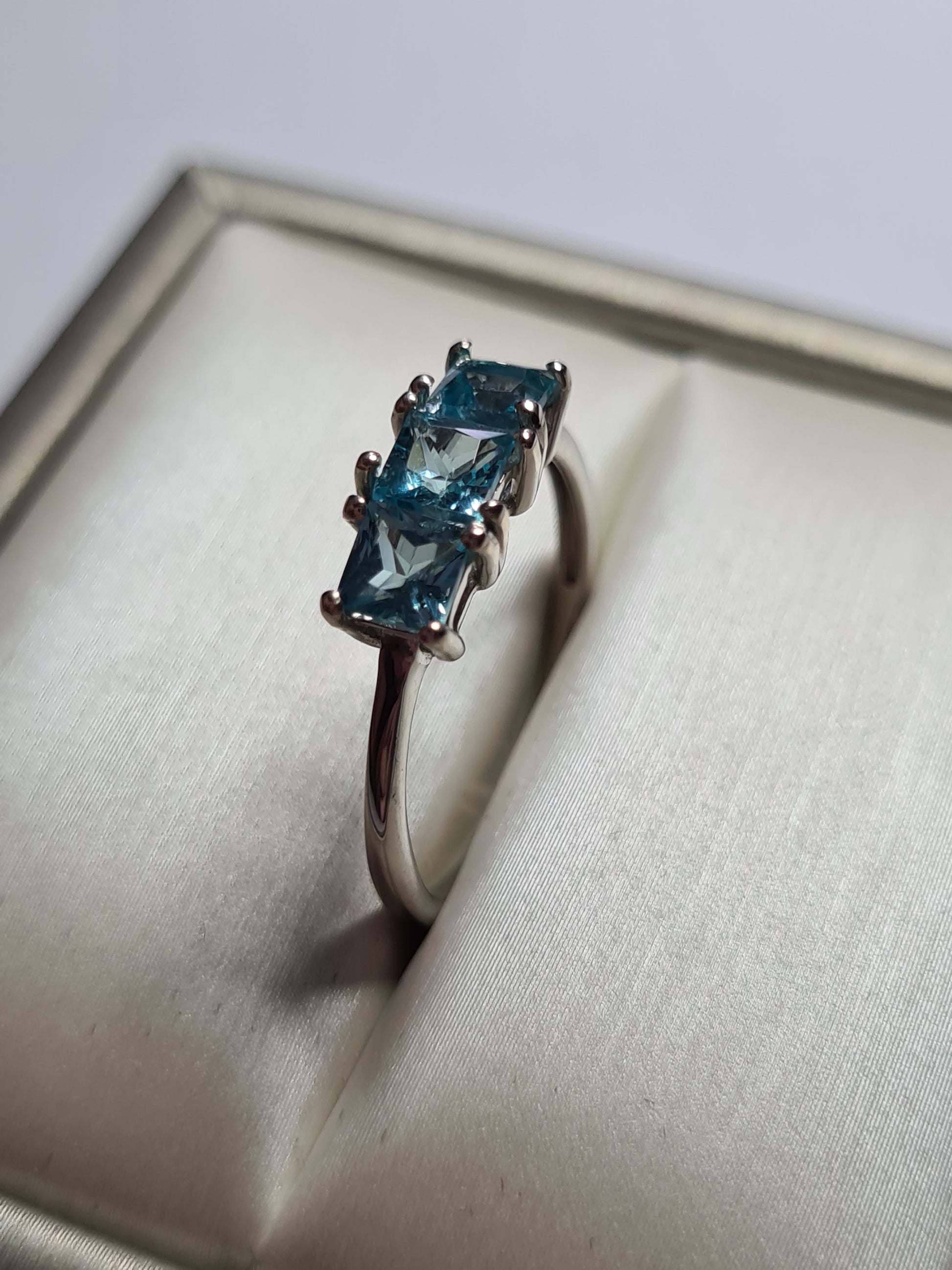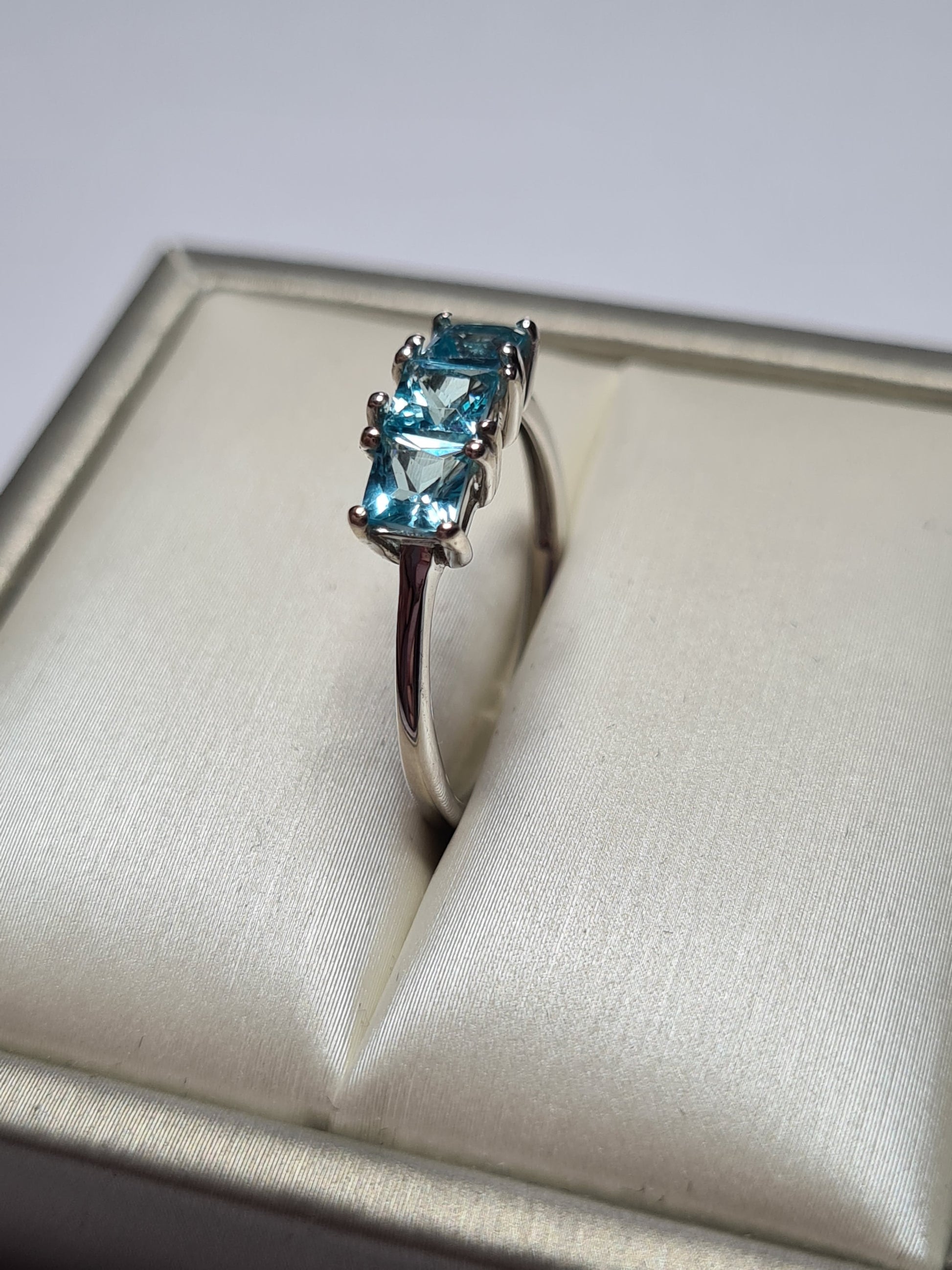 Blue Apatite Trilogy Ring Sterling Silver SIZE Q