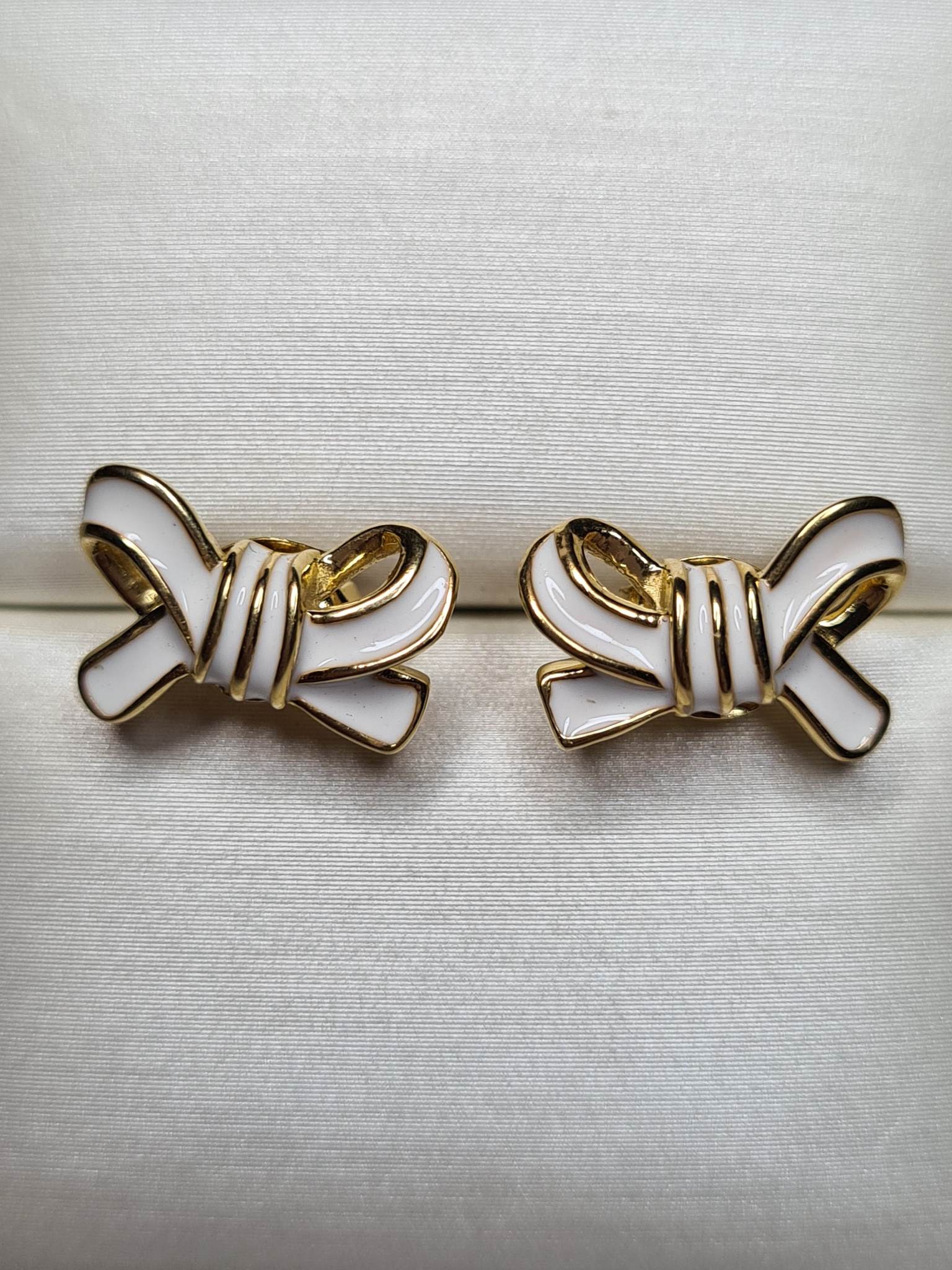 Timeless Bow Design: The bow design, plated in 14K gold and adorned with white enamel, creates a timeless and chic accessory. The attention to detail ensures these earrings resemble real gold, adding a touch of luxury to your ensemble.