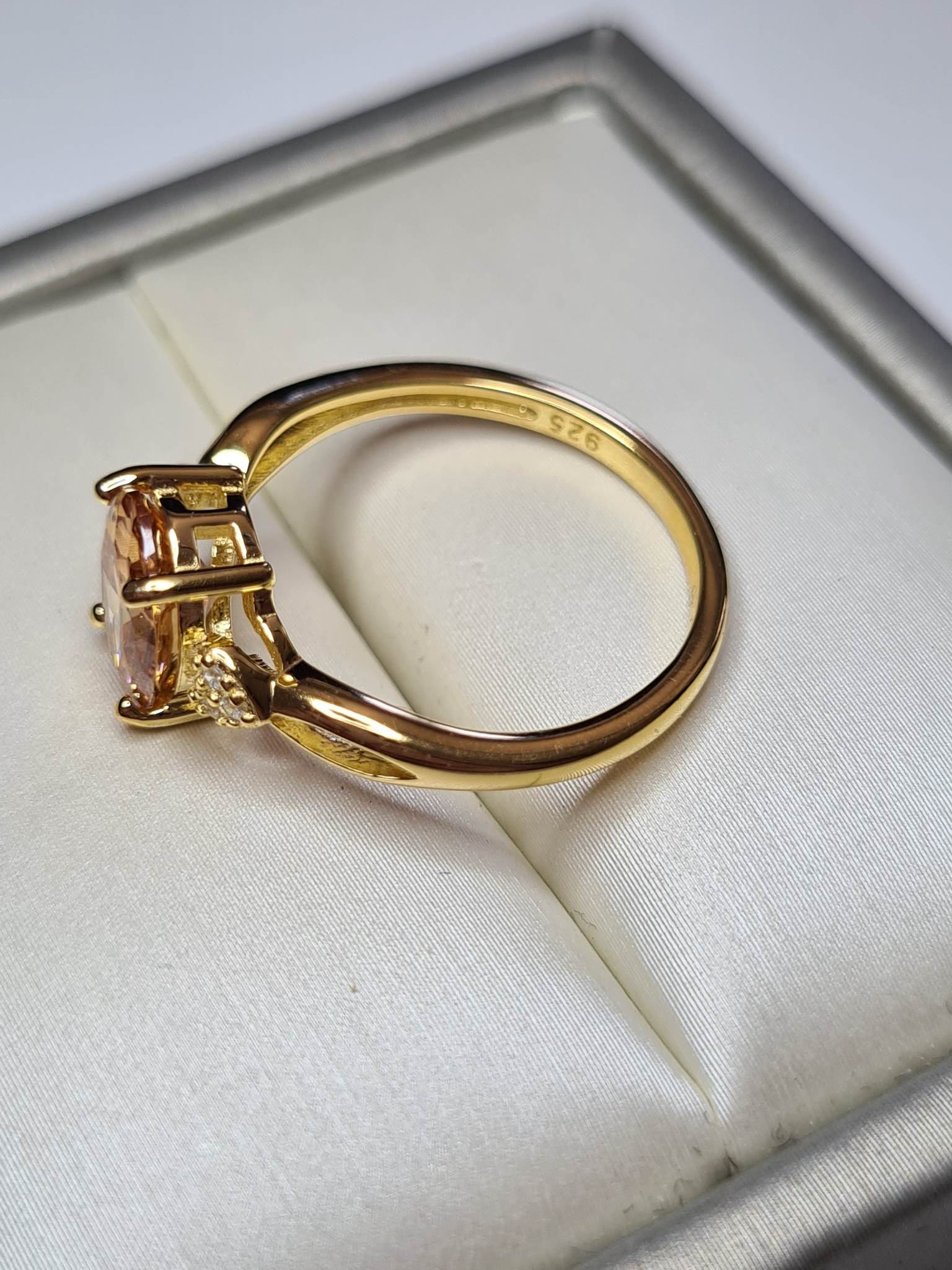 Indulge in the allure of the Champagne and White Simulated Diamond Ring, a masterpiece in 925 Sterling Silver with a captivating gold overlay. The hallmarked solid sterling silver ensures authenticity and lasting brilliance.