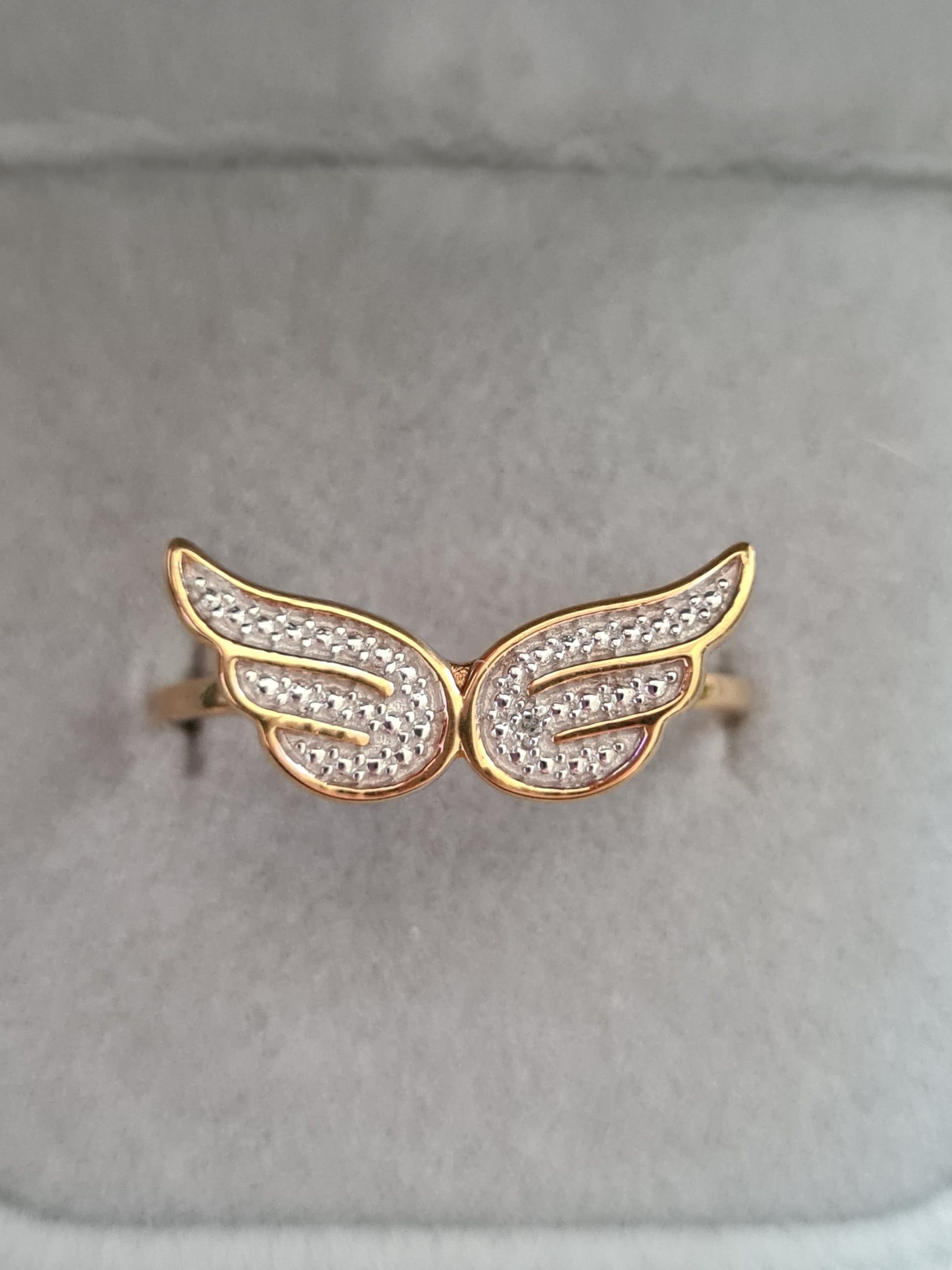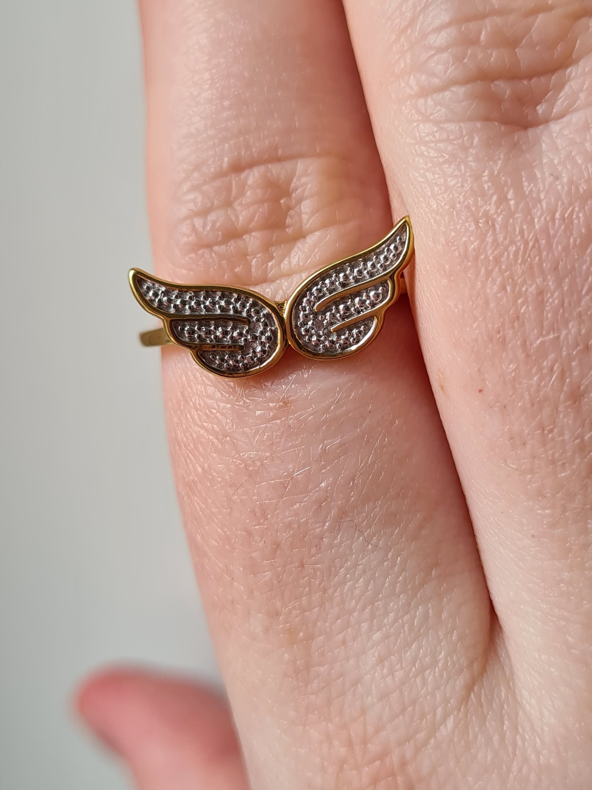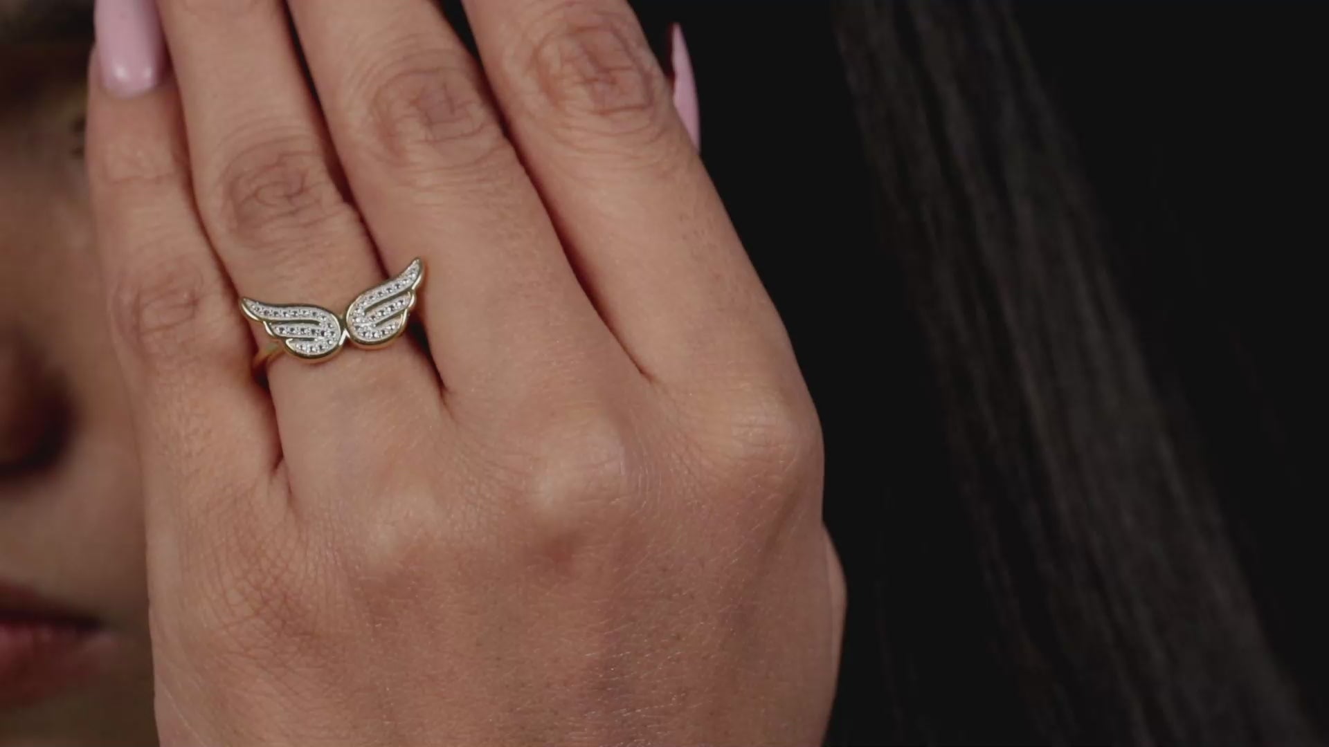 Diamond Angel Wing Ring in 14K Gold Over Sterling Silver SIZE U