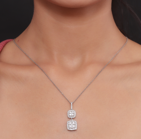 Indulge in the timeless allure of Swarovski Zirconia with our Double Square Droplet Pendant—a captivating blend of elegance and sophistication.