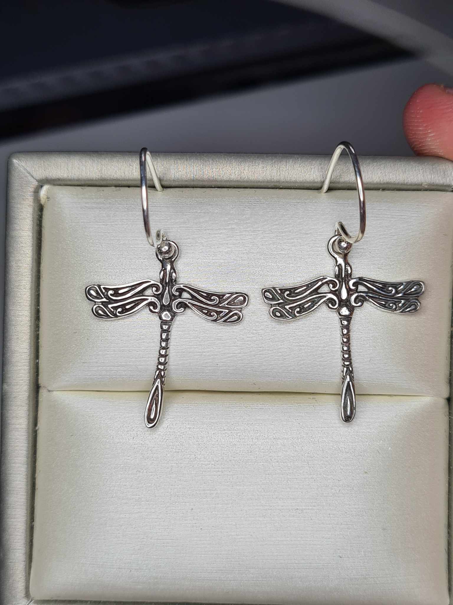 Balinese Tribal Dragonfly Hook Earrings 925 Sterling Silver