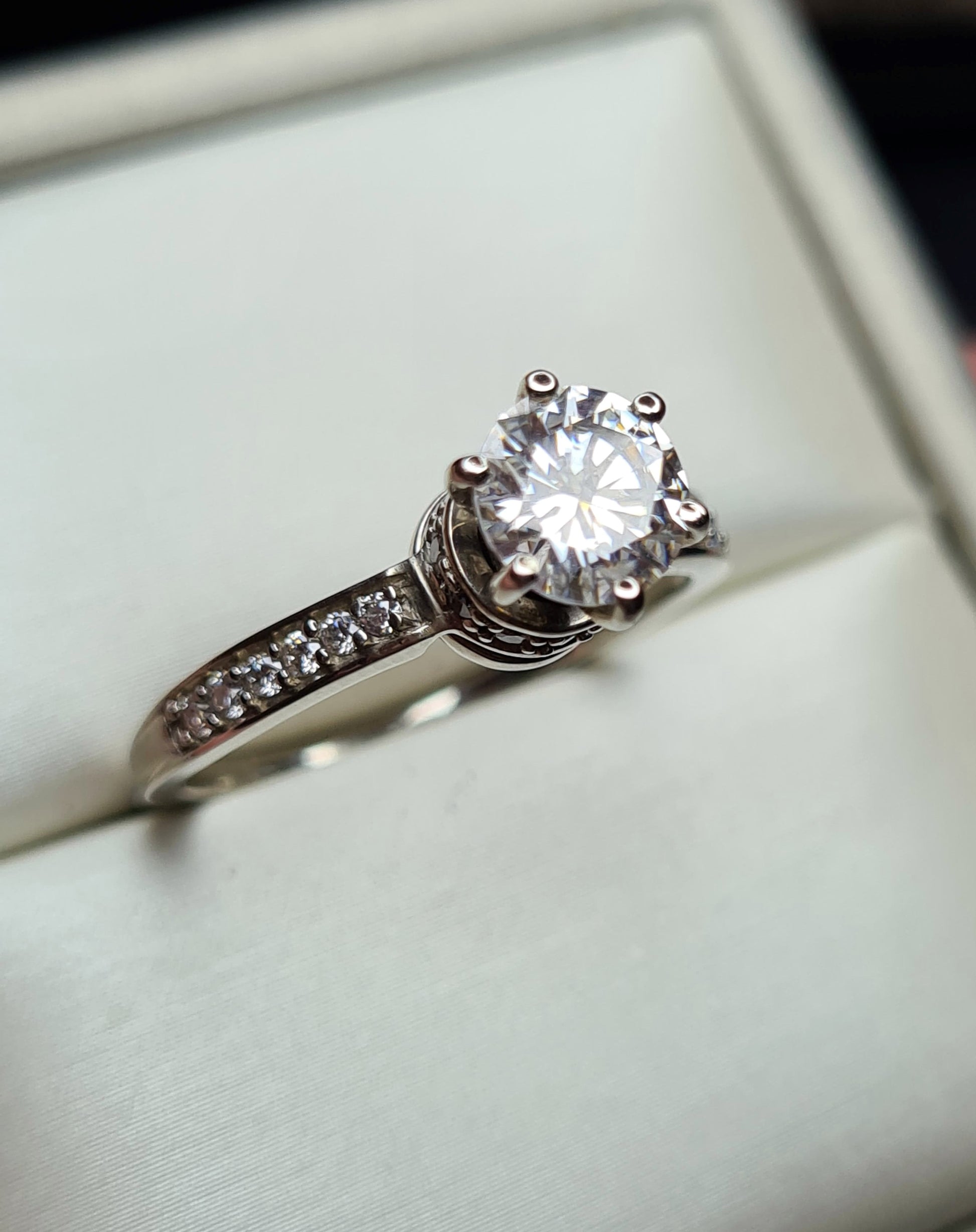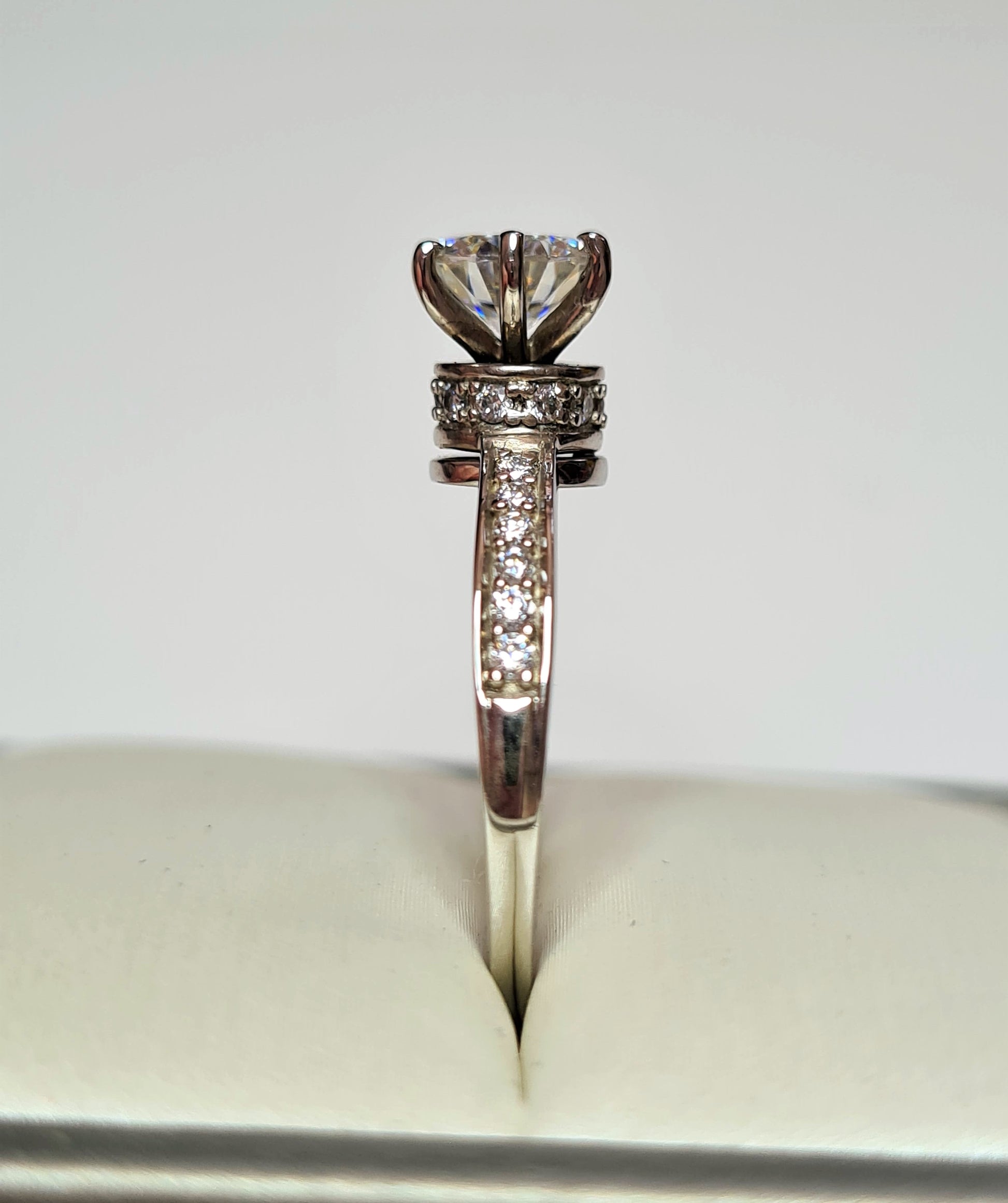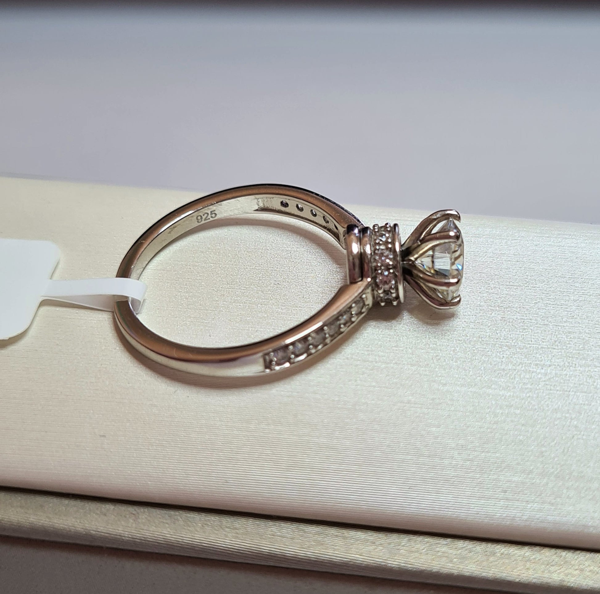 The hallmark 925 on the band attests to the authenticity of the solid sterling silver. The platinum overlay, known for its resistance to oxidation and durability, not only enhances the ring's longevity but also provides a tarnish-resistant quality.