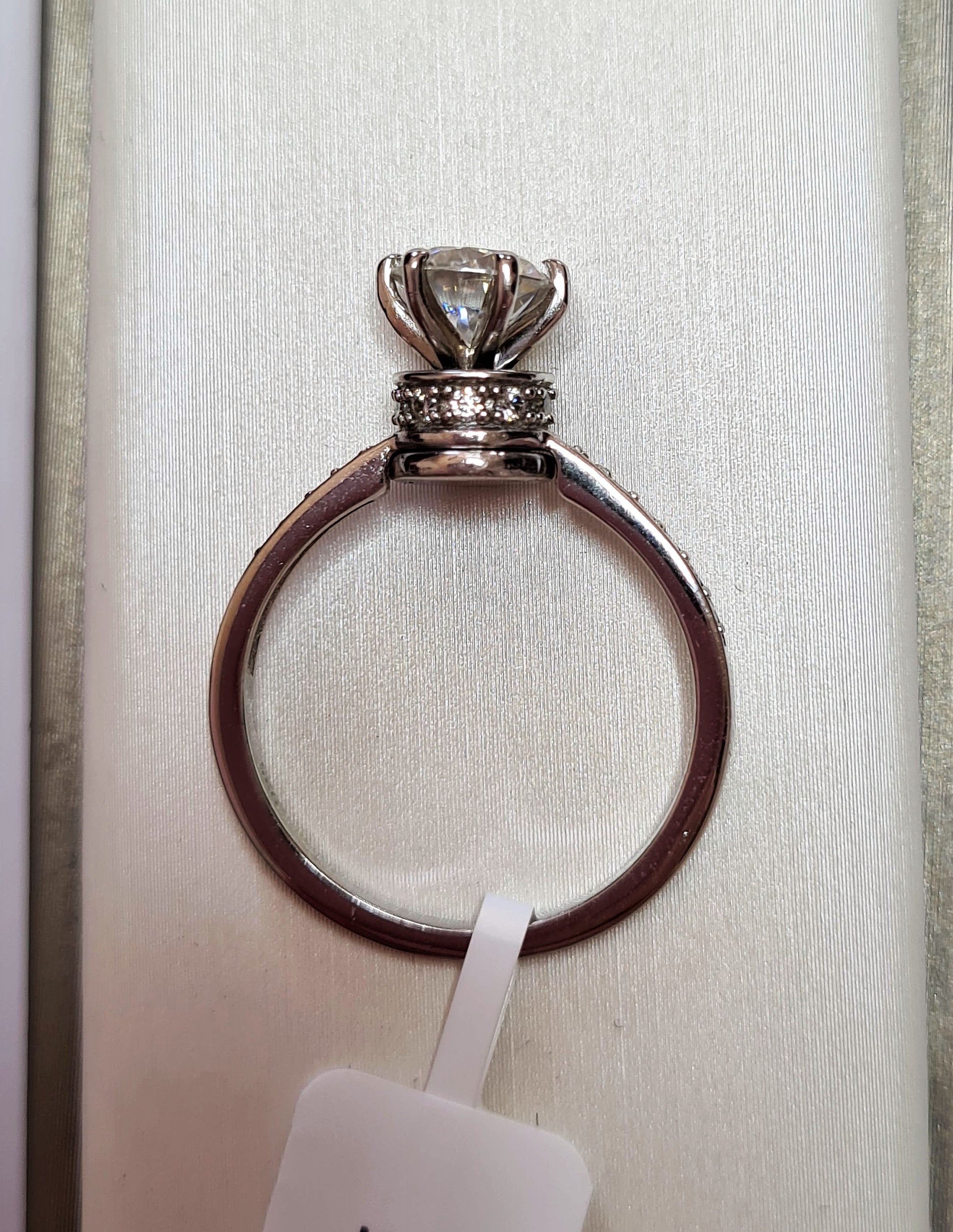 Engagement Halo Spinner Moissanite Ring in Platinum Overlay Sterling Silver SIZES N,O