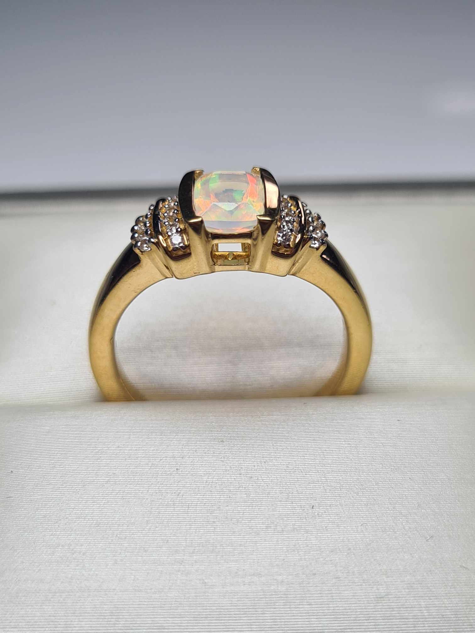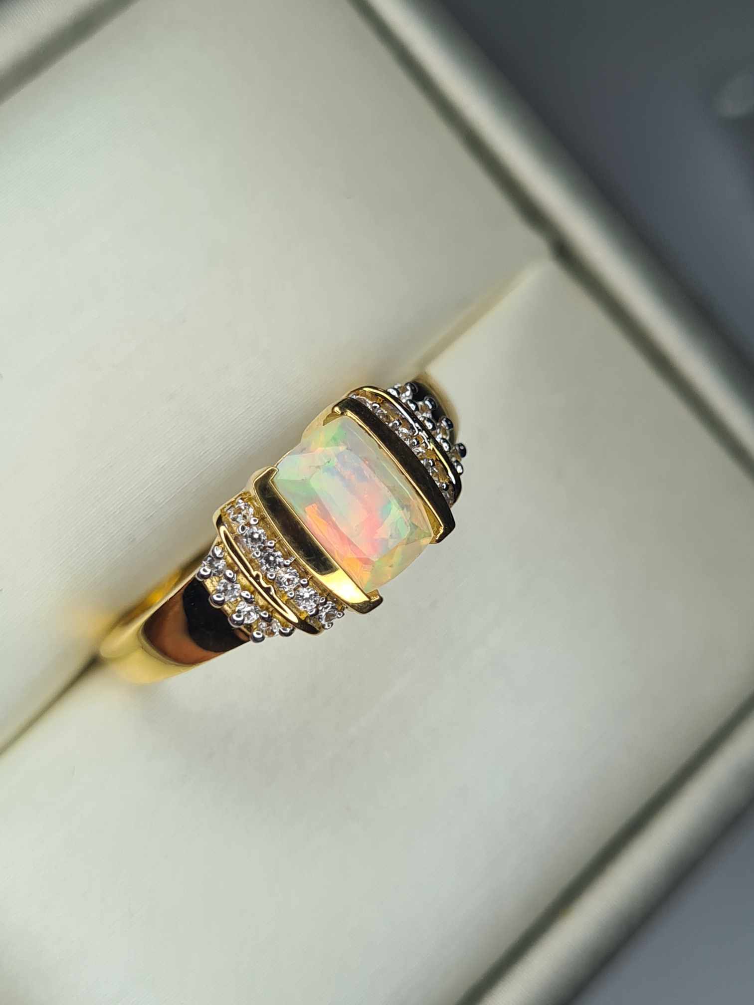 Ethiopian Welo Opal & Natural Zircon Ring in 18K Yellow Gold Overlay 925 Sterling Silver SIZE M
