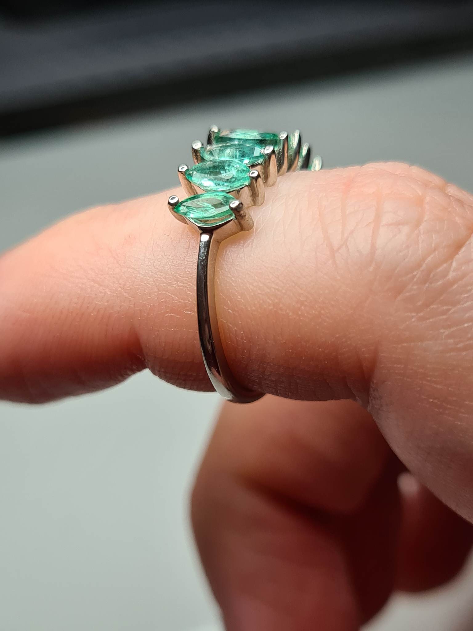 Gemfields Emerald 7 Stone Ring Size K 925 sterling silver