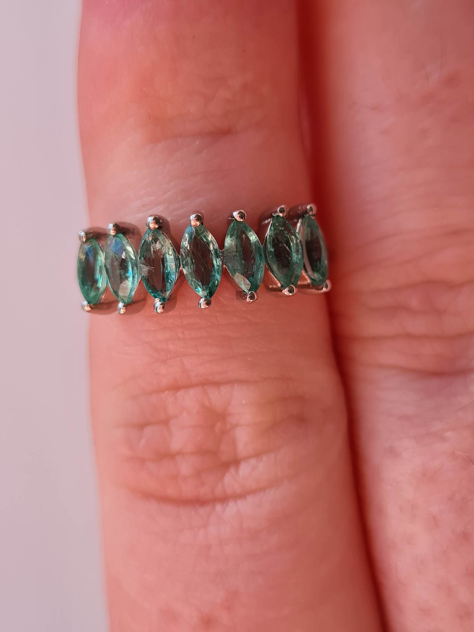 Perfect for daily wear, this ring with its seven Gemfields emeralds radiates a timeless charm. The rich green hue, coupled with the unique marquise cut, adds a touch of sophistication to any occasion.