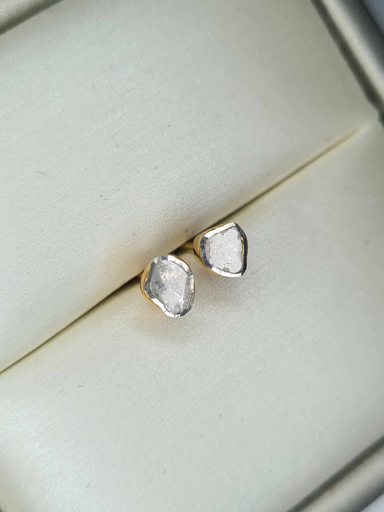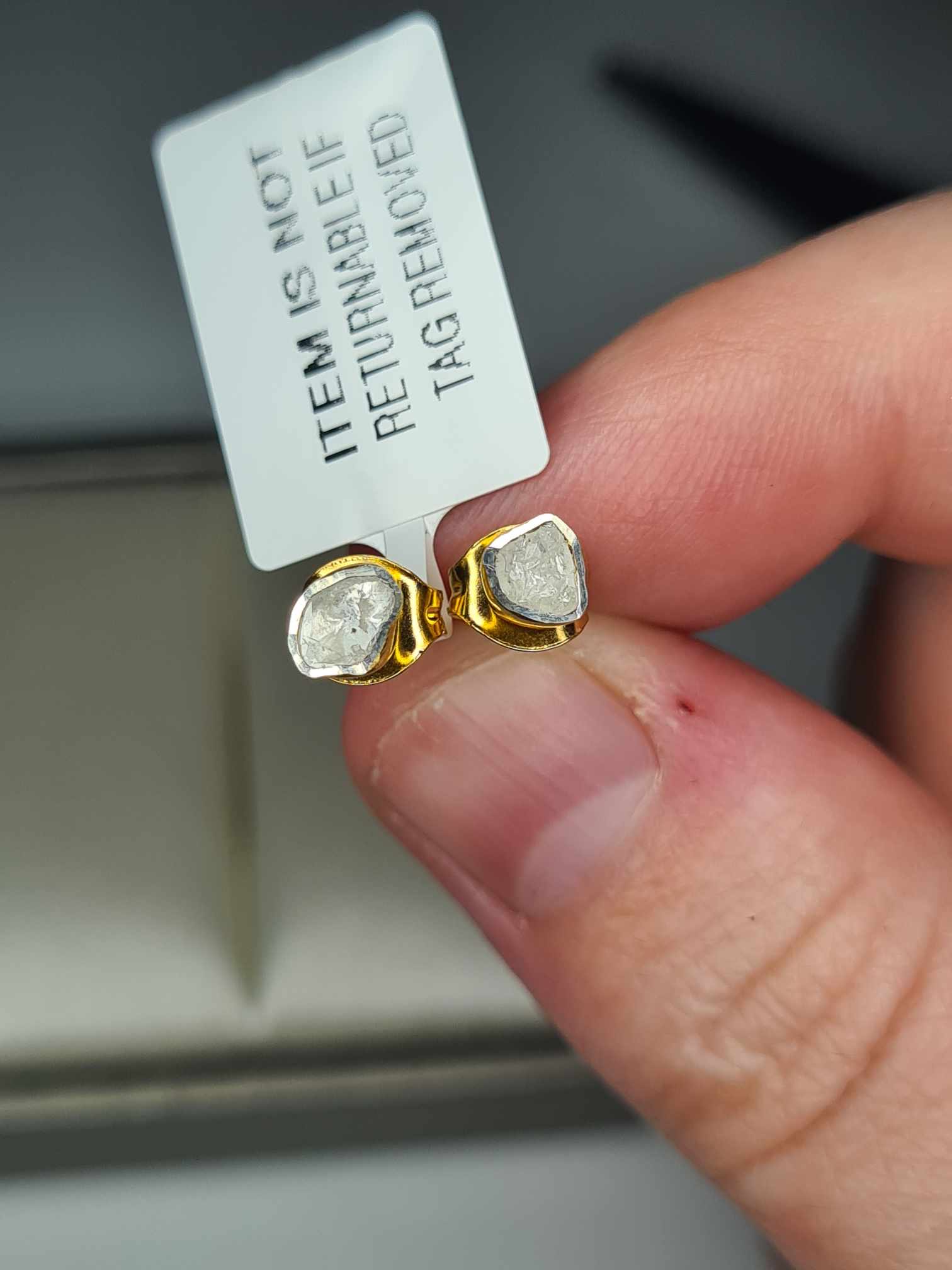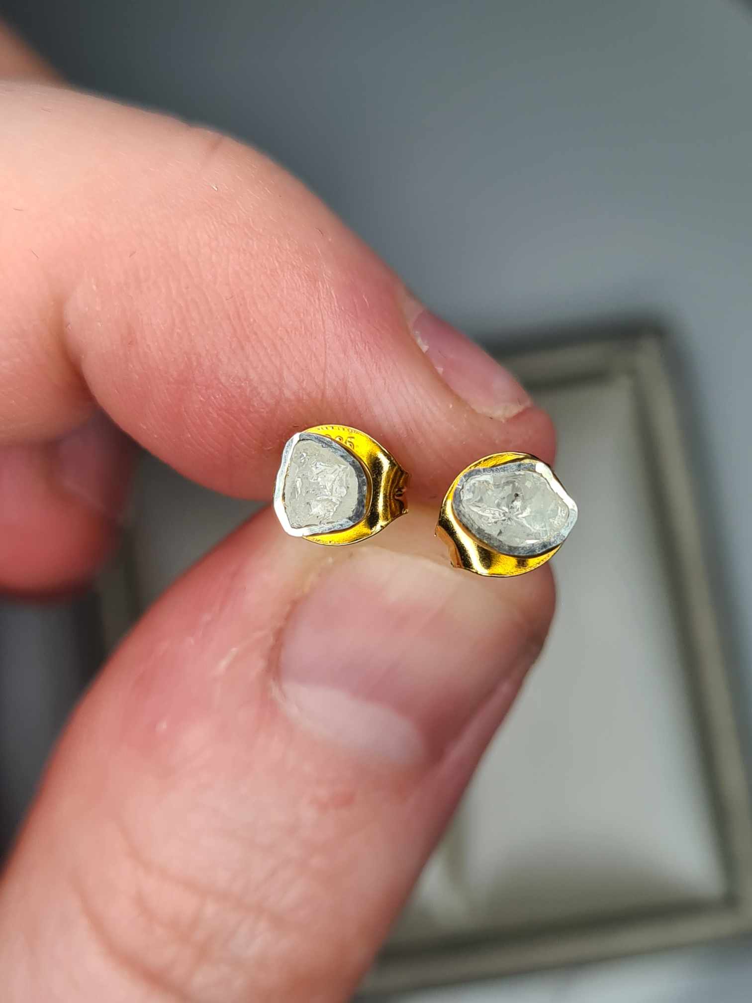 Hand Made Polki Diamond Stud Earrings 18k Gold Overlay 925 Sterling Silver