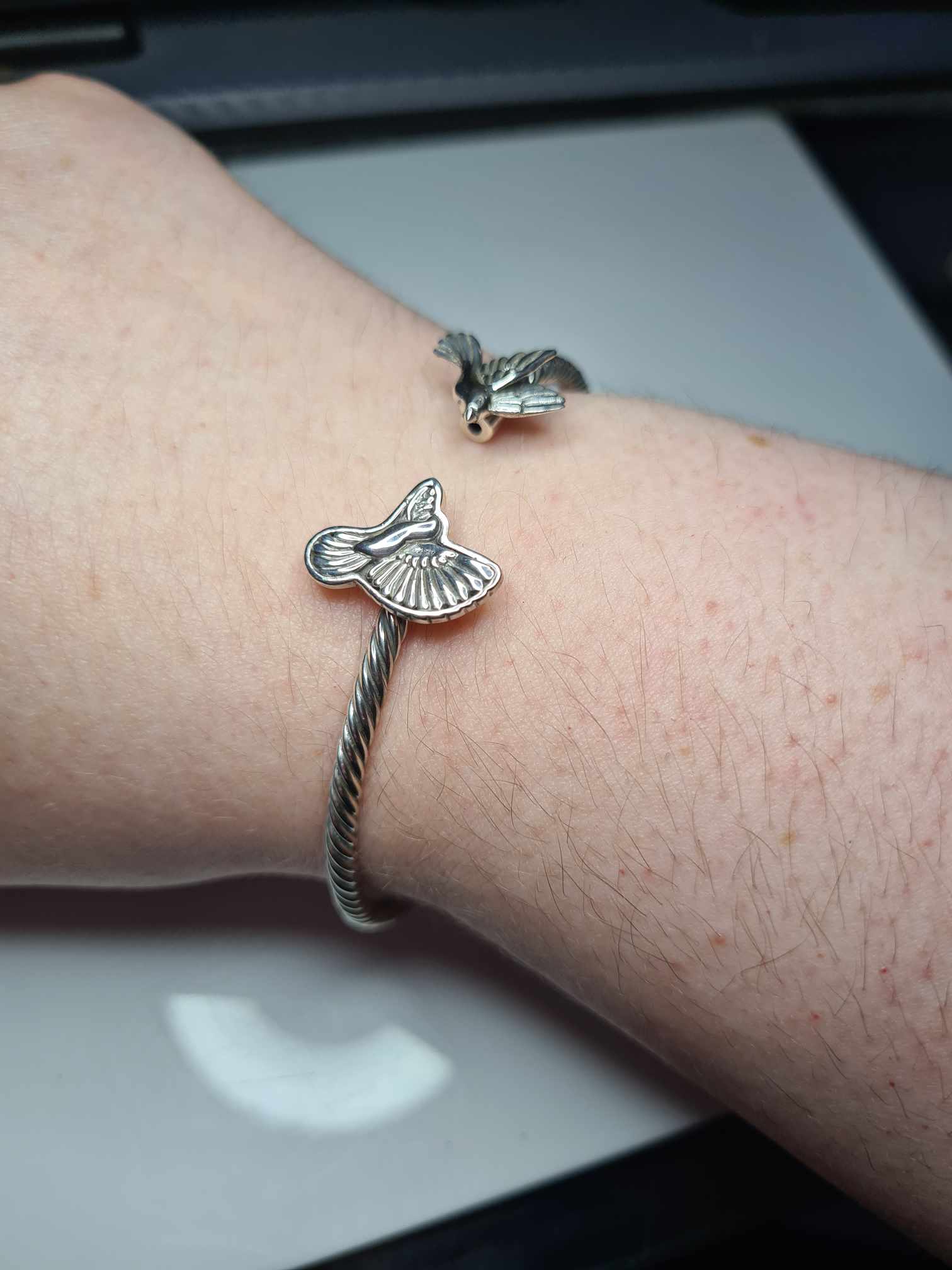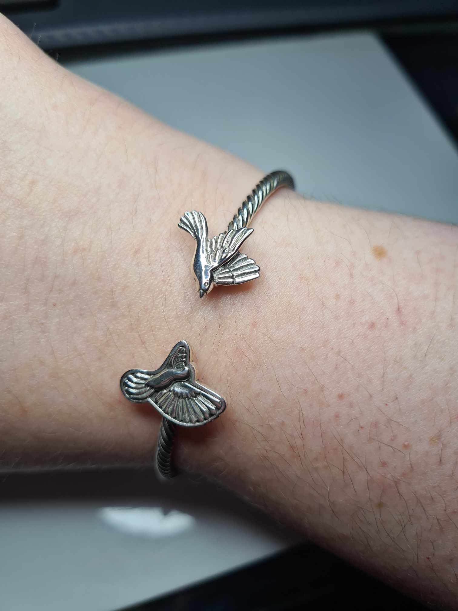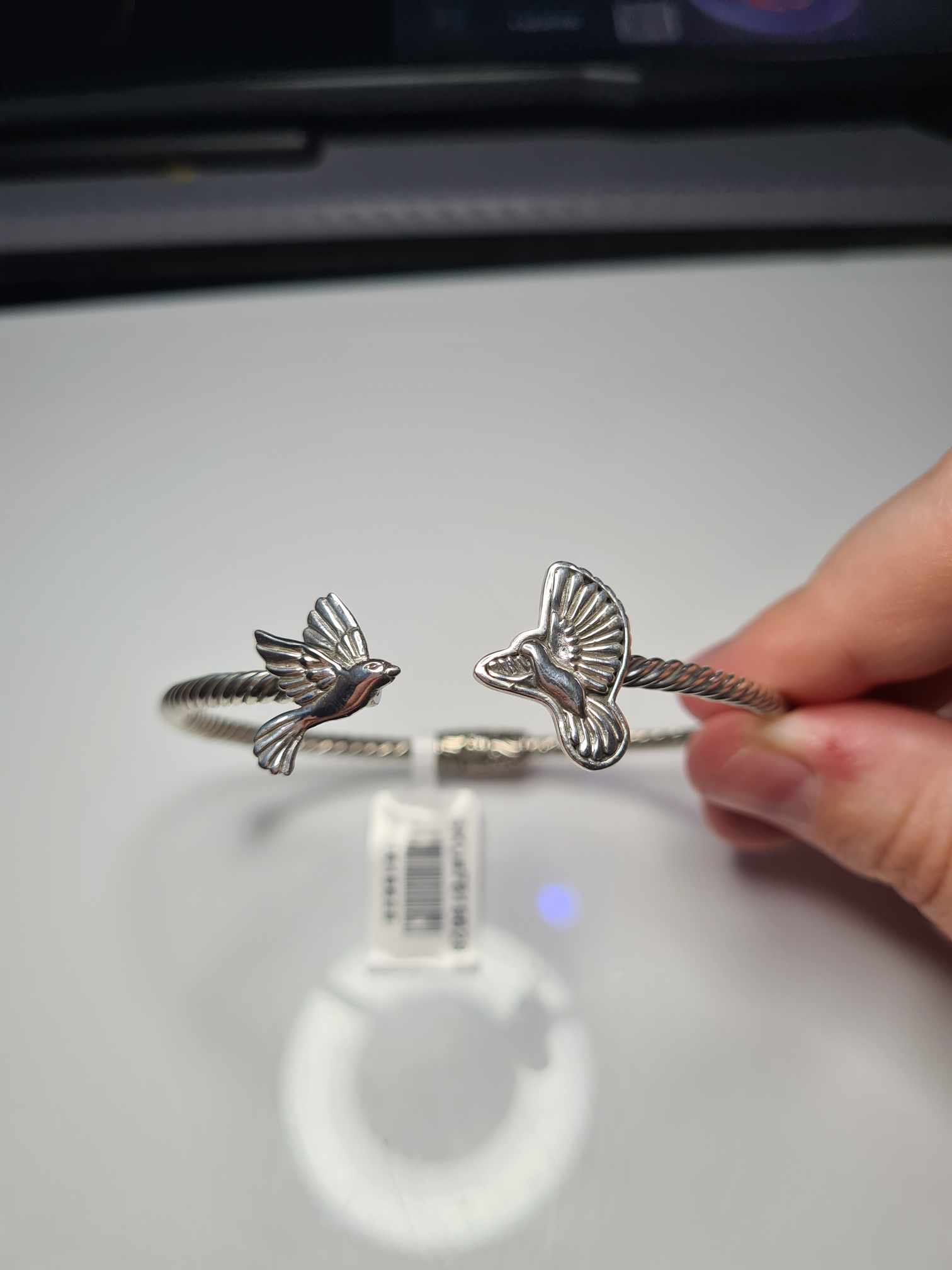 Hand Made Sterling Silver Bird Cuff Bangle Size 7.5inch