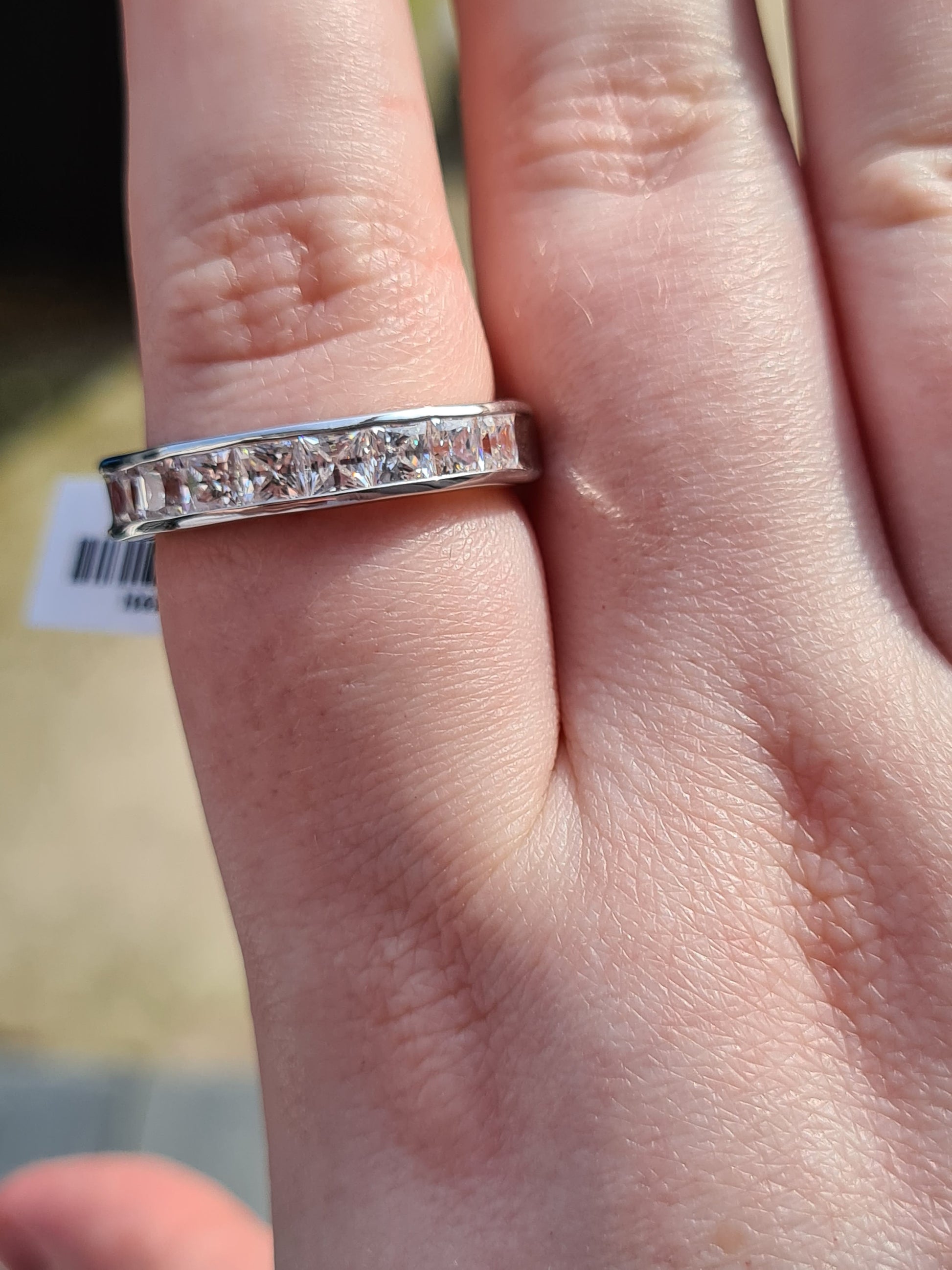 Timeless Design: The half eternity band ring features a row of glistening princess-cut Swarovski Zirconia, creating a design that mimics the look of a brand new diamond ring. This timeless and elegant design is perfect for daily wear or as a wedding band.