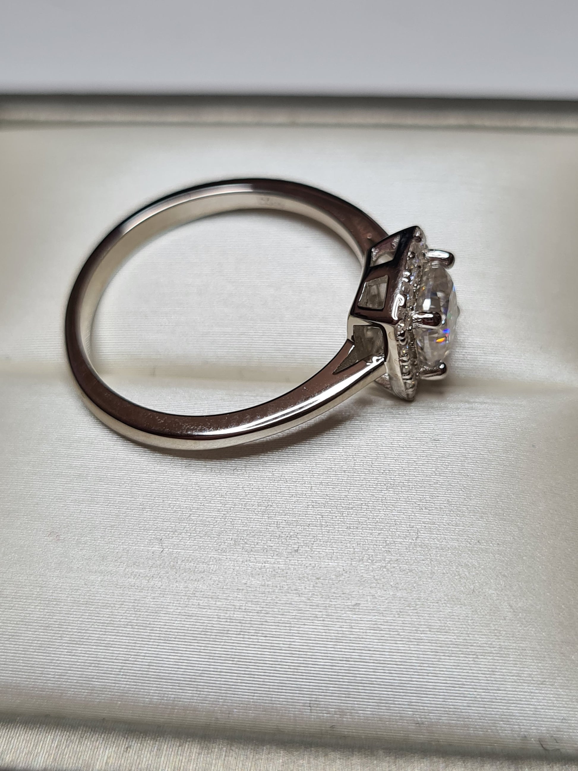 Moissanite Cushion Cut Halo Ring 925 Sterling Silver SIZES L, S