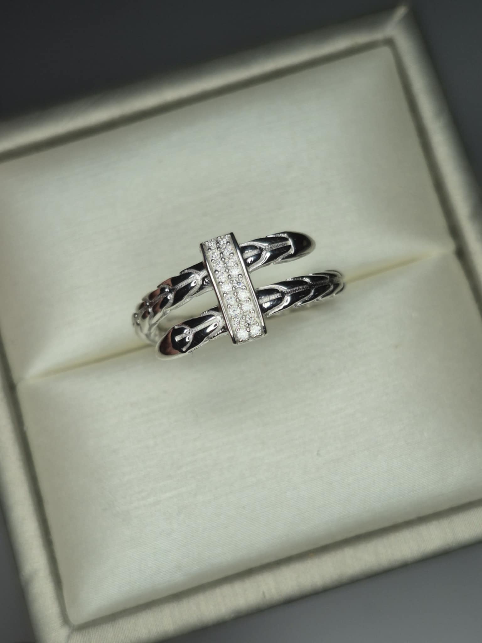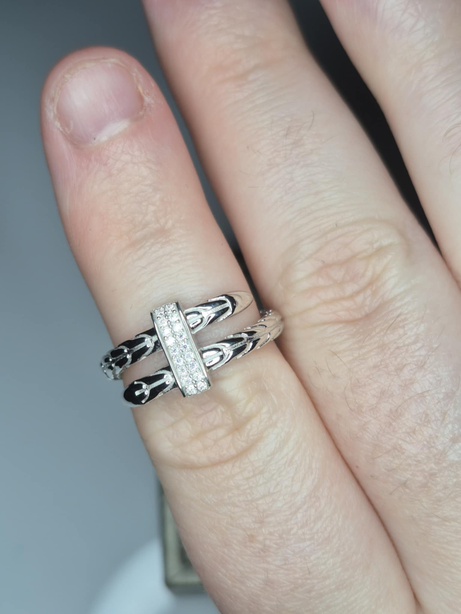Moissanite Serpent Ring in Rhodium Overlay 925 Sterling Silver