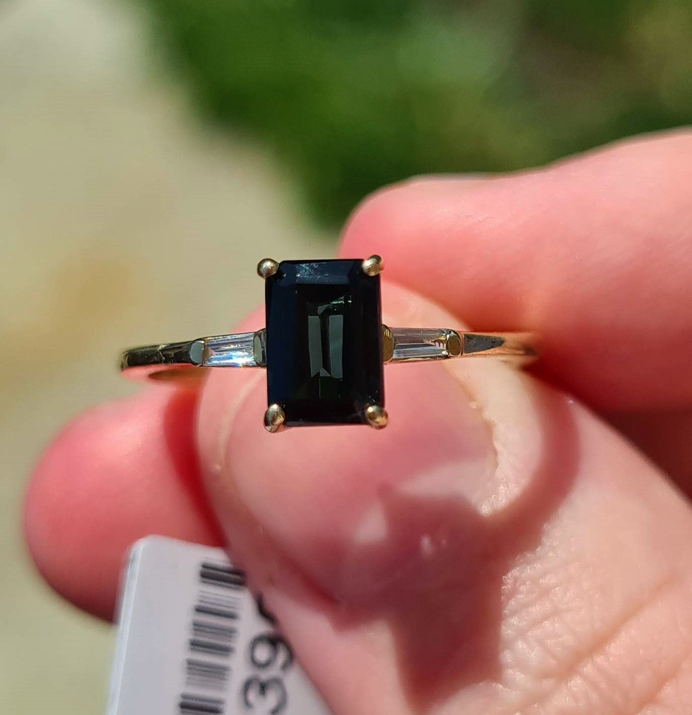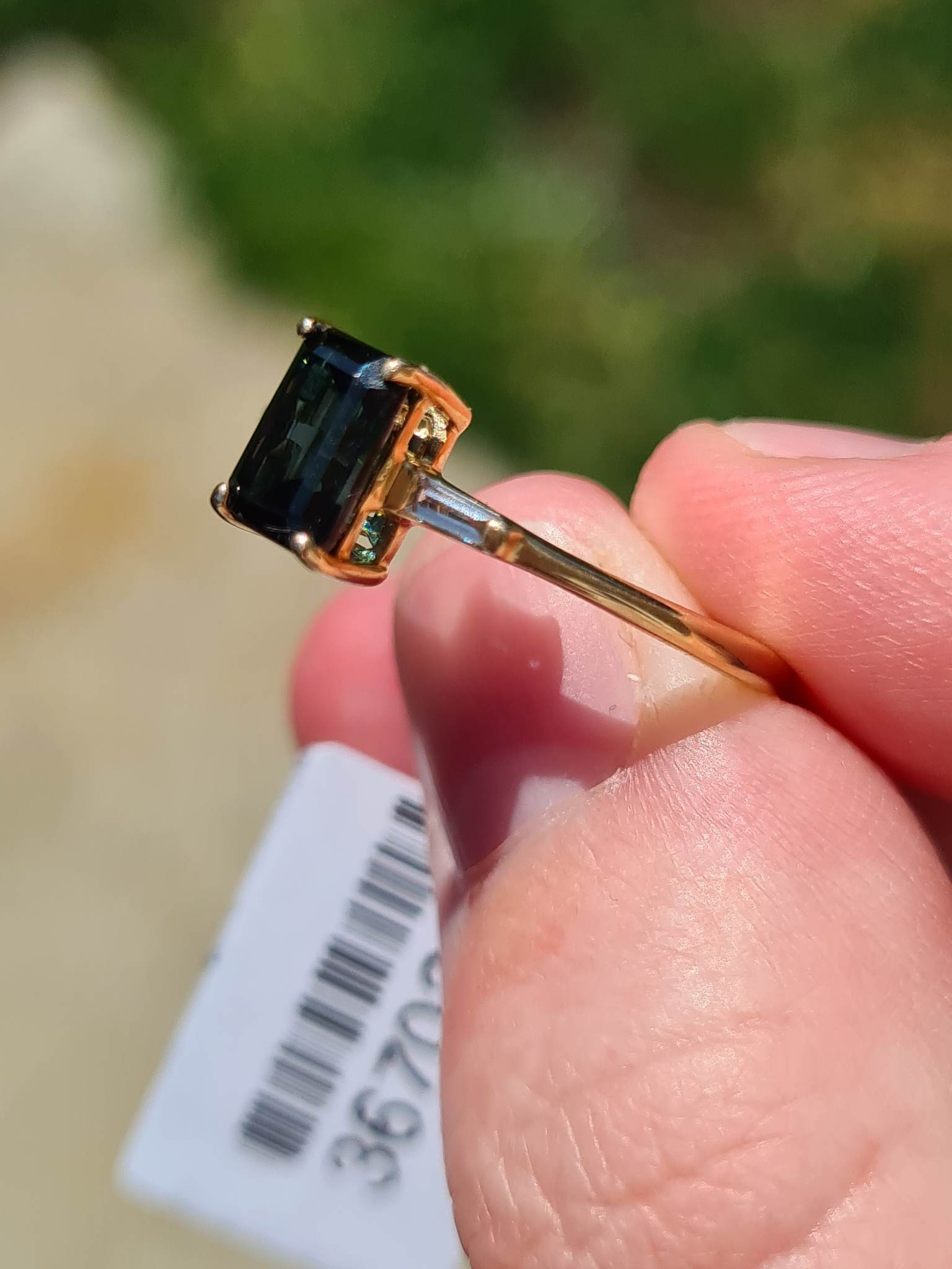 Inclusions: Indulge in luxury with our Monte Belo Indicolite and Diamond Baguette Ring, complemented by a ring box and a polishing cloth. These rare gemstones make this ring a true collector's item, allowing you to embrace sophistication and style.
