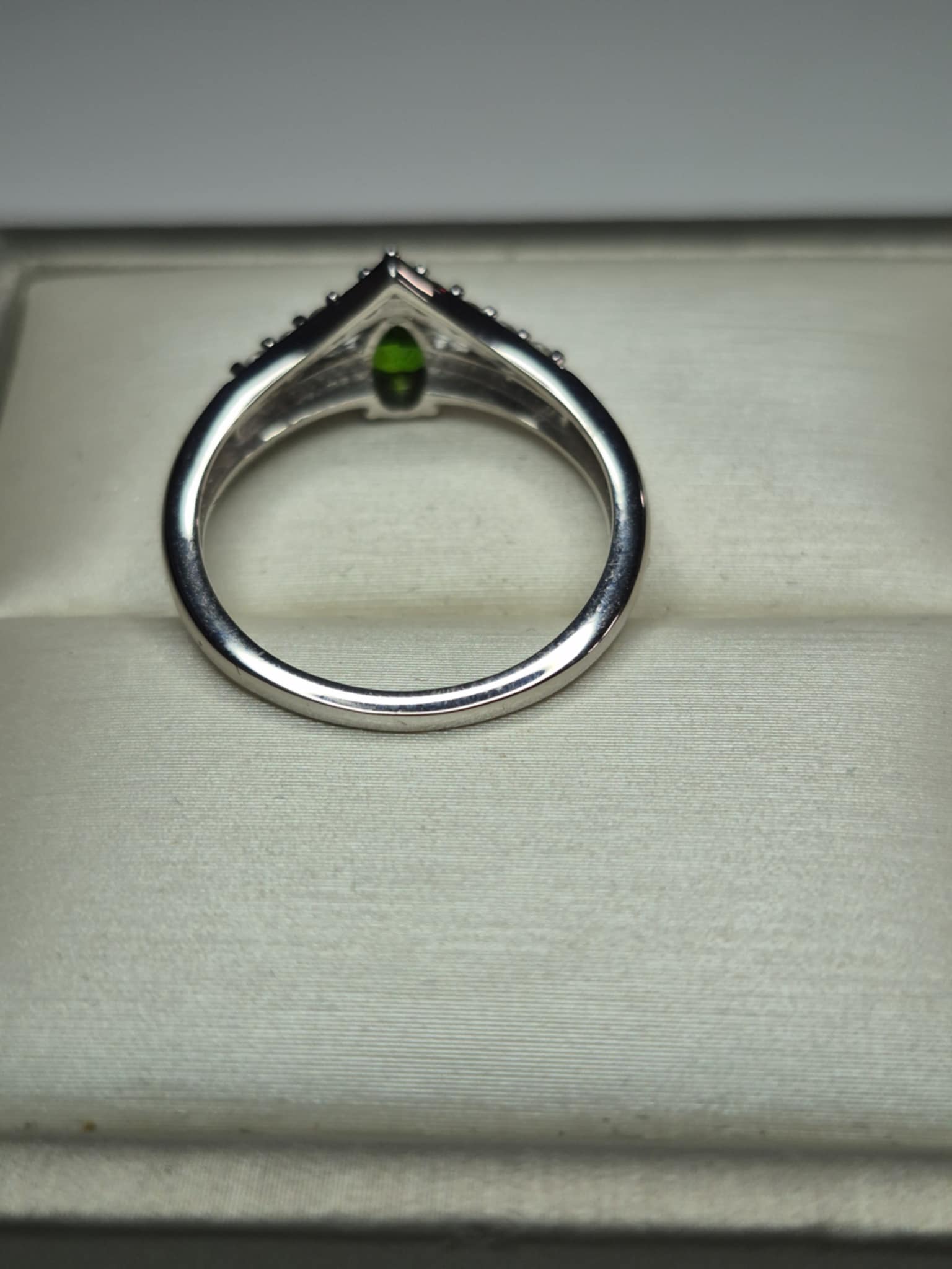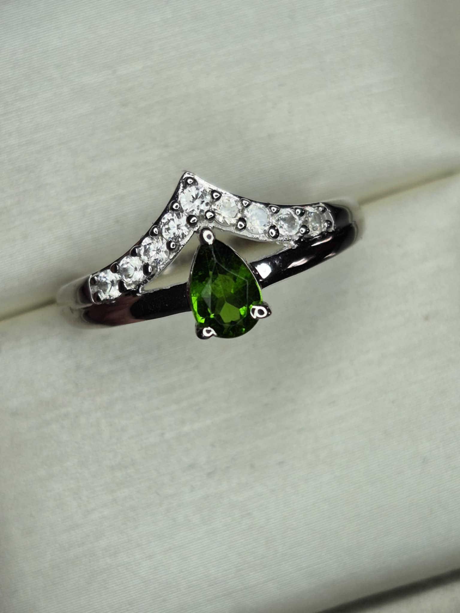 Natural Russian Diopside, Natural White Zircon Crown Ring in Rhodium Overlay 925 Sterling Silver SIZE N