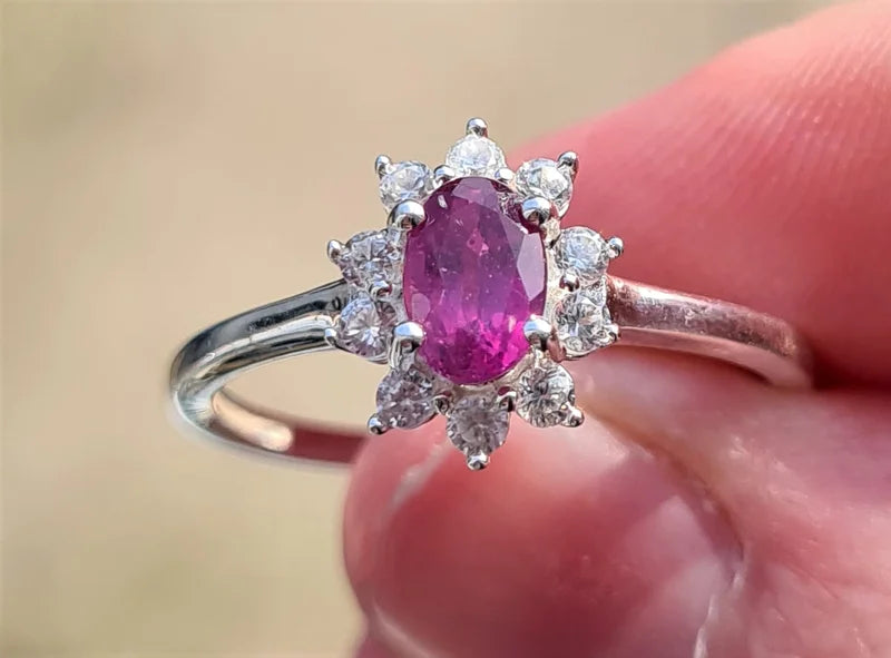 Indulge in the exquisite allure of our Orissa Rose Garnet and Natural Cambodian Zircon Ring—a captivating piece crafted in hallmarked 925 sterling silver. This ring, featuring an Orissa Rose Garnet oval and surrounding natural Cambodian Zircons, is a timeless beauty designed for sophisticated and refined elegance.