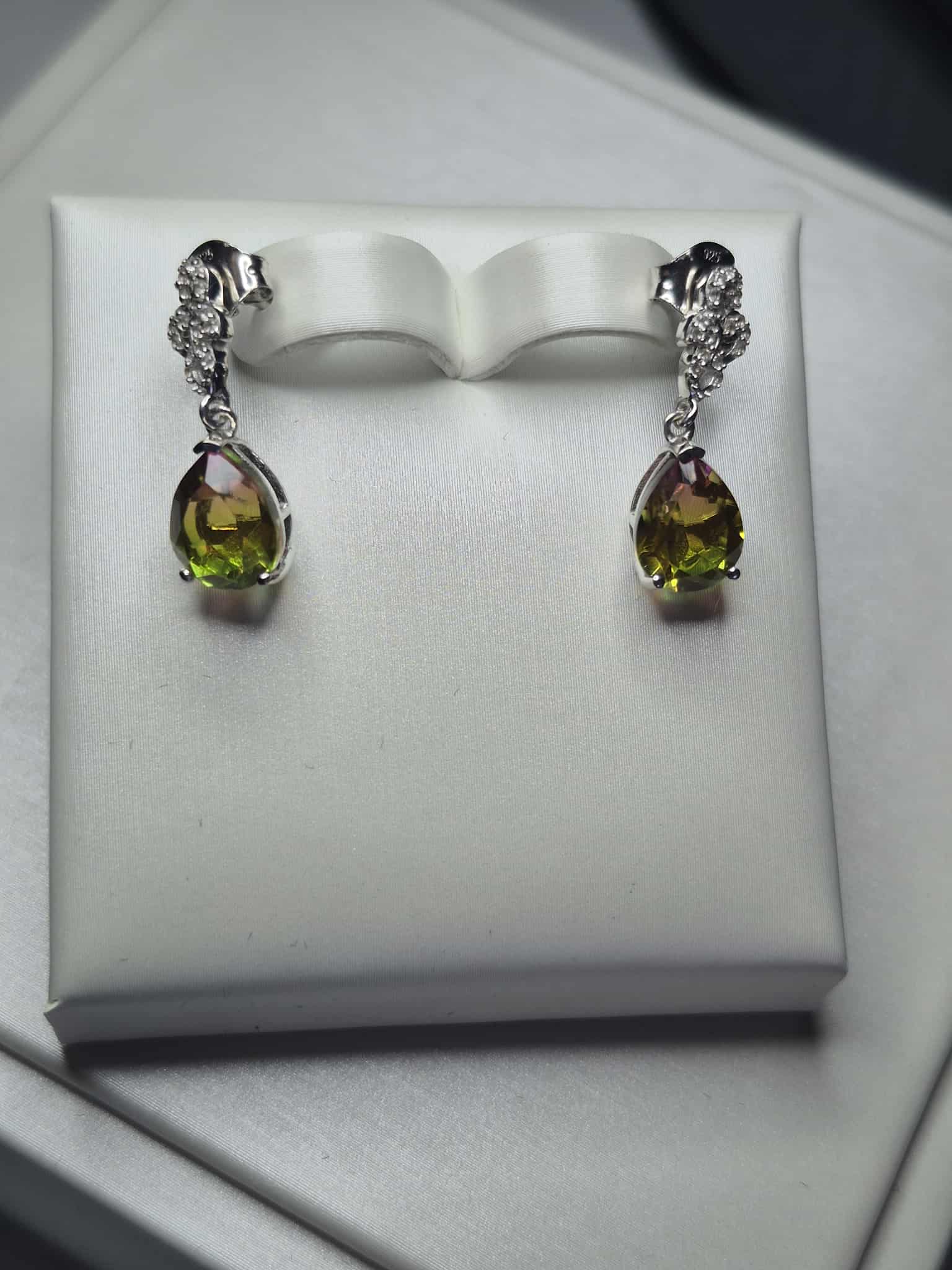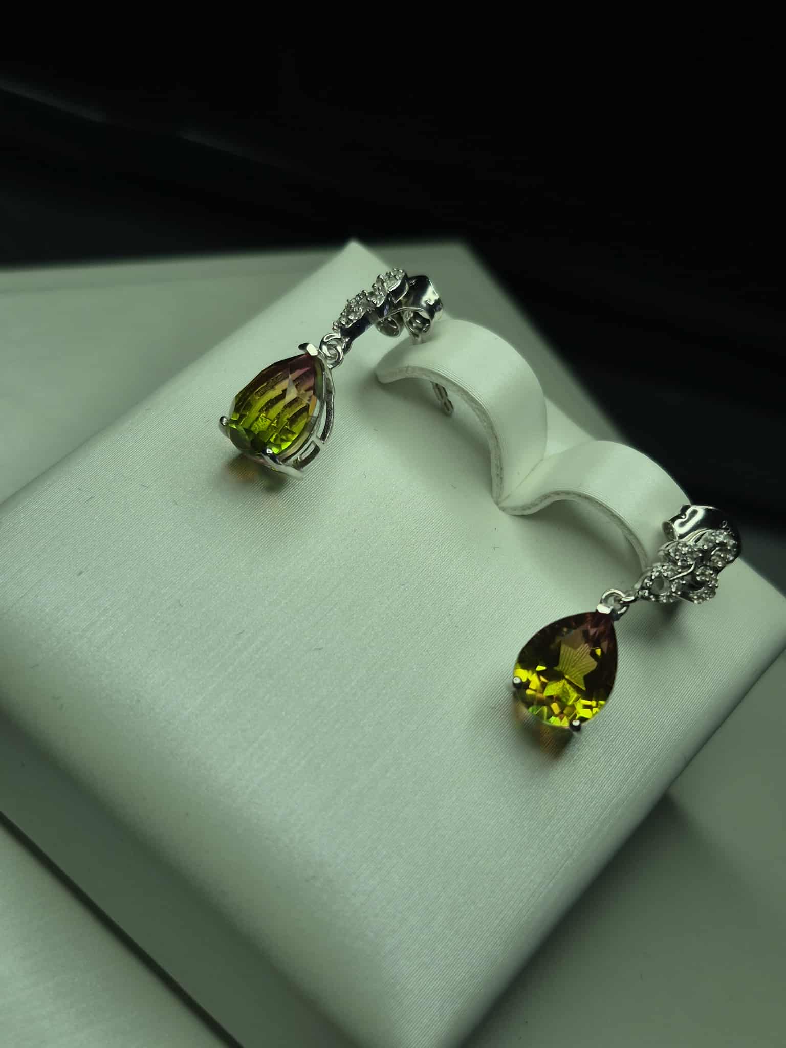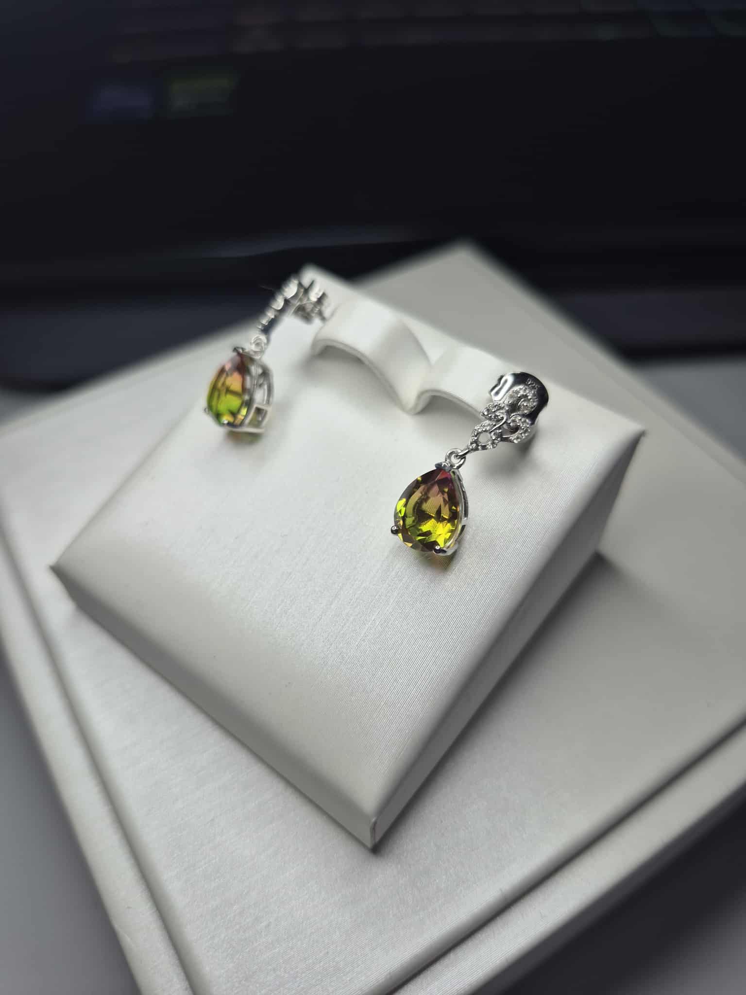 Rainbow Genesis Quartz, White Zircon Dangle Earrings in 925 Sterling Silver
