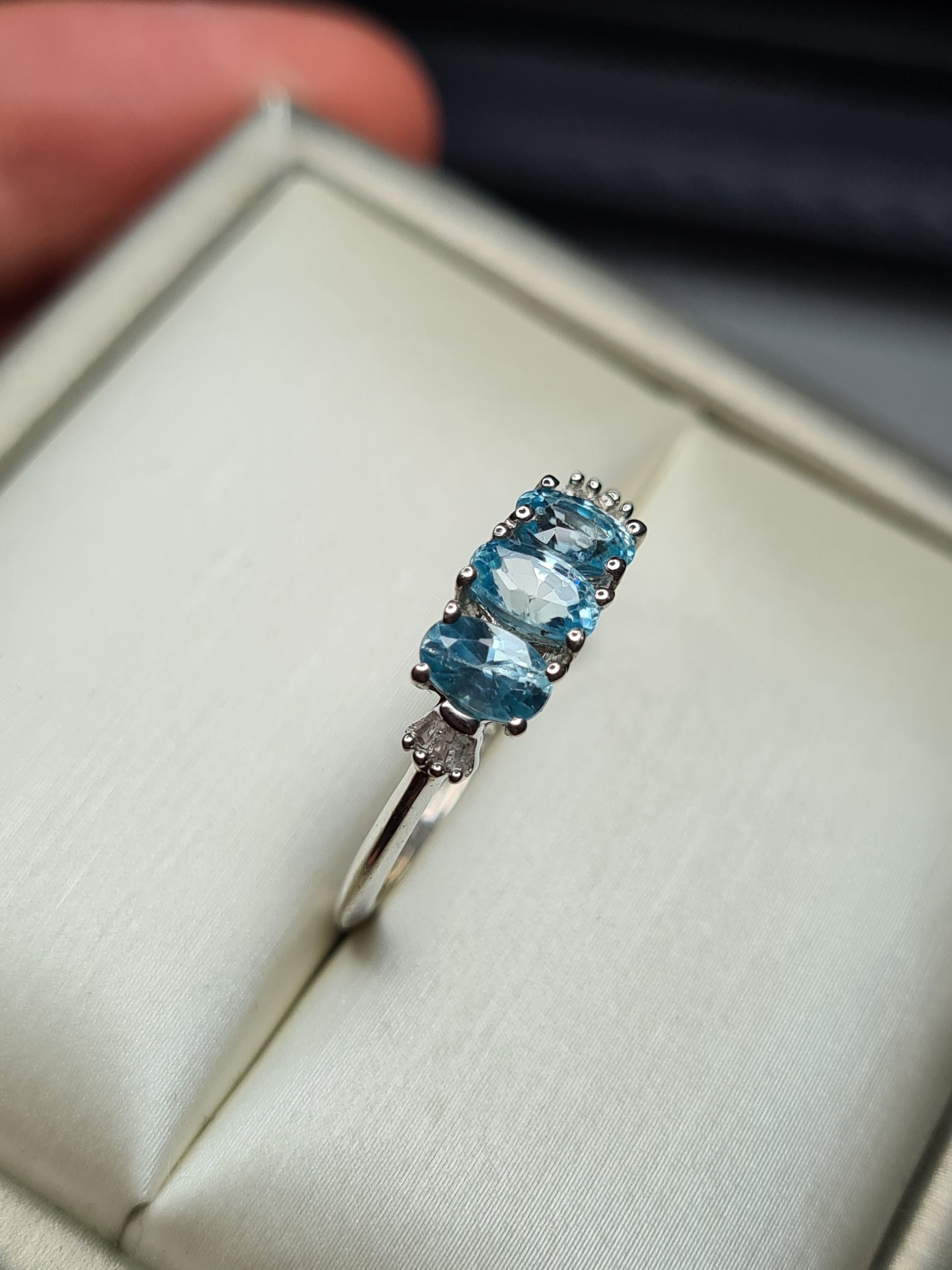 Ratanakiri Blue Zircon and Natural Diamond Ring 925 Sterling Silver SIZES L ,N, P