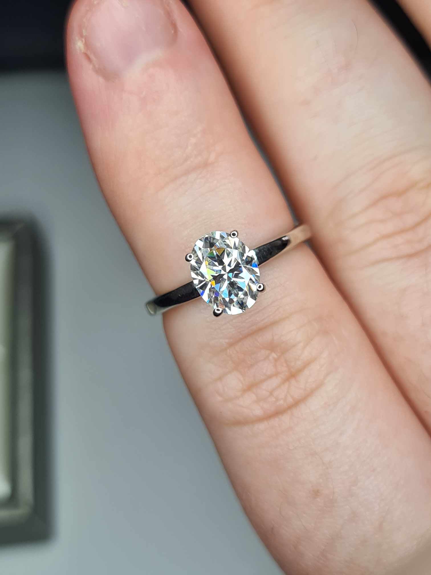 The solitaire ring features a Moissanite oval (8x6mm) of 1.15 Carat, while the wishbone ring has four round and 3 marquise moissanites.