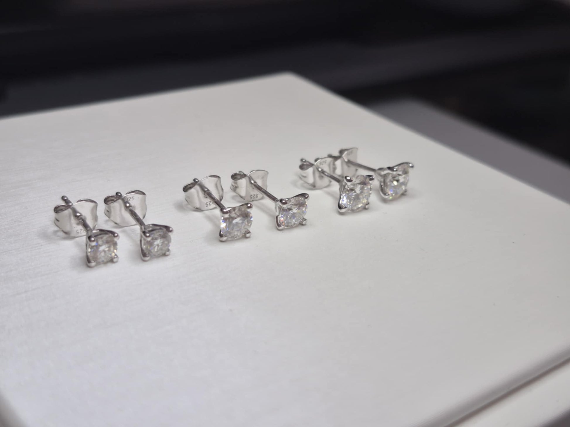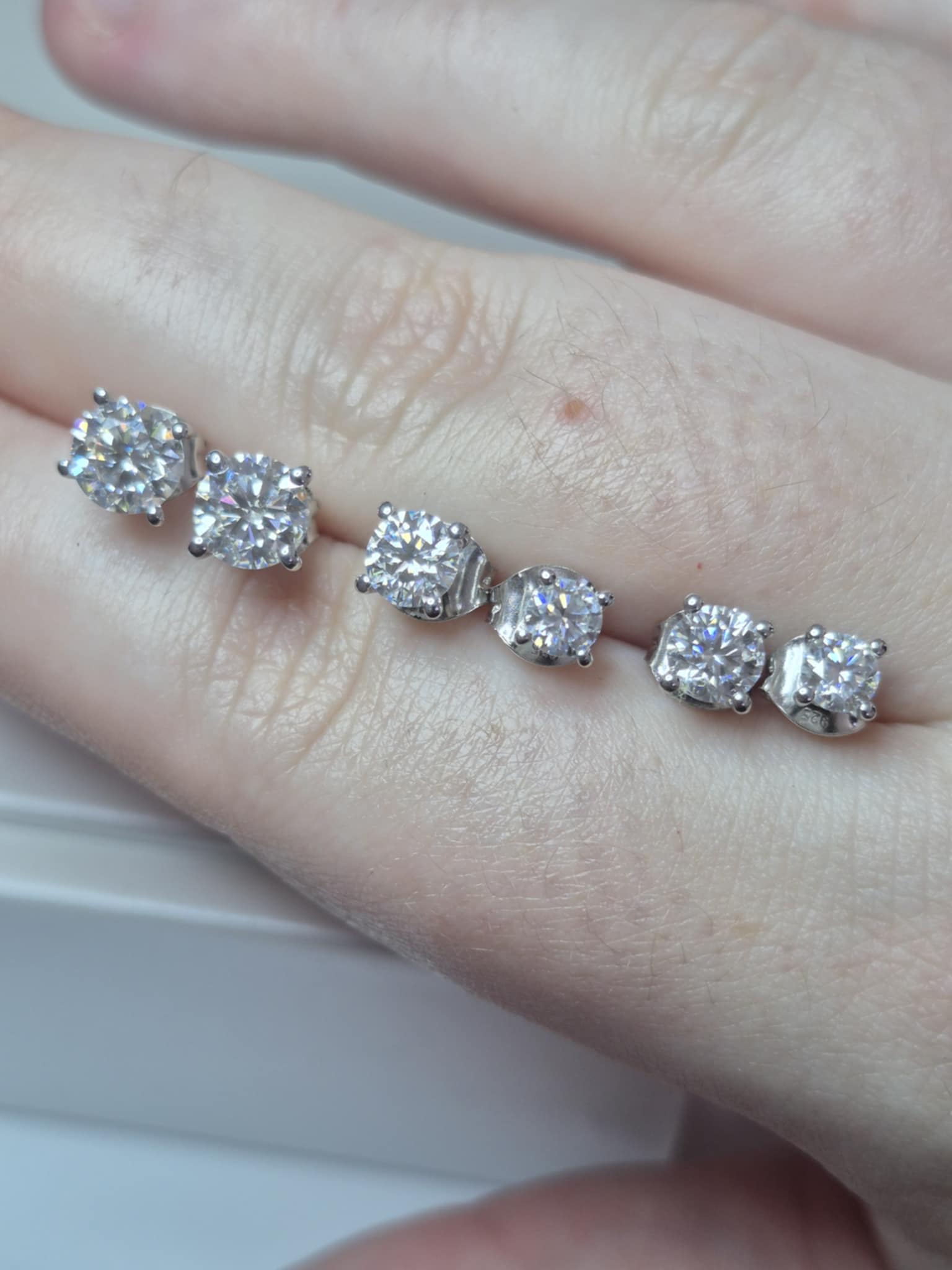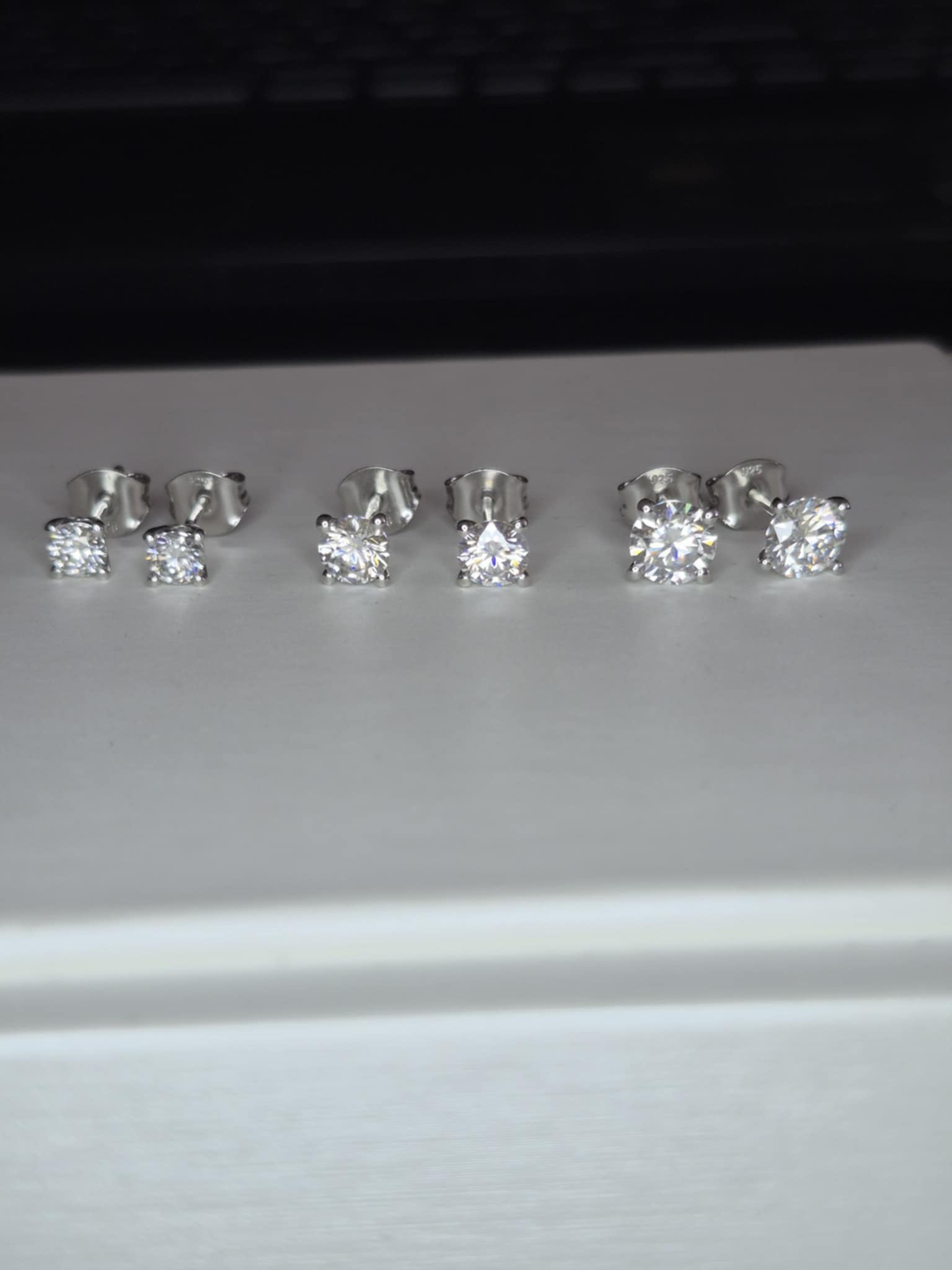 Set of 3 Moissanite Solitaire Stud Earrings 925 Sterling Silver 2.17 Ct.