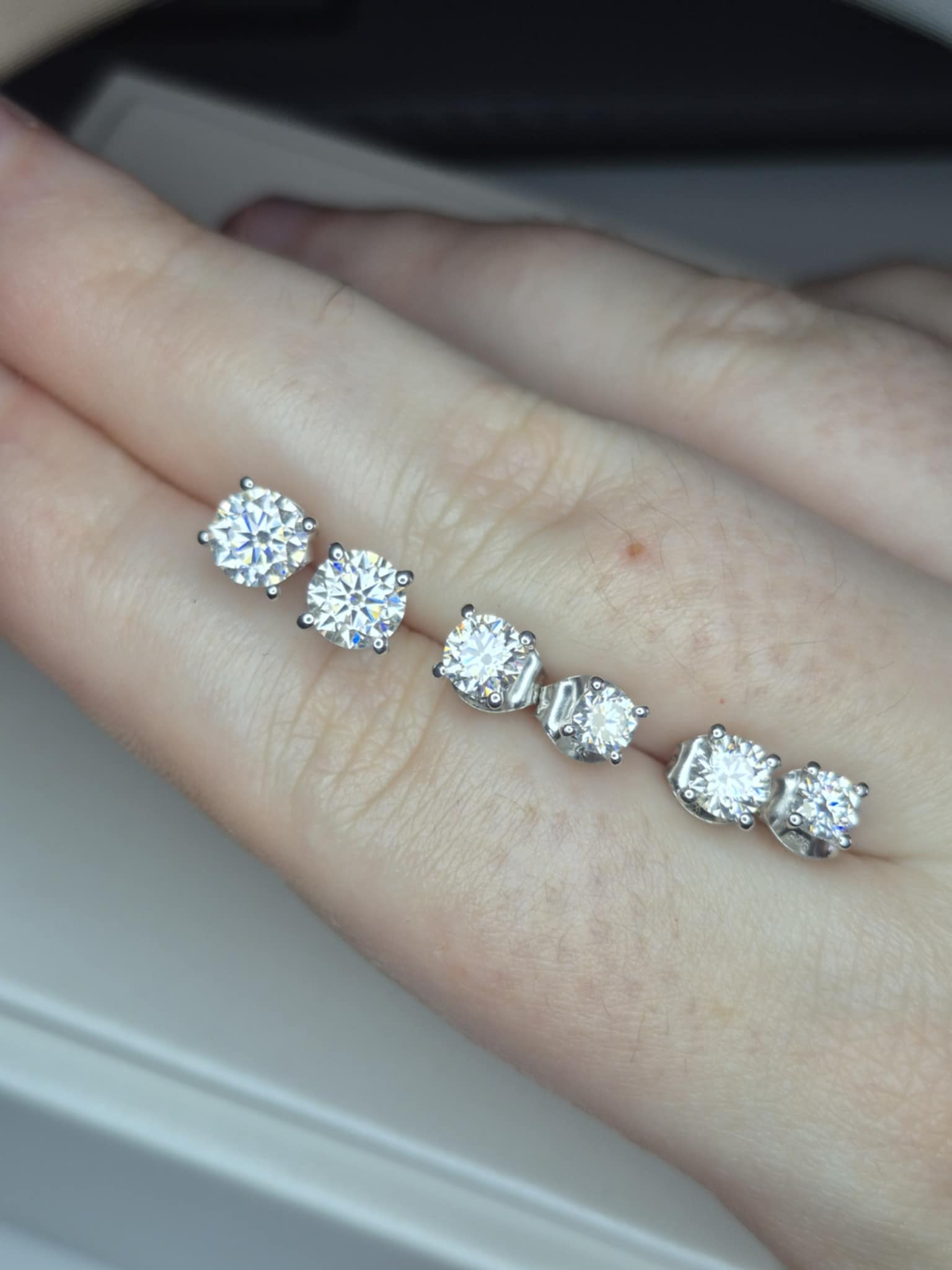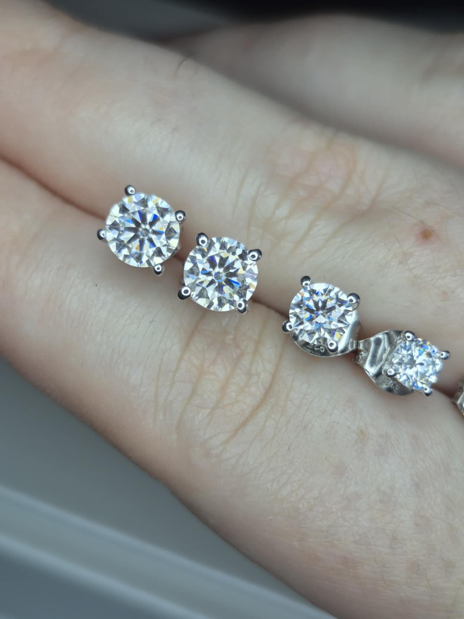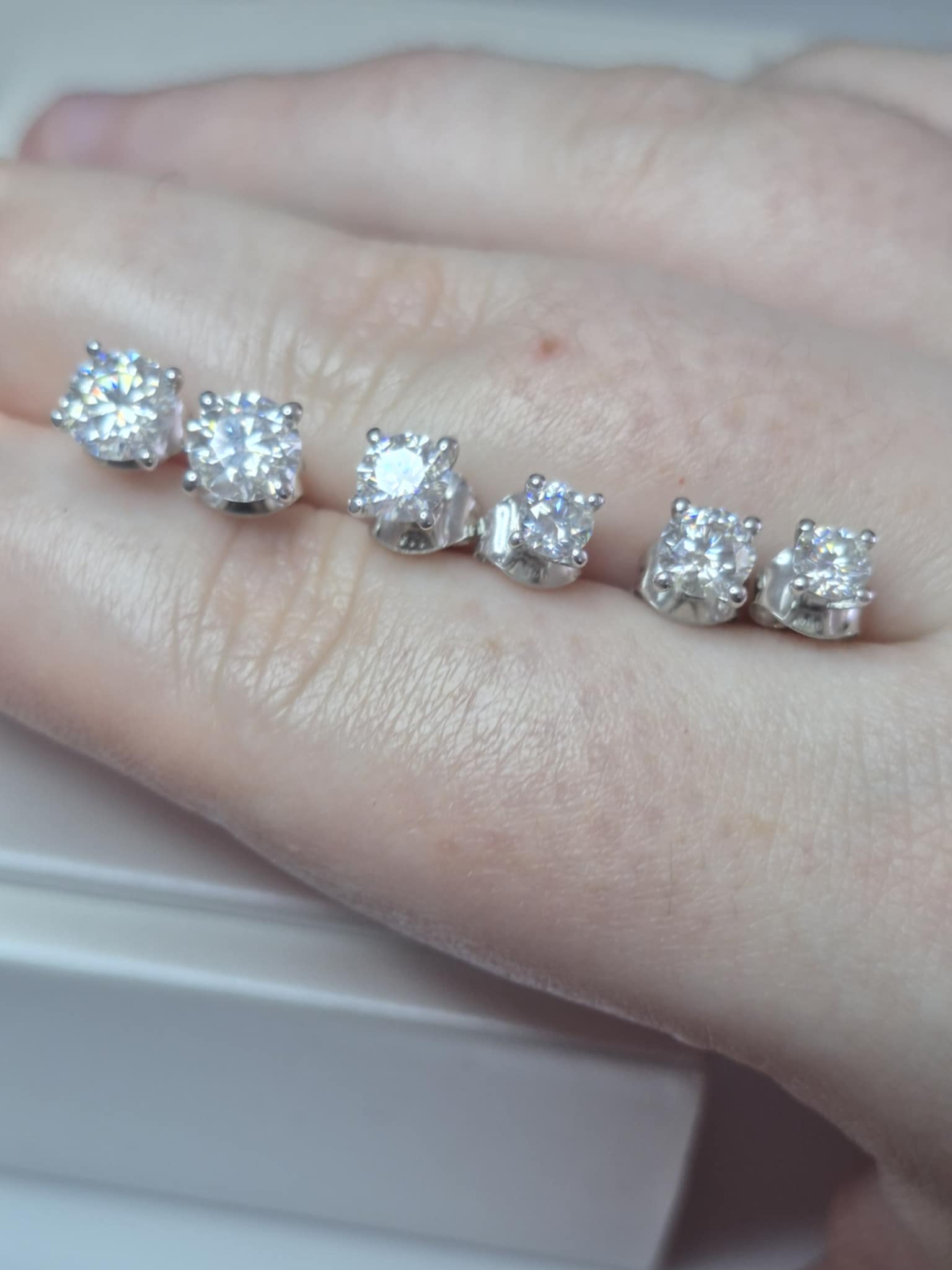 Set of 3 Moissanite Solitaire Stud Earrings 925 Sterling Silver 2.17 Ct.