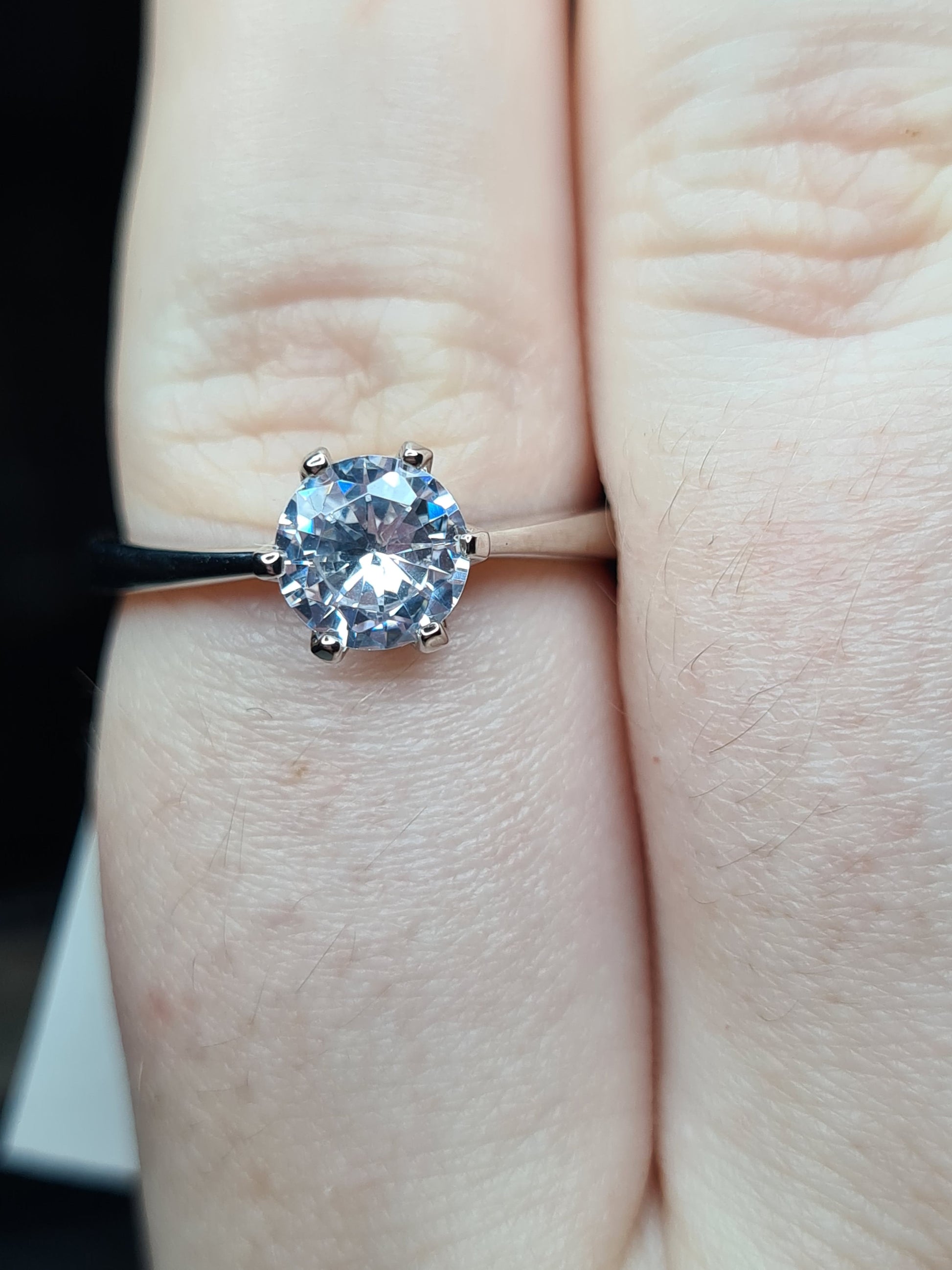 Simulated Solitaire Diamond Ring Sterling Silver SIZES L,P,S