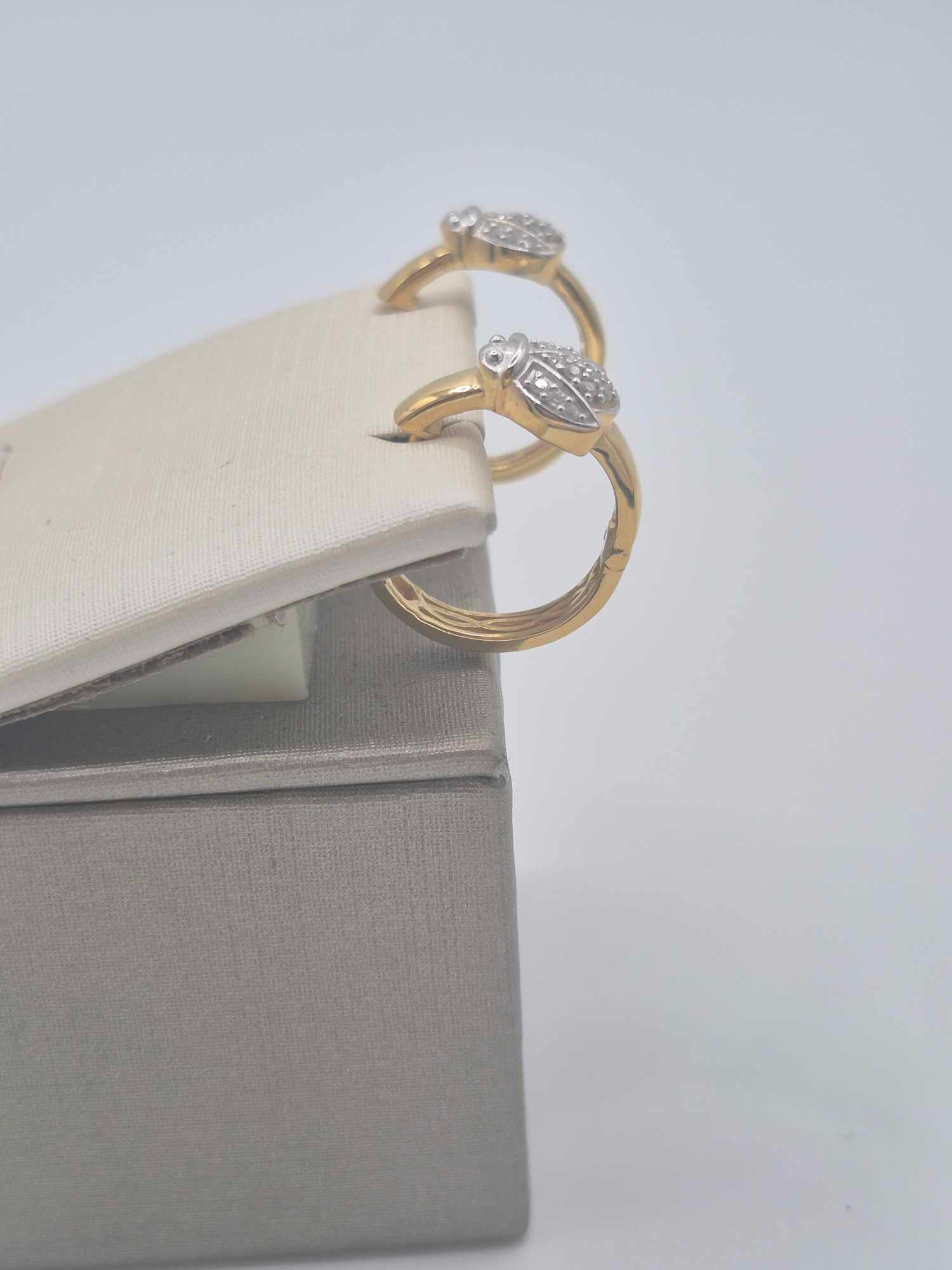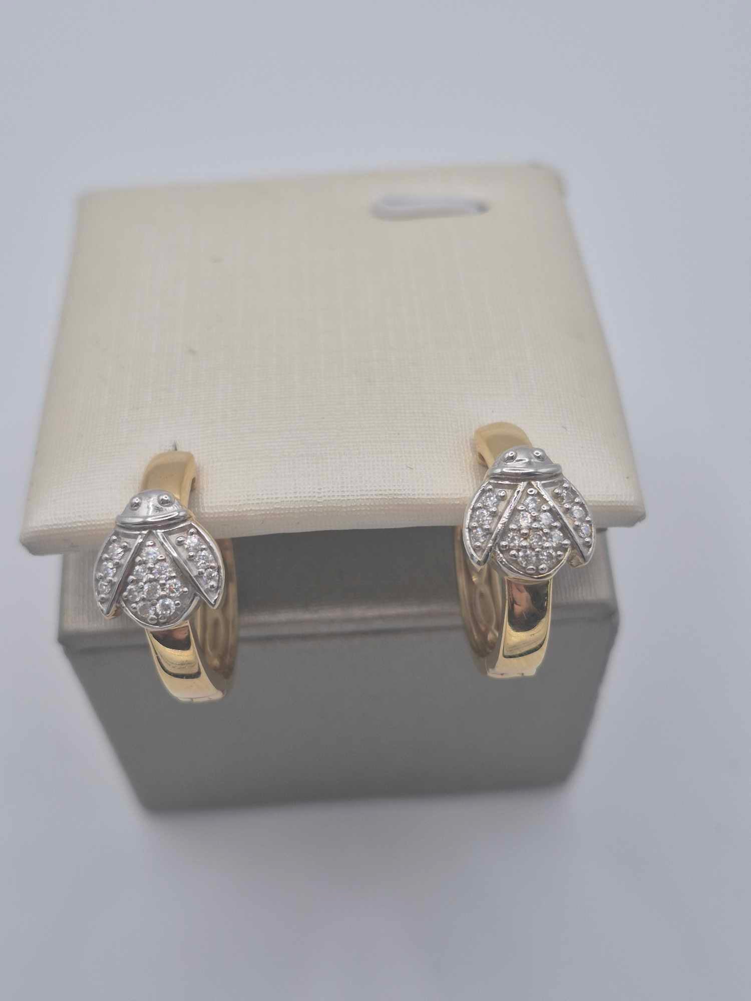 Small Moissanite Lady Bug Hoop Earring in 18K Gold Overlay 925 Sterling Silver