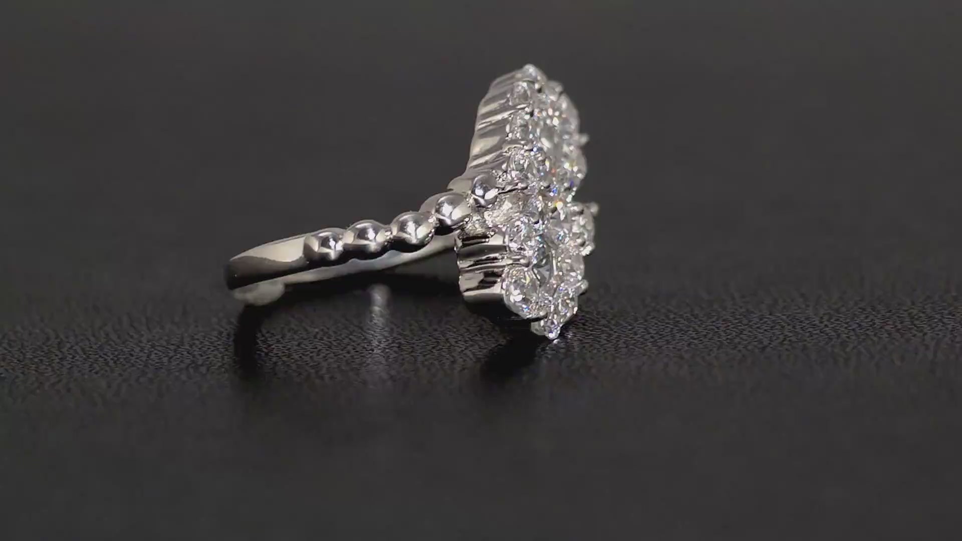 Swarovski Zirconia 2 Floral Cluster Bypass Ring Design SIZE N