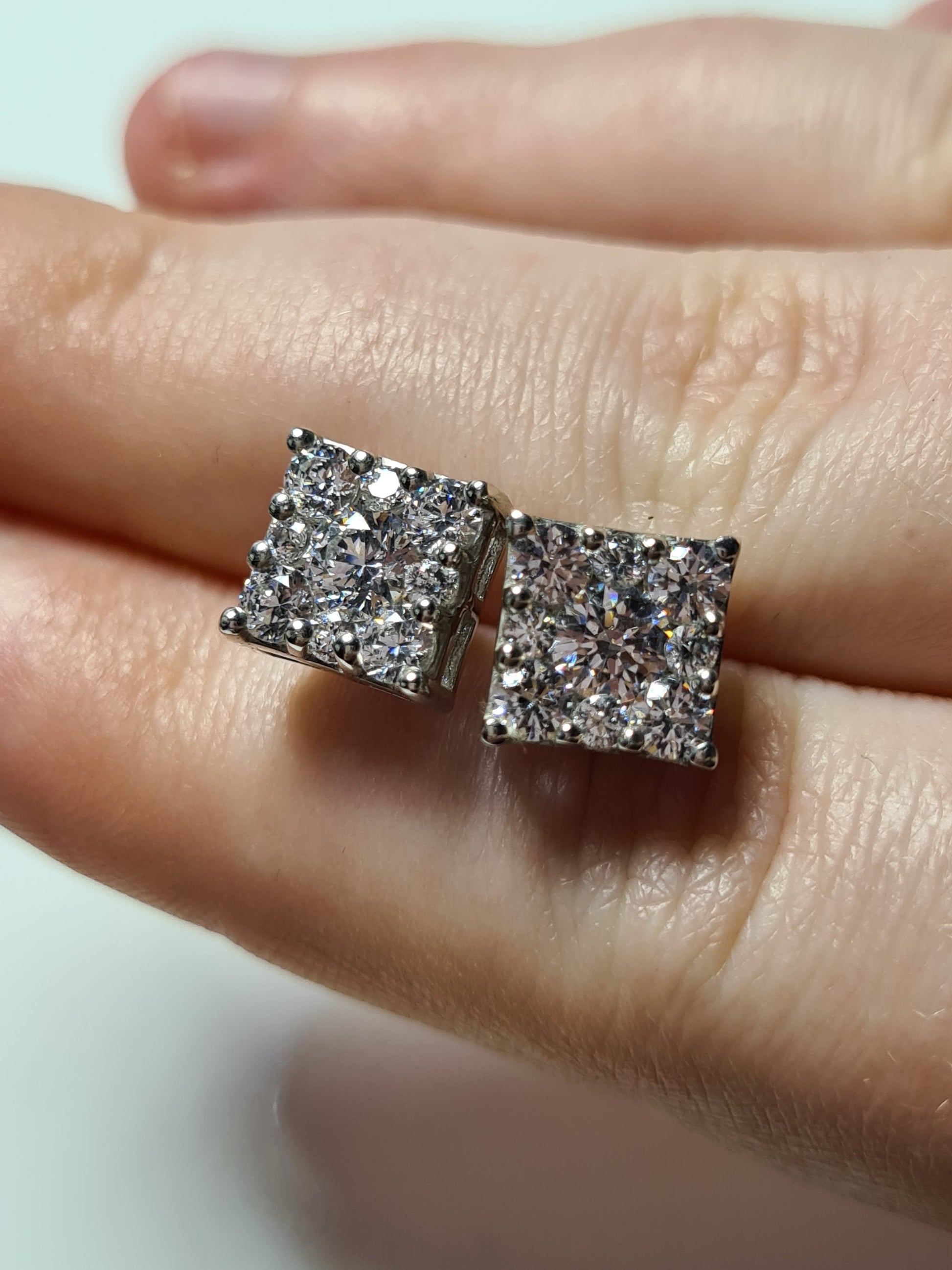 Introducing our SWAROVSKI ZIRCONIA 3.35ct Earrings, a glitzy and stunning pair meticulously set in 925 sterling silver with push backs. These earrings are crafted to catch the light beautifully and emulate the look of the highest-graded diamonds. The square shape in a cluster design adds a touch of sophistication to your style.