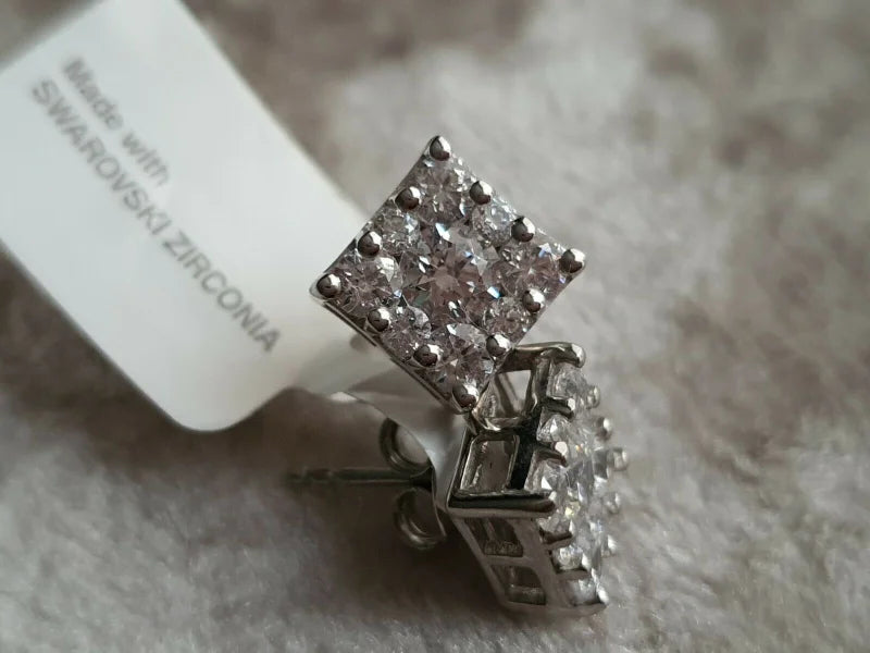 Our SWAROVSKI ZIRCONIA Earrings are a testament to exquisite craftsmanship. Each crystal is meticulously set to enhance its brilliance, allowing these earrings to catch and reflect light with unparalleled sparkle. The square cluster design adds a modern touch to the classic elegance of Swarovski Zirconia.