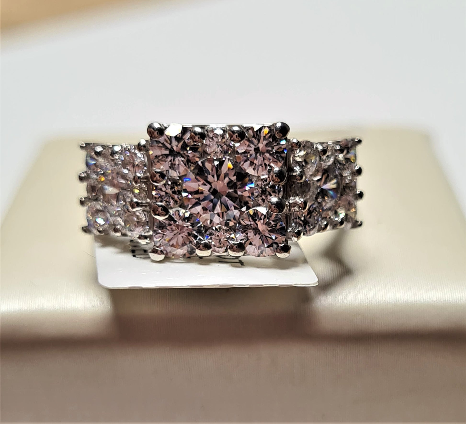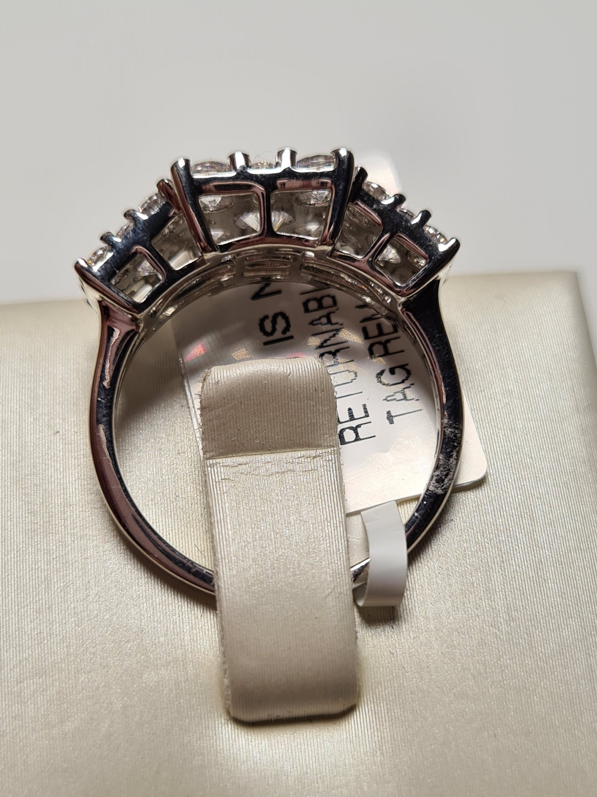 Cluster Brilliance: Experience the irresistible allure of our cluster ring. Boasting a total of 4.250ct of Swarovski Zirconia, the triple square-shaped clusters create a delightful pattern. The larger middle square, flanked by smaller squares, adds a touch of sophistication.