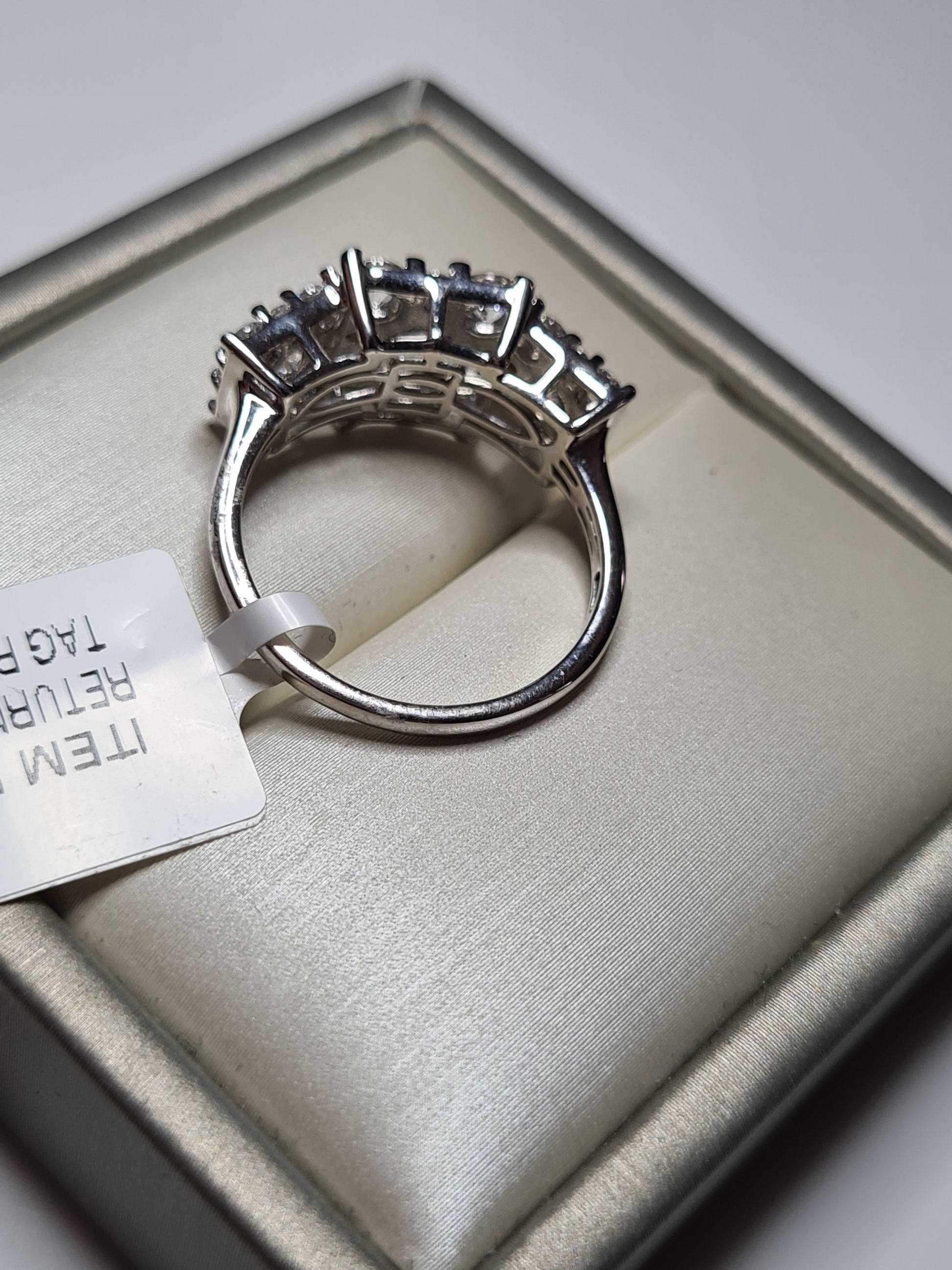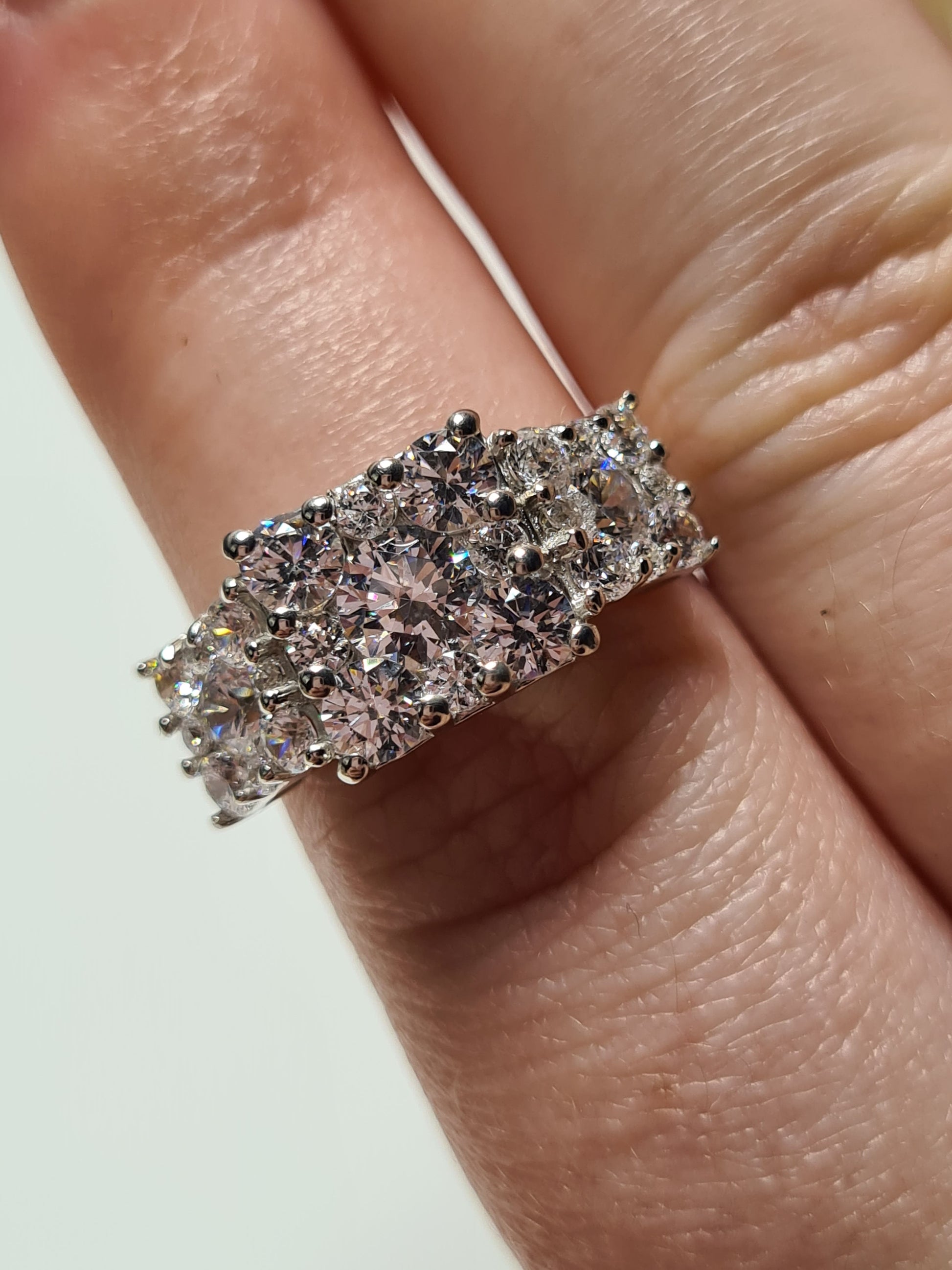 Swarovski Zirconia 3 Row Cluster Ring Sterling Silver SIZE O